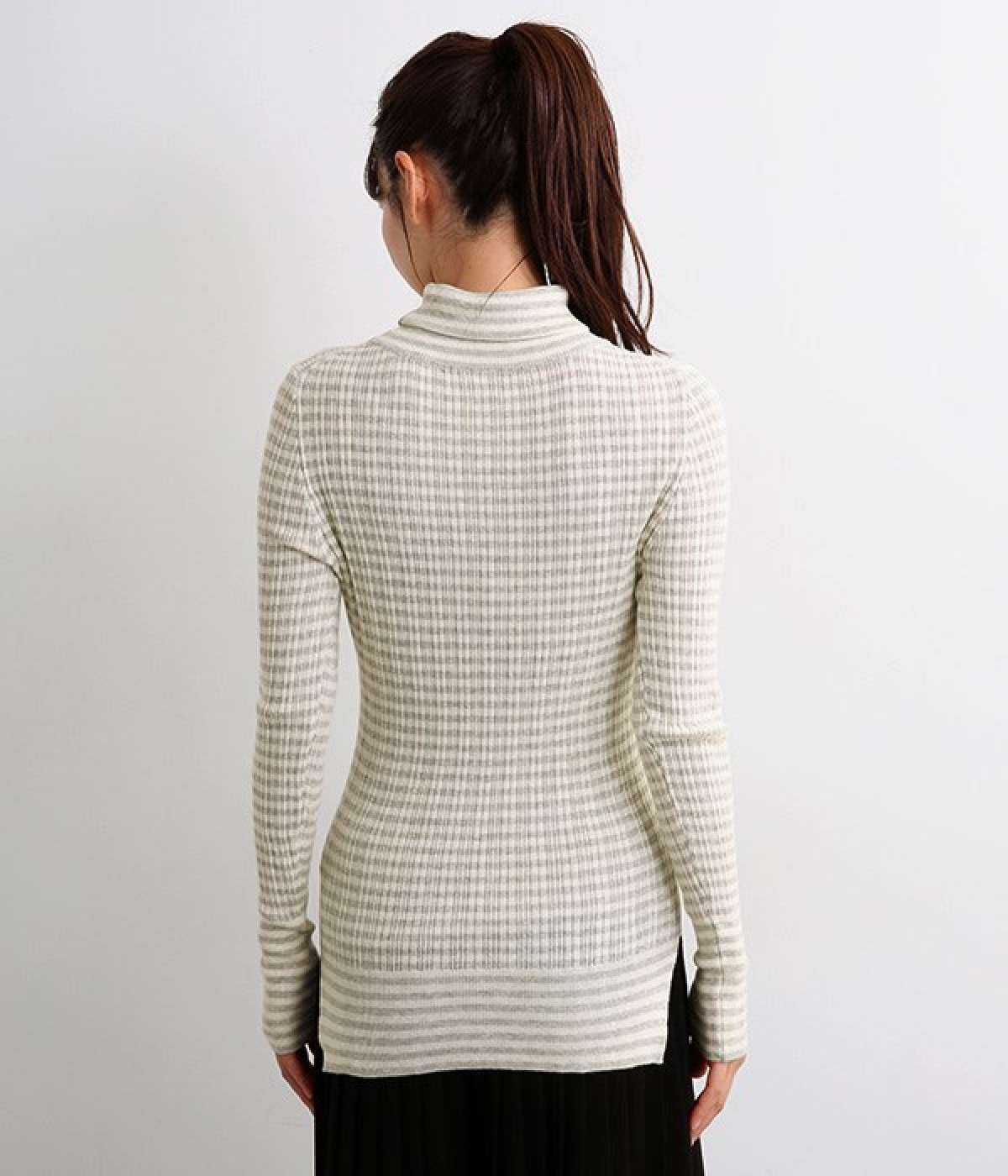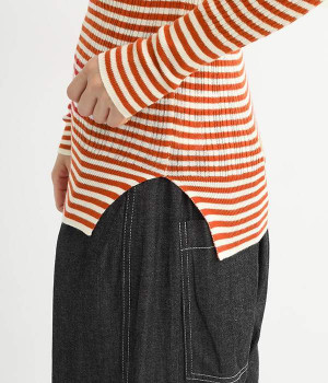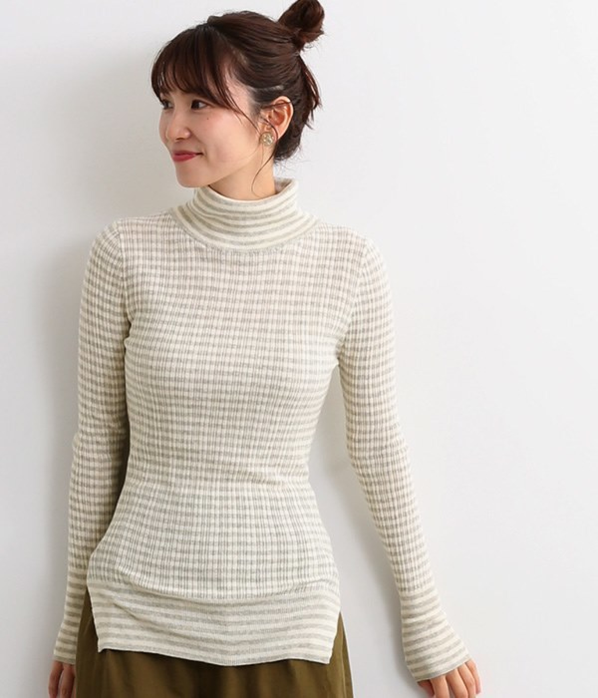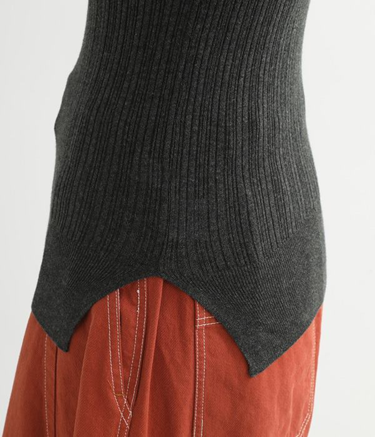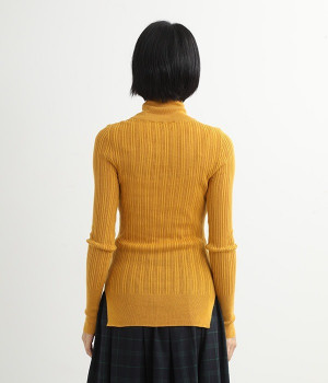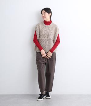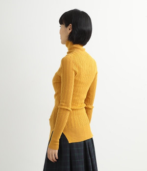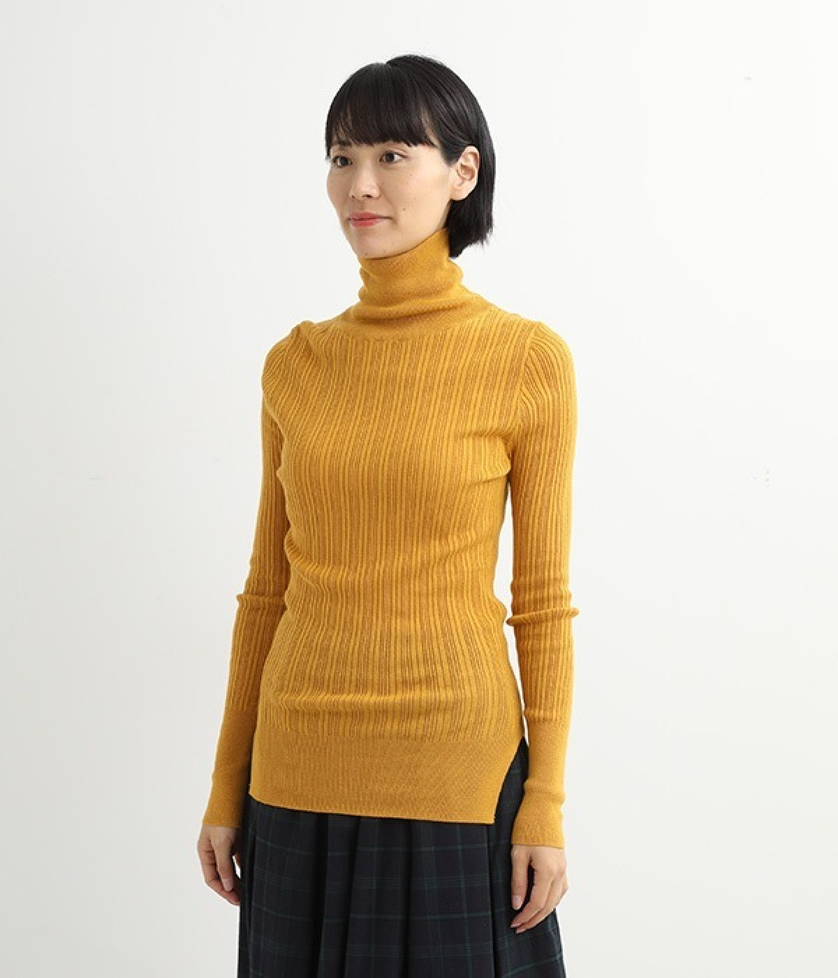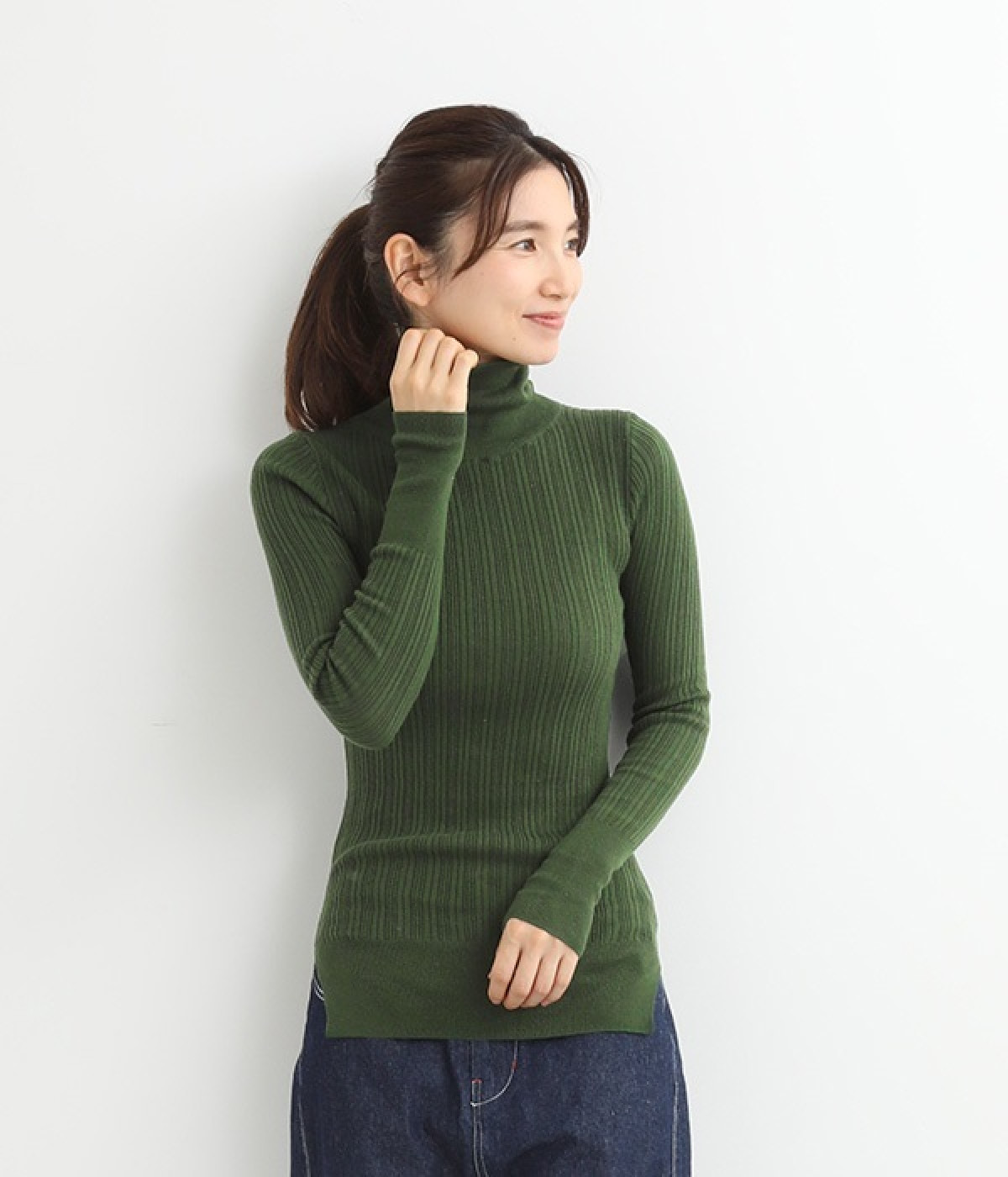 長めの袖と丈感で、一枚で着るのはもちろん、重ね着のインナーにも重宝します。首元や袖から差し色としてのぞかせるのにぴったりです。裾のスリットが動きやすさを出してくれ、心地よく着られます。