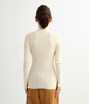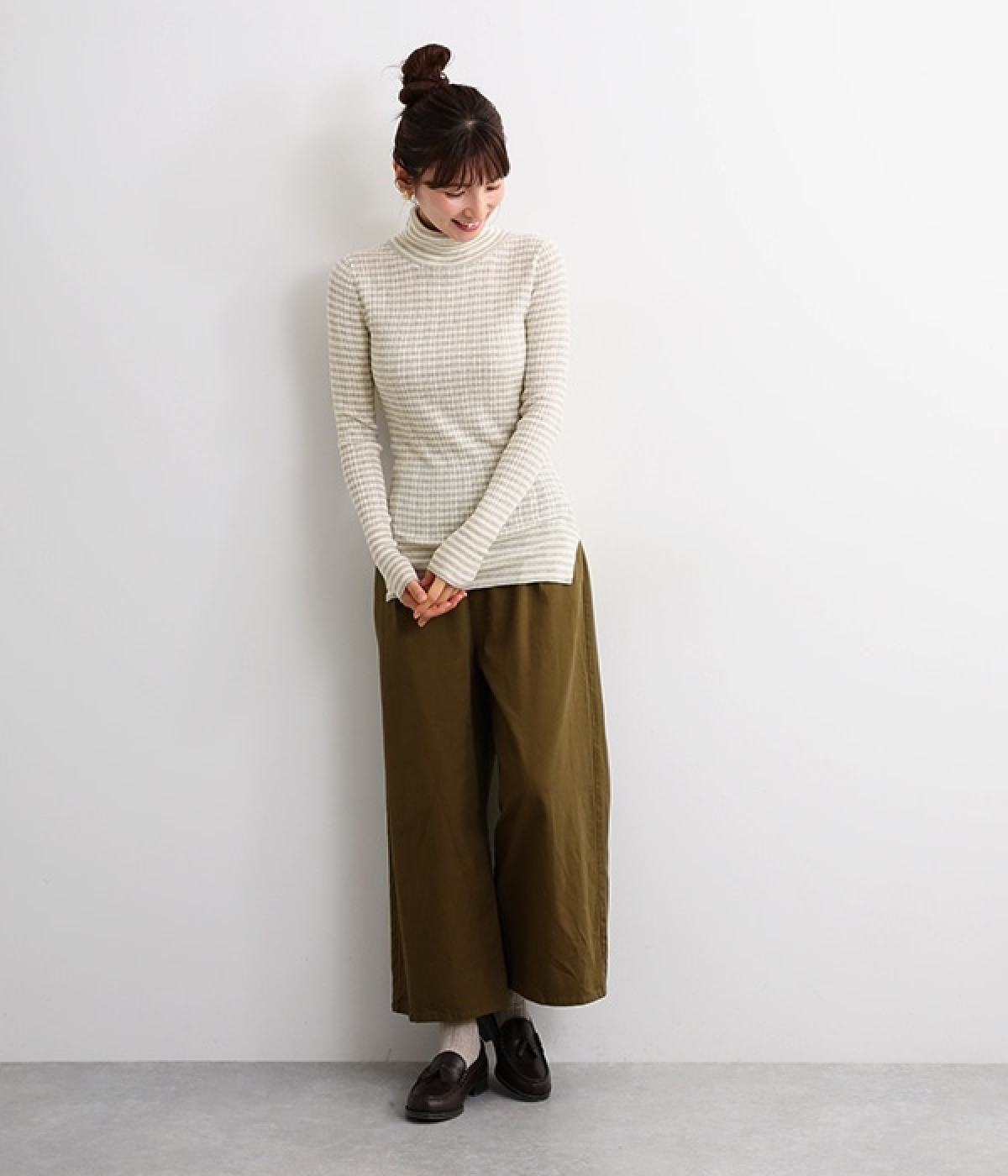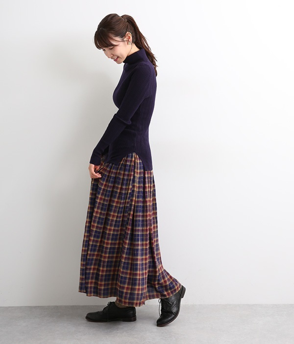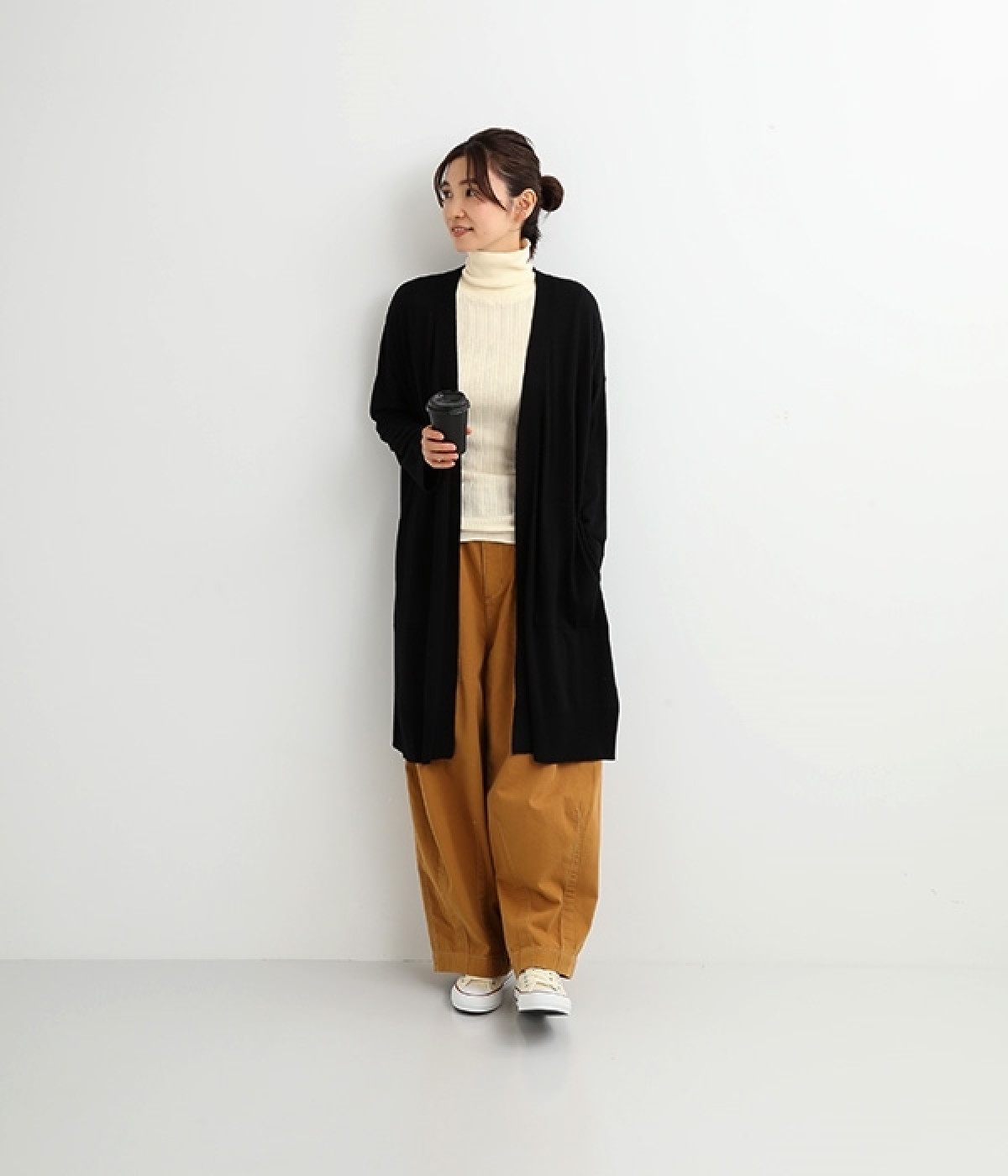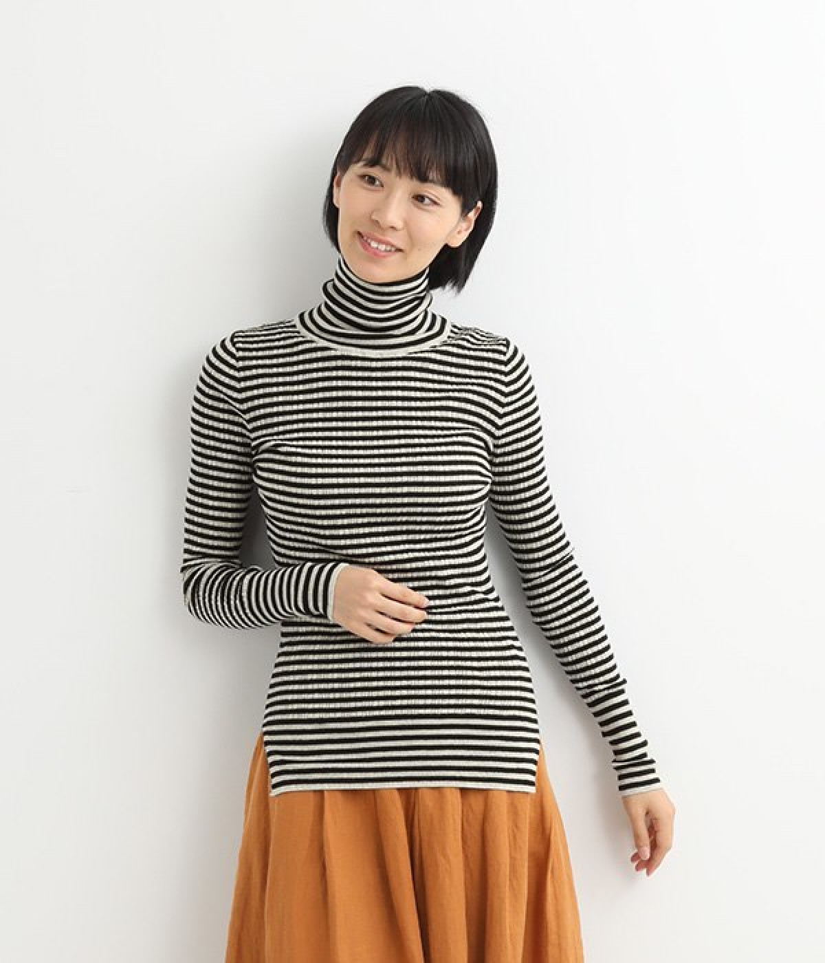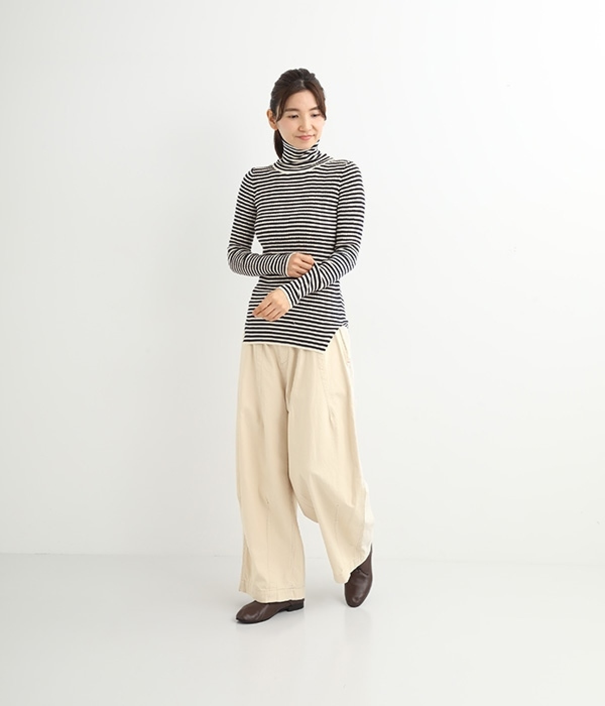 長めの袖と丈感で、一枚で着るのはもちろん、重ね着のインナーにも重宝します。首元や袖から差し色としてのぞかせるのにぴったりです。裾のスリットが動きやすさを出してくれ、心地よく着られます。