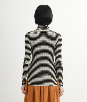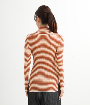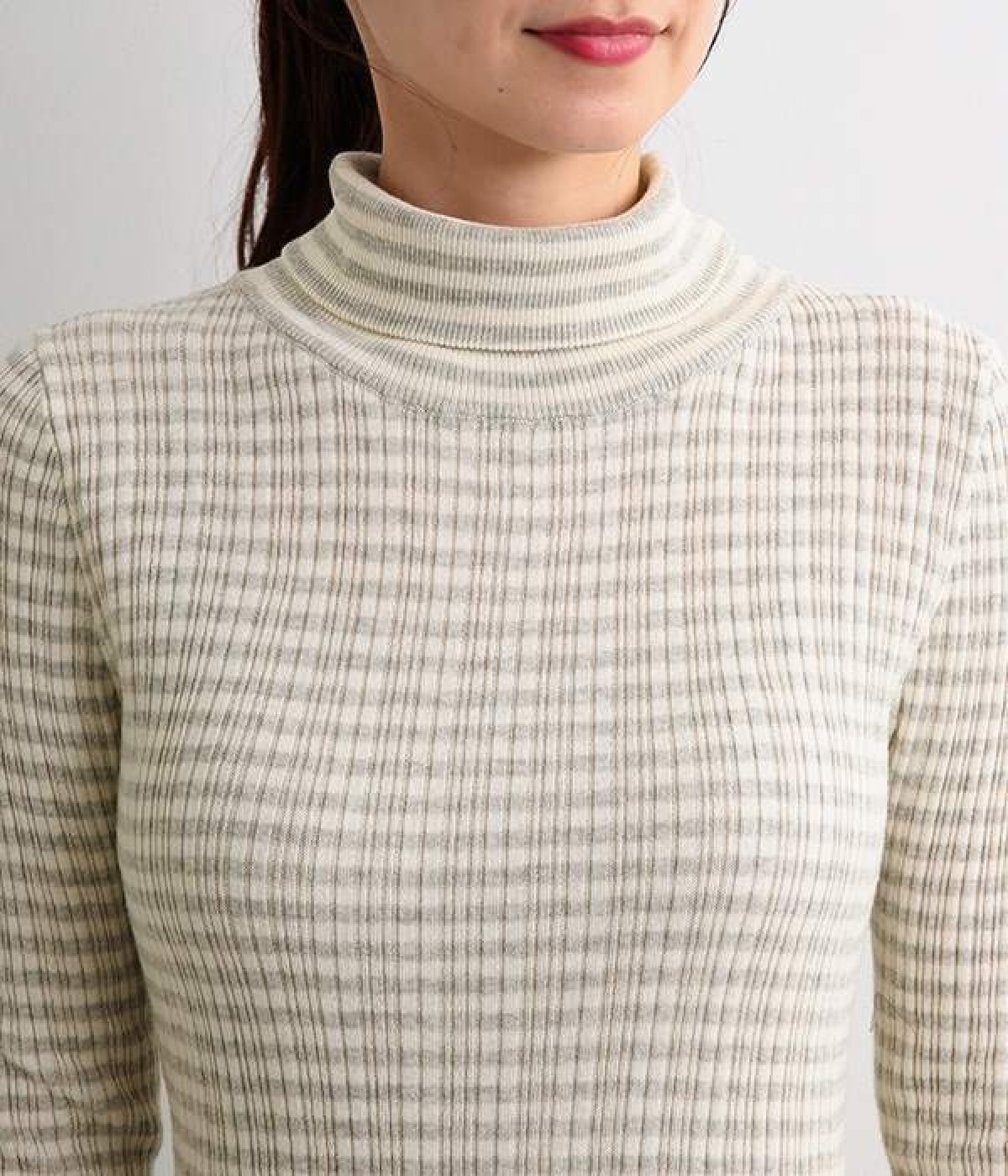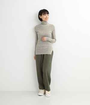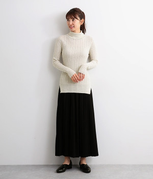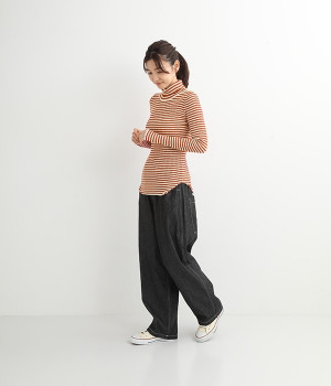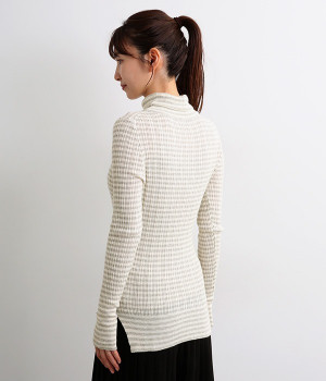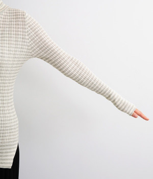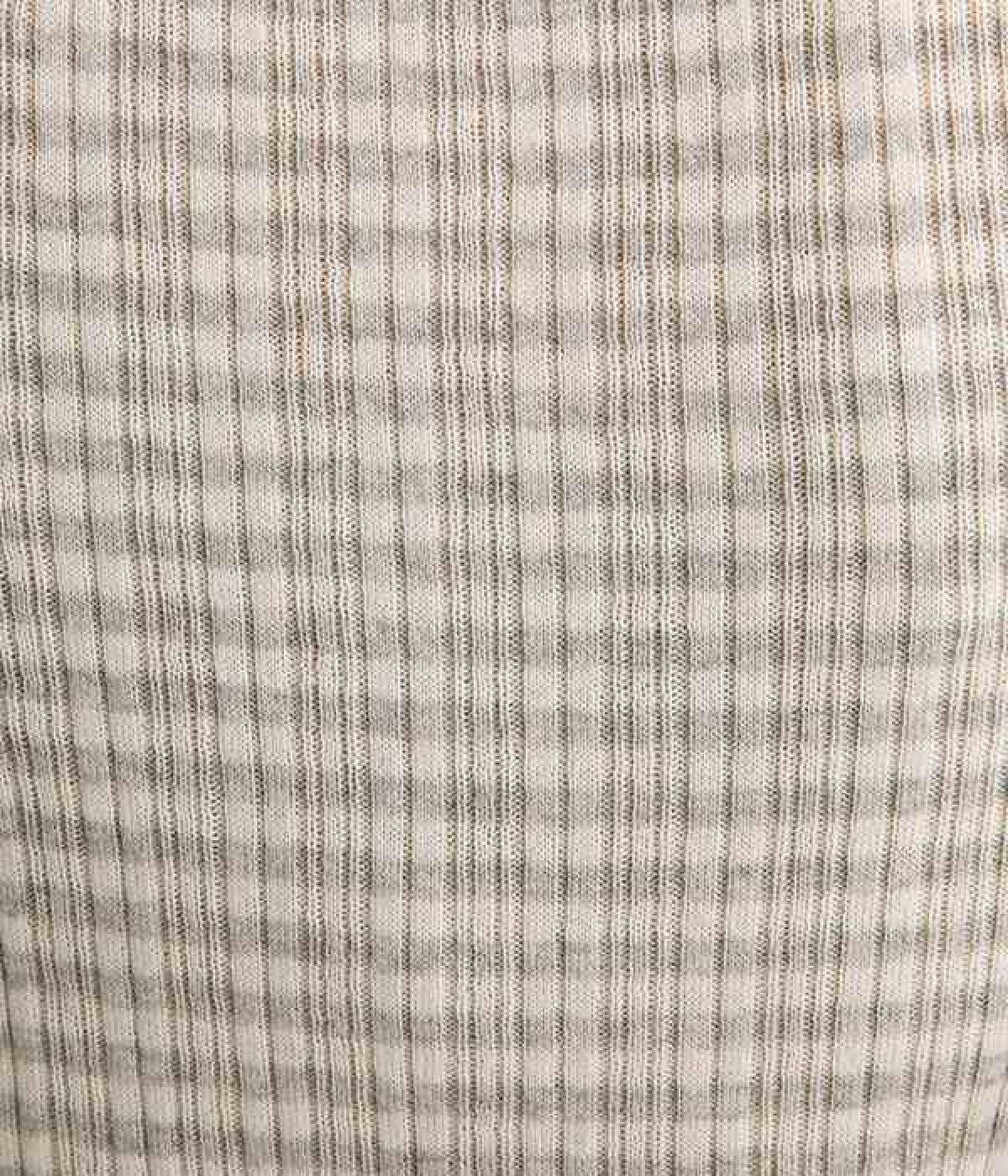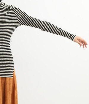 幅の異なるうねがランダムに並んだランダムテレコ素材。伸縮性に優れ、体に優しいフィット感が特徴です。凸凹がストライプのようで表情豊かなのもポイントです。