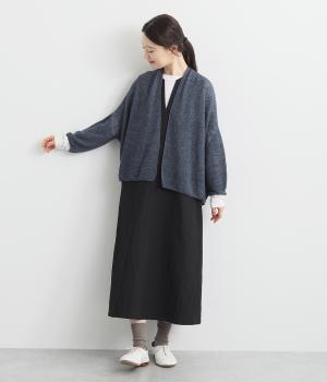 身幅をたっぷりととり、ゆとりのあるシルエットに仕上げた変形カーディガン。肩ラインを滑らかに見せる立体的な編み立てがポイントです。すっきり見えを叶える、腰にかかる程度の長すぎない着丈も◎。前はボタンレスで、さまざまな装いにさっと羽織れます。