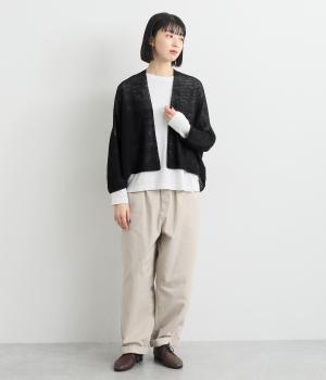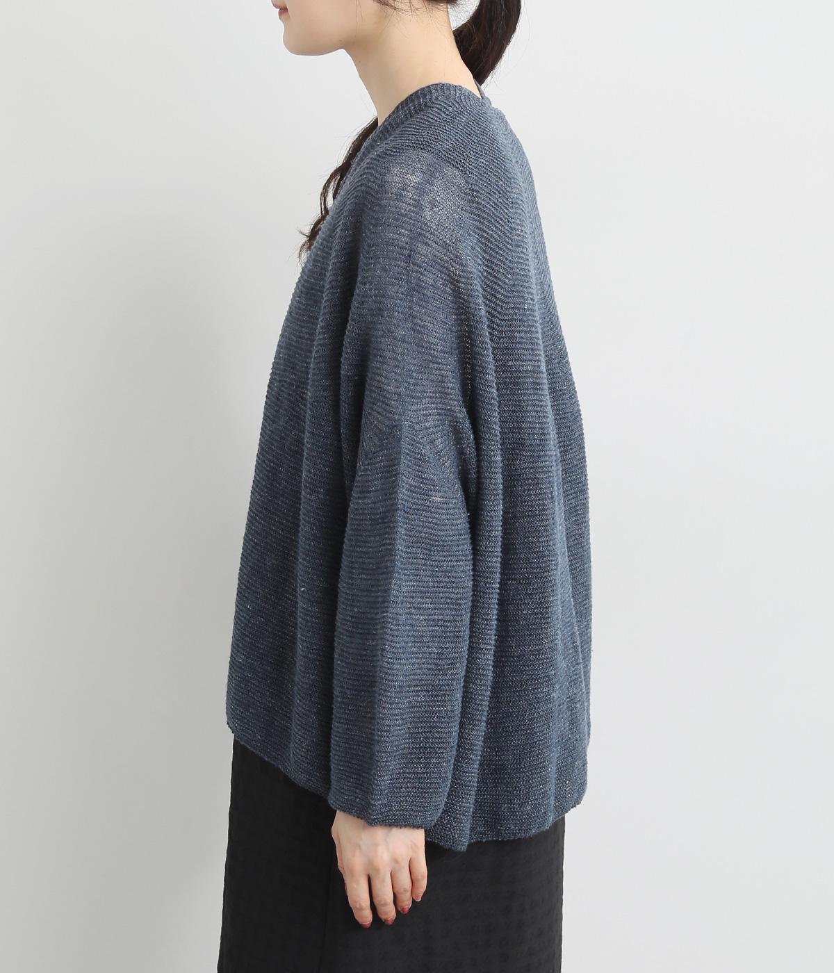 硬さやごわつきをおさえた、やわらかな風合いが魅力のノルマンディーリネンを使用。甘く編みたてたニット生地がほんのりとした女性らしいシアー感をうみます。
