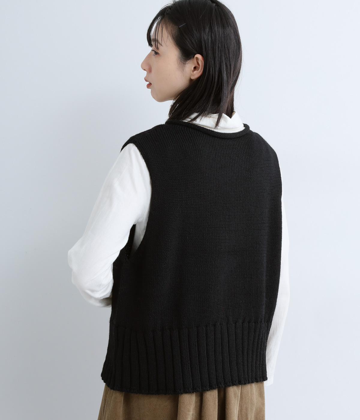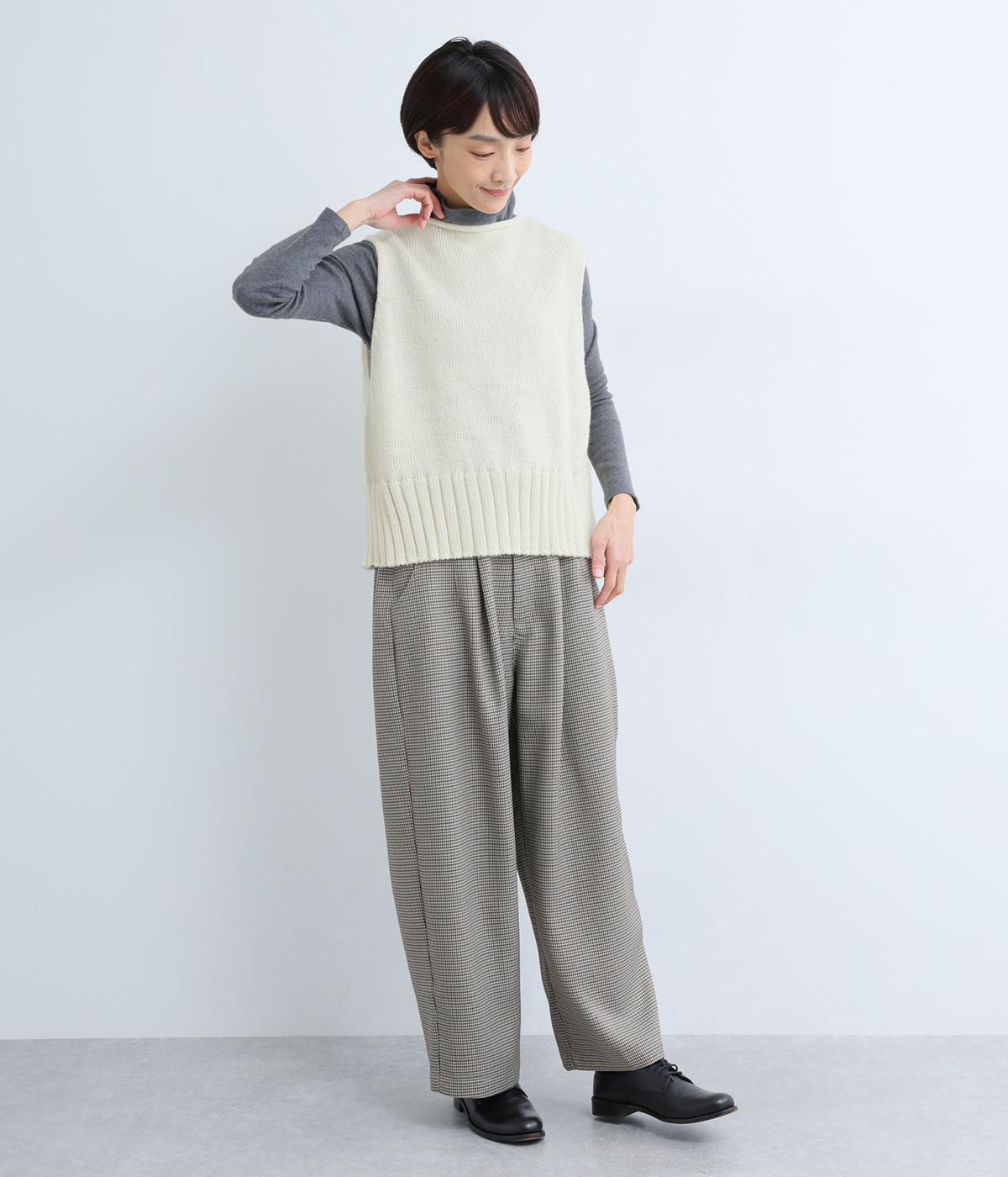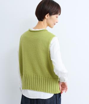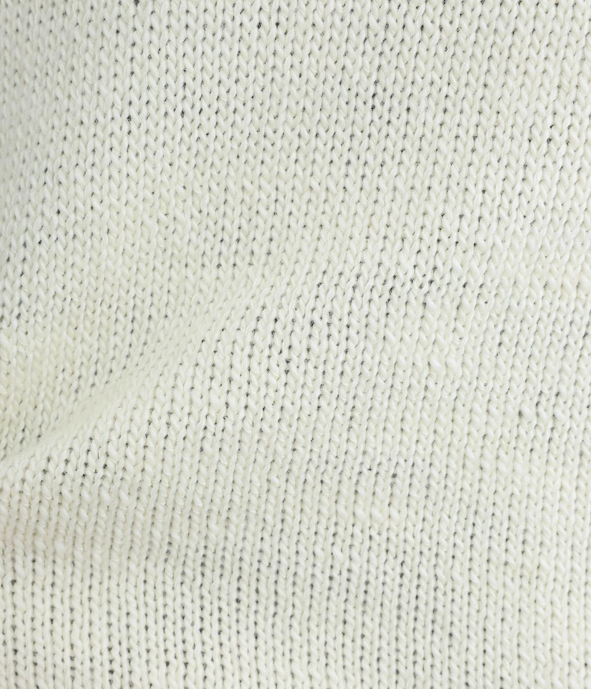 甘く撚ったロービングウールをざっくり編み上げ、ふわりと空気をふくんだような軽やかな生地に仕上げました。やわらかな風合いで、肌に触れたときの心地よさも魅力。伸縮性があり、フィット感もばつぐんです。