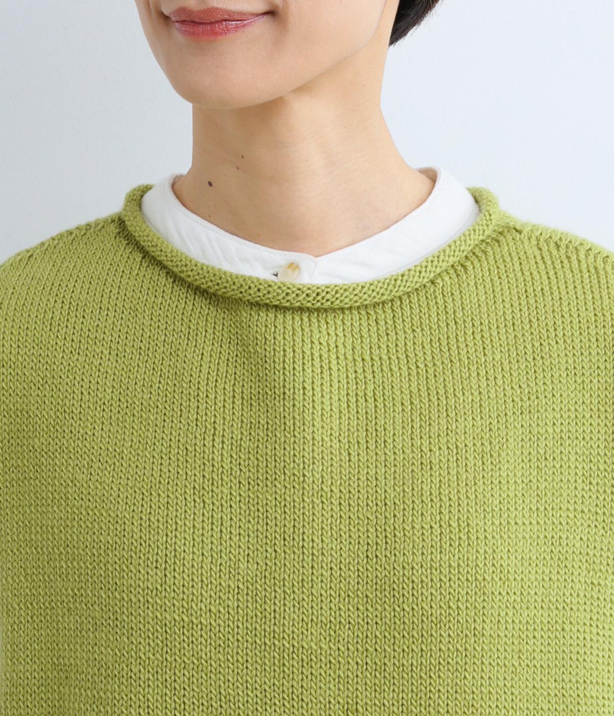 無駄のないすっきりとしたシルエットのなかに、太めの裾リブがさりげないアクセントを添えます。首元はほどよく詰まったクルーネックで仕立て、くるんと丸まった生地が、ナチュラルさと上品さをプラスします。広めのアームホールで重ね着もしやすく、使い勝手のよい一枚です。
