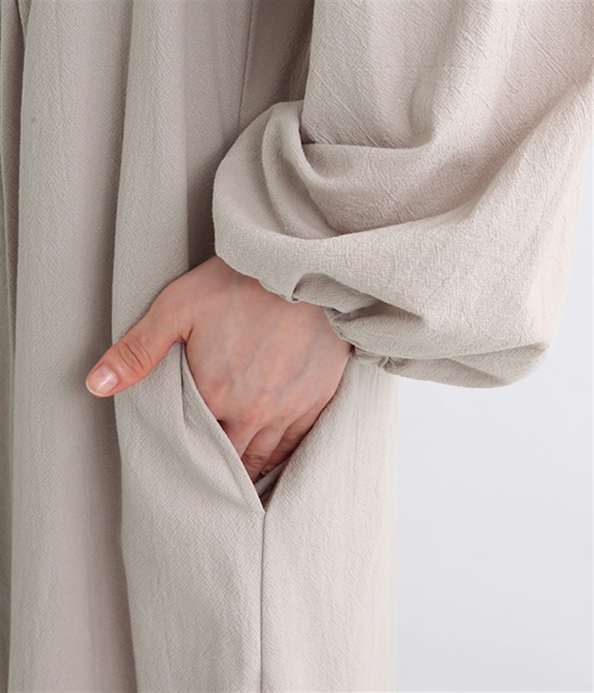 スタンドカラーにゆとりを持たせてさりげない抜け感も