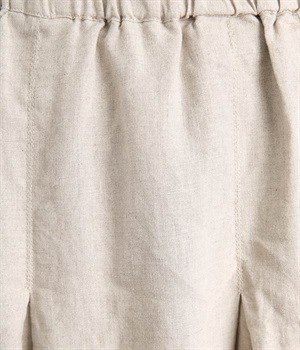 上品な光沢と、目の詰まったハリ感のあるリネンオックス生地で仕立てたミモレ丈スカートです。ウエスト下にタックを施したボリュームシルエットが魅力的。シンプルなのでトップスやシューズによって、カジュアルにもキレイめにも合わせられるシーズンレスな1枚です。ウエストは総ゴムで内側の紐によって調節も可能です。同素材のジャケットと合わせてセットアップで着用するのもおすすめです。両サイドにはポケット付きです。