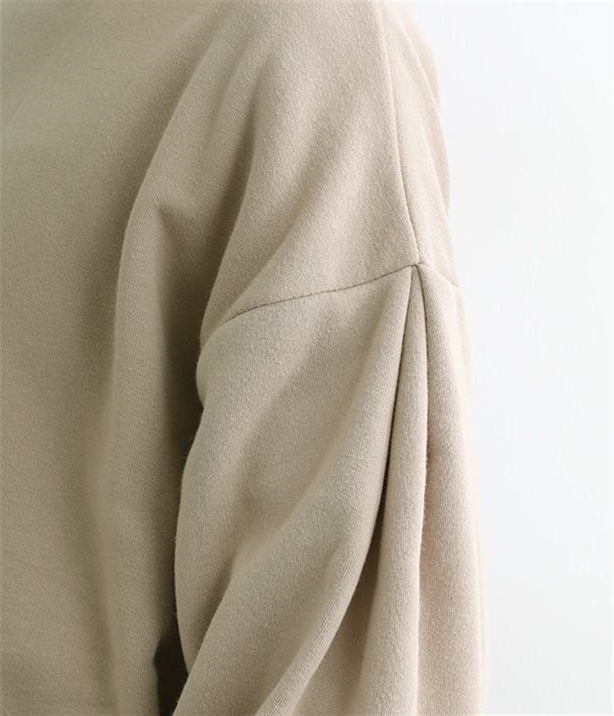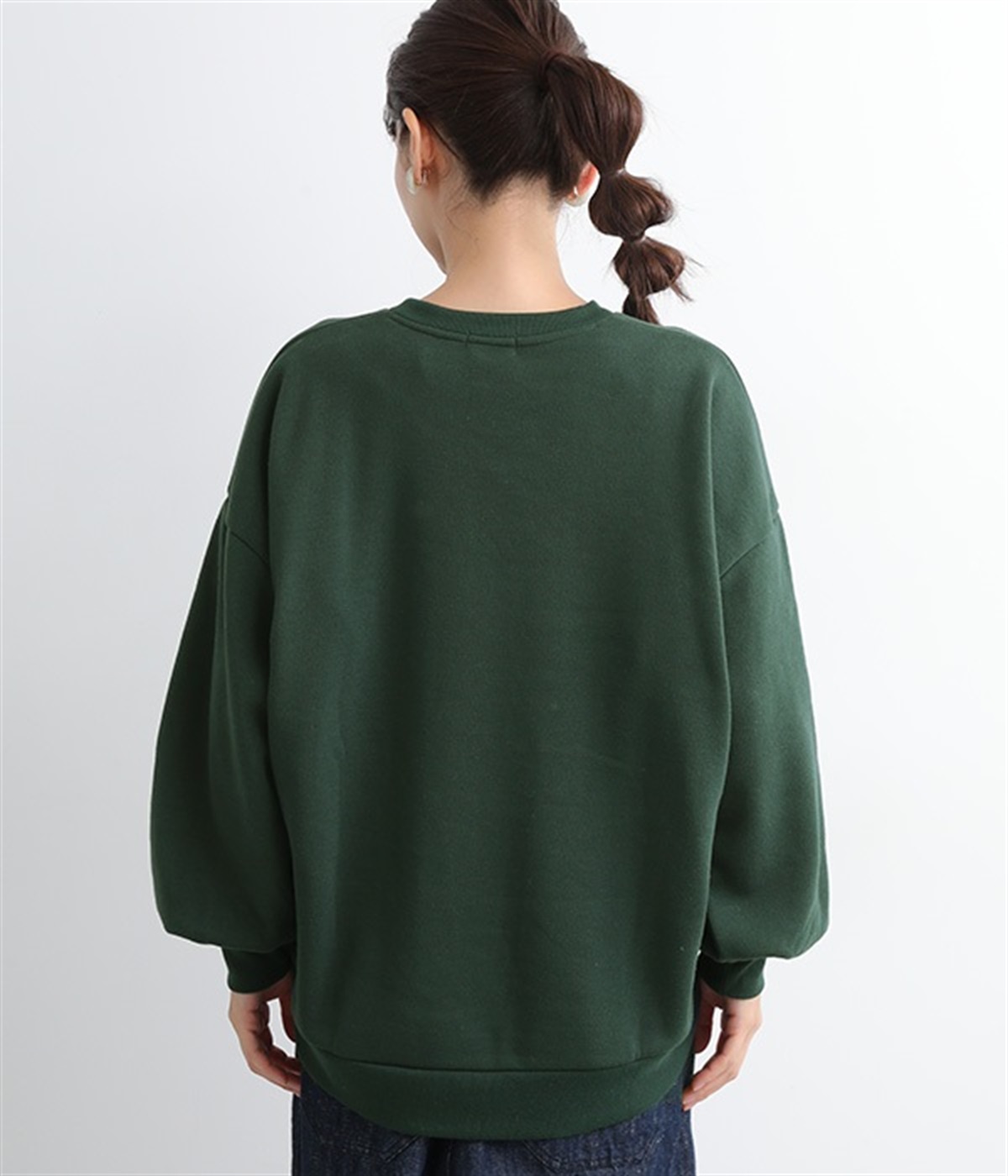 裏起毛加工を施した、あたたかくやさしい肌触りのプルオーバーです。バルーンスリーブがポイントで、カジュアルなスウェット生地にかわいらしさを添えています。ほどよい厚みとハリがあり、シルエットがすっきりと出るのもうれしいポイント。合わせるボトムを選ばない形でさまざまなコーディネートに活躍してくれます。