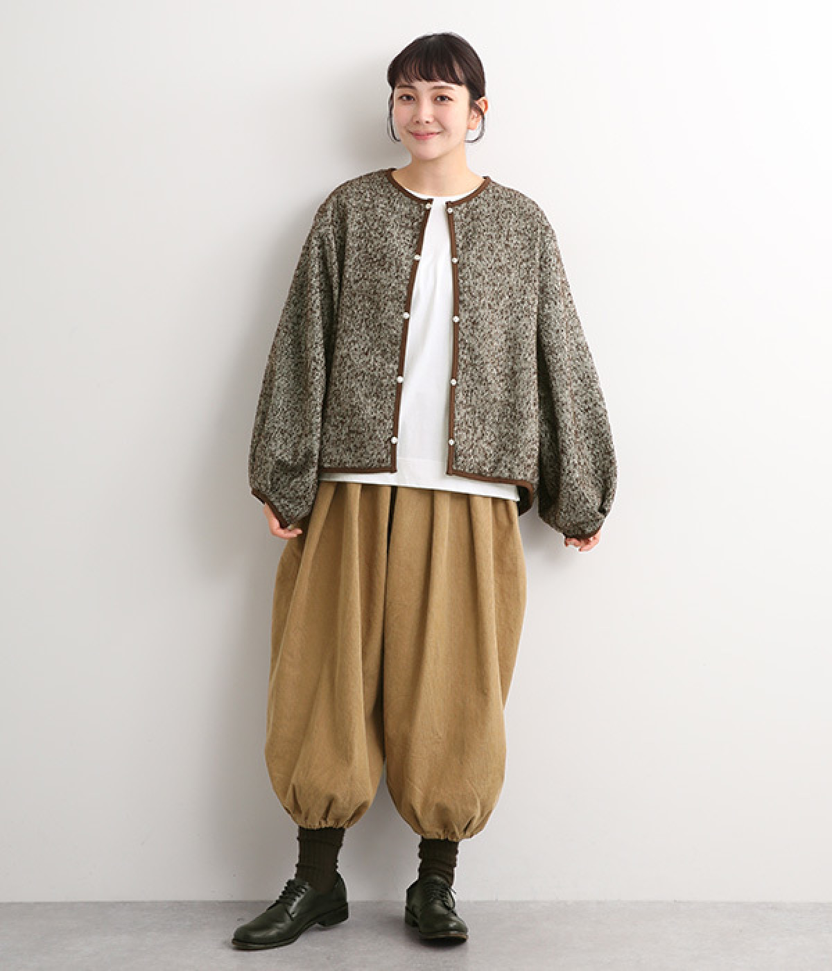 かわいらしさを印象づける、丸みをもたせたコクーンシルエット