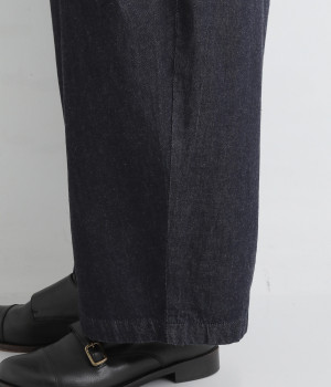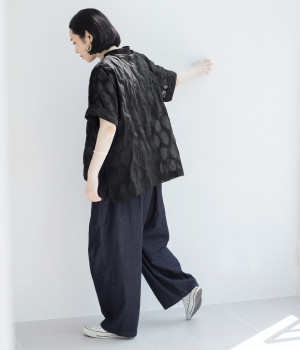 デニムらしさは残しつつも、カジュアルな雰囲気をやや払拭して品のよさを感じさせる風合い。スタイリングを重たく見せにくい軽さがあるので、ロングシーズン着用できそうです。