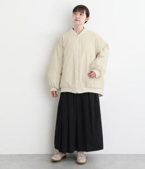 自然なシワ感でさらりとした手ざわりのコットン混生地です。裏地はダイヤ柄のキルティングであたたかな着心地。中綿入りでふんわりとしたボリュームながら750gと軽やかに仕立てました。