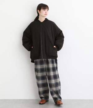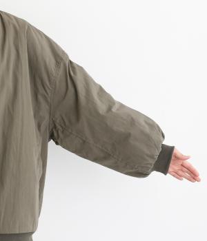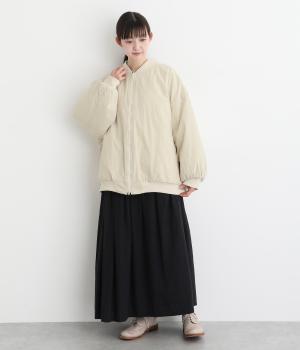 シンプルなブルゾンをふっくらゆったりシルエットで仕立てました。襟・袖口・裾は伸縮性のあるリブを合わせて、着やすさとカジュアル感をプラス。フェミニンなスタイリングにもすっとなじみ、幅広い着こなしが楽しめます。
