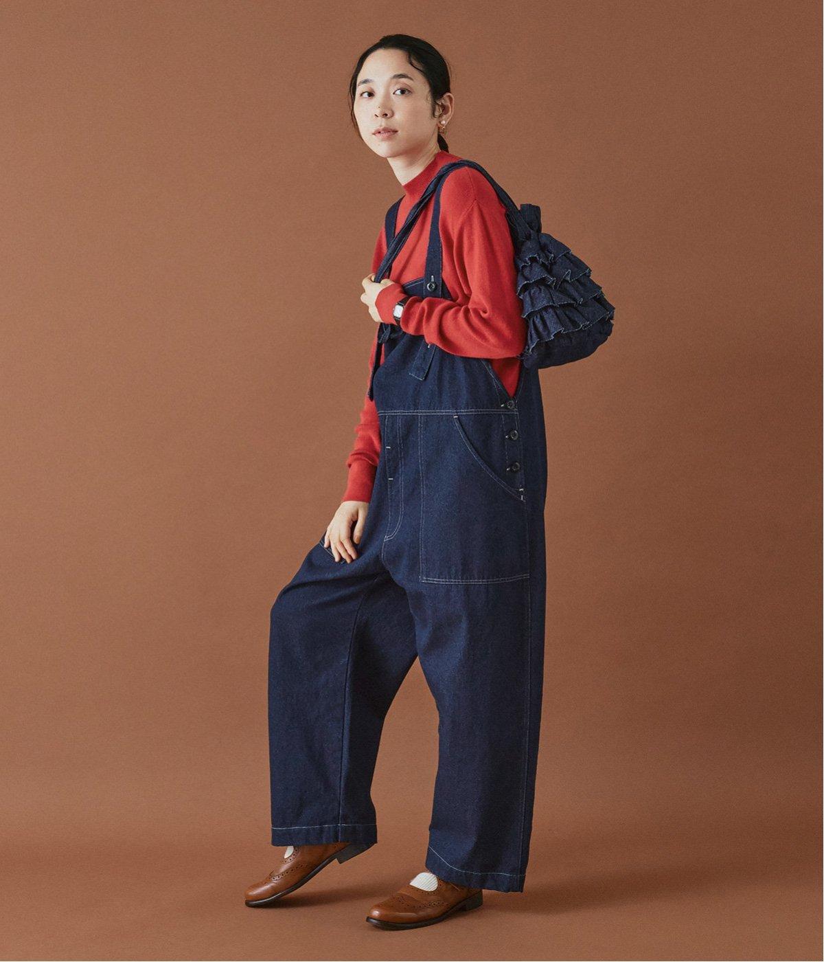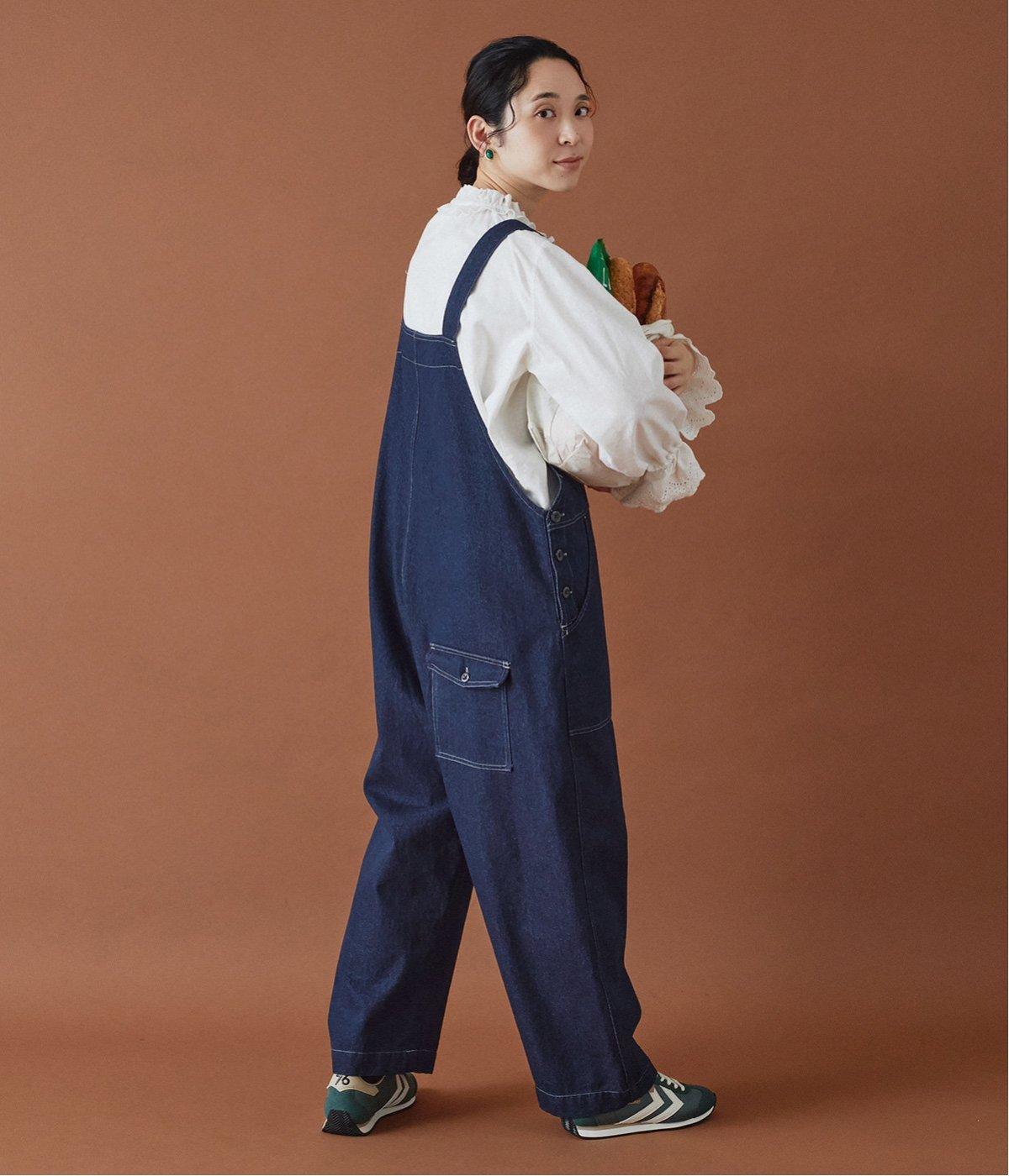サロペットのワークテイストに、フリルブラウスの可愛げをひとさじ。ナチュラルな雰囲気とほどよい甘さのバランスが目を引く、洗練された着こなしです。