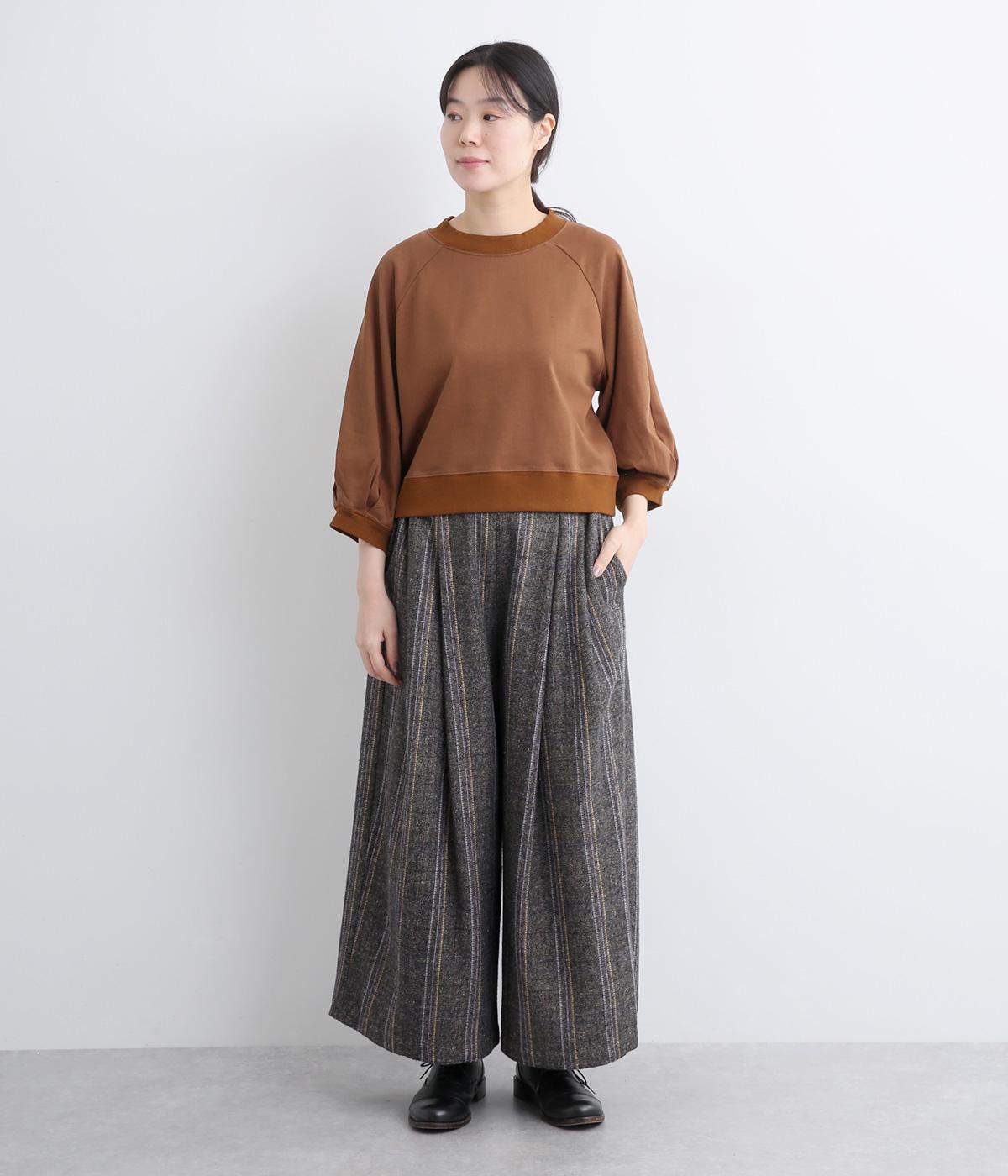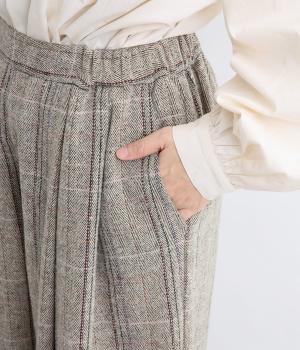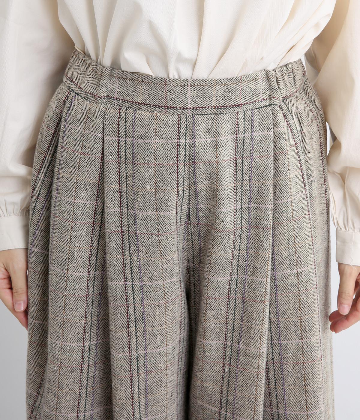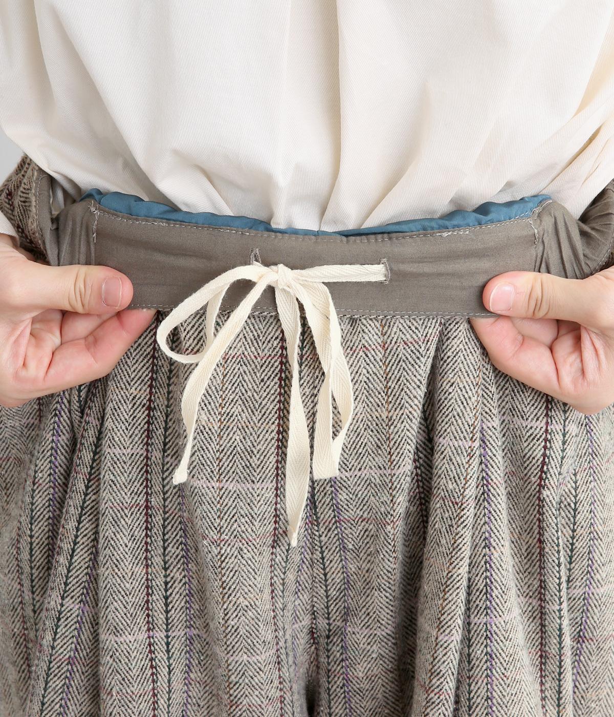 ワイドシルエットにたっぷり施されたギャザーが落ち感を出し、動くたびに自然な揺れが生まれます。すっきりしたトップスにもゆったりしたトップスにも好相性。ウエストはうしろゴム仕様で紐で調節可能です。