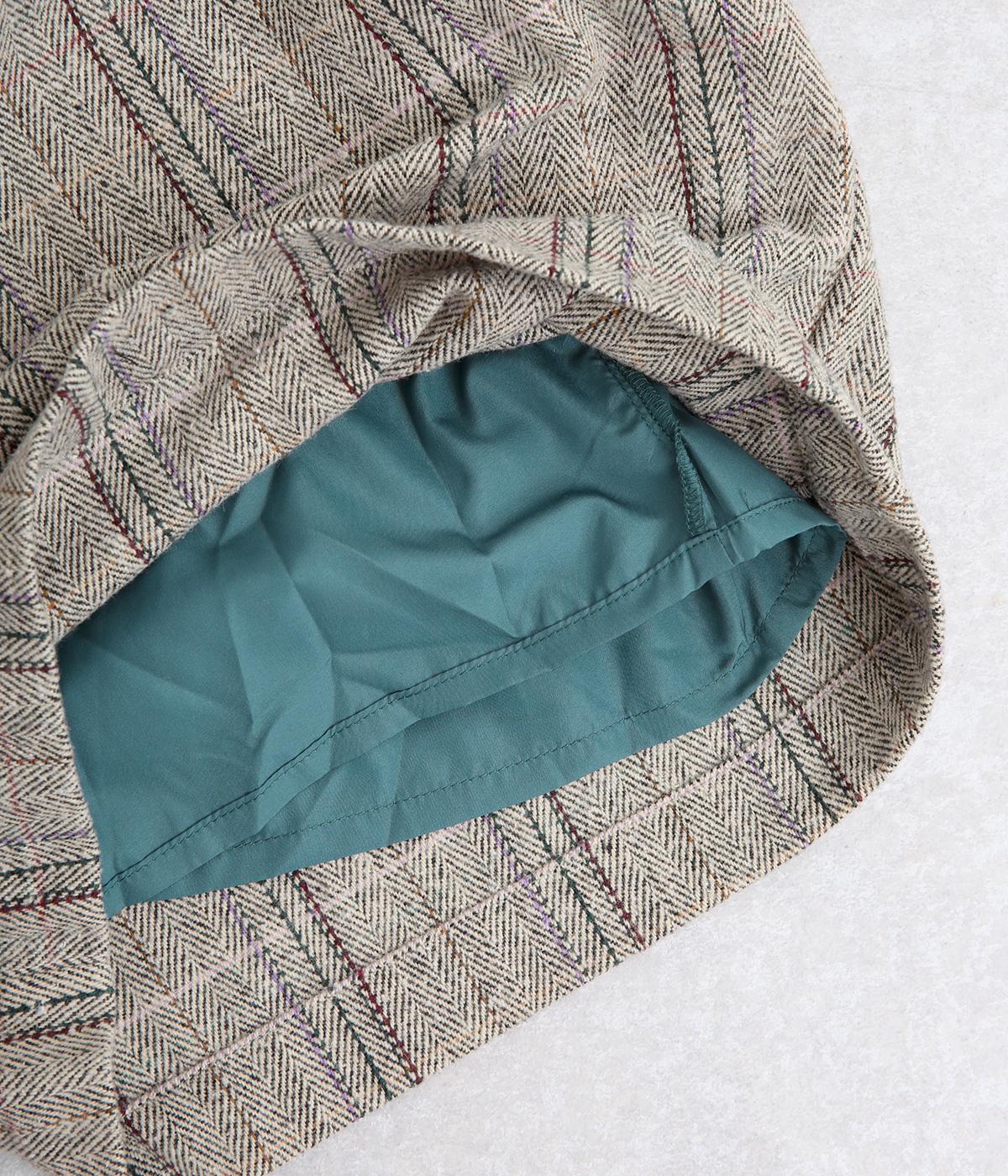 ほどよい厚みとあたたかみのあるウール混生地を使用。やわらかさの中にもハリがあり、クラシカルで上品な雰囲気をまとうことができます。着用時には自然な落ち感が生まれ、動きに表情を添えます。