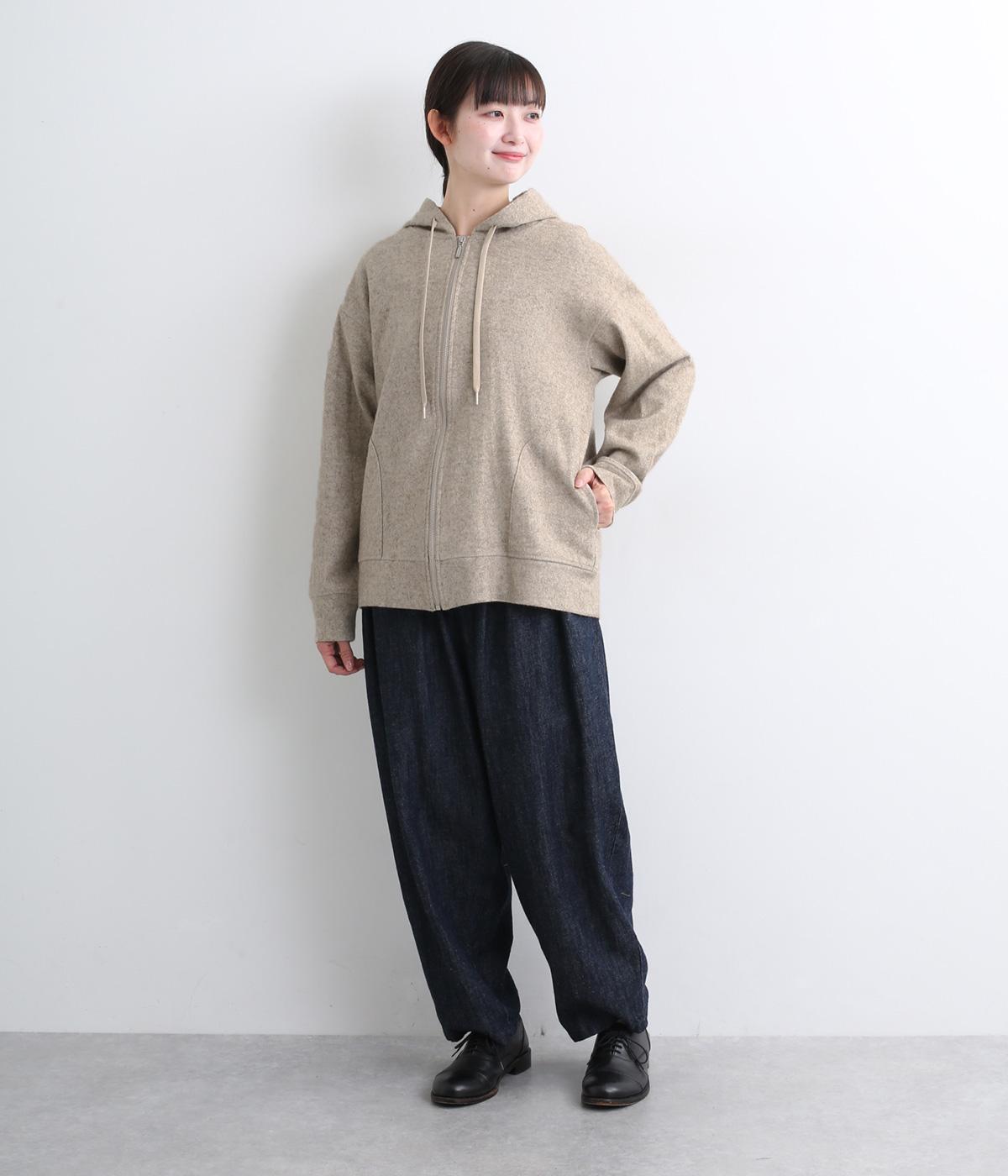 ベーシックなフルジップパーカーを上品な生地で仕立てました。カジュアルにもきれいめにも着まわせる一枚です。シンプルな装いにほんのり品をプラスします。コートのインナーにしても抜け感が出ておすすめです。