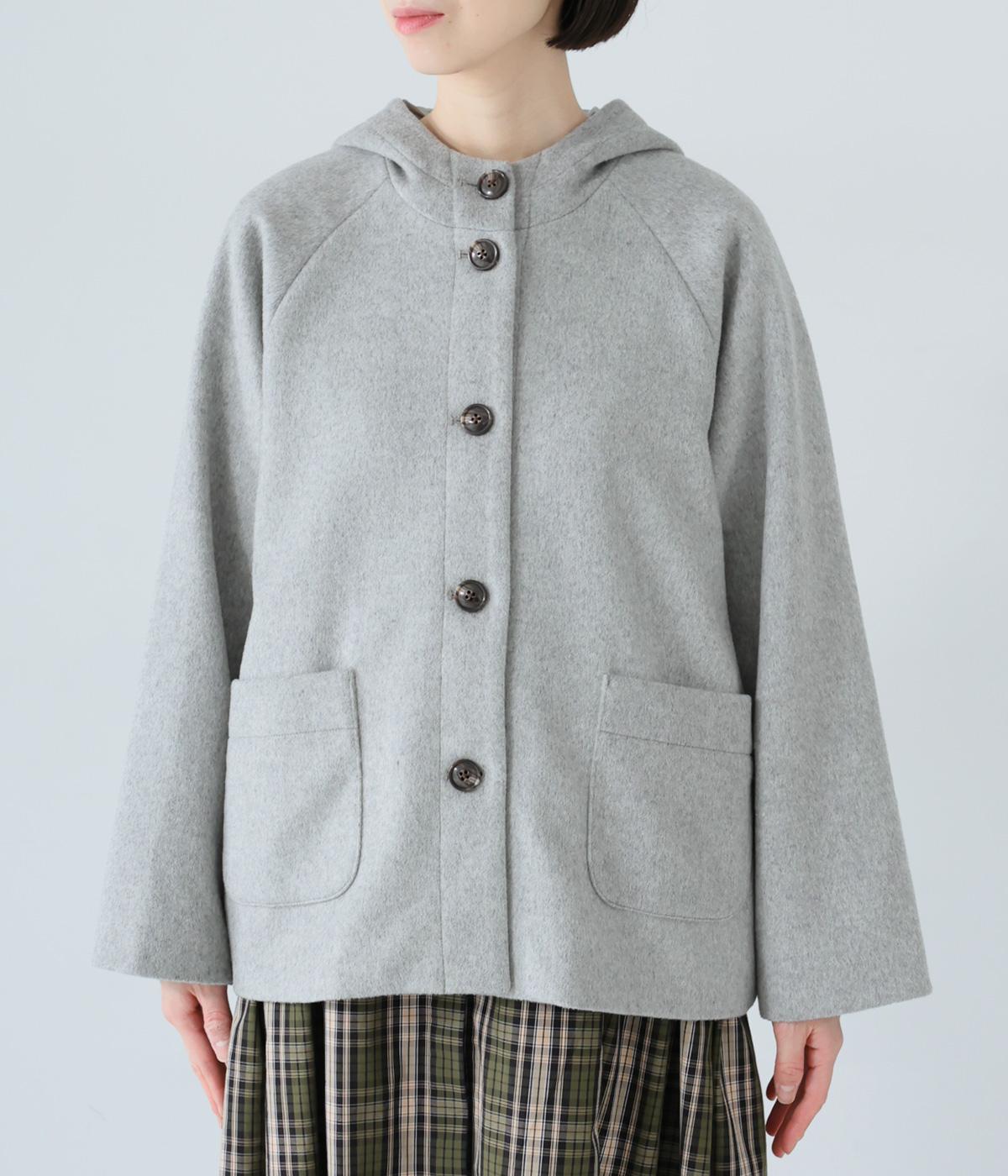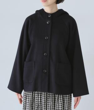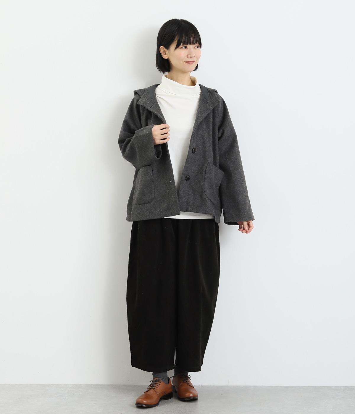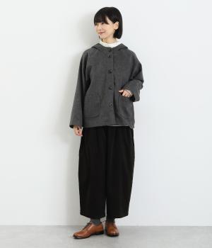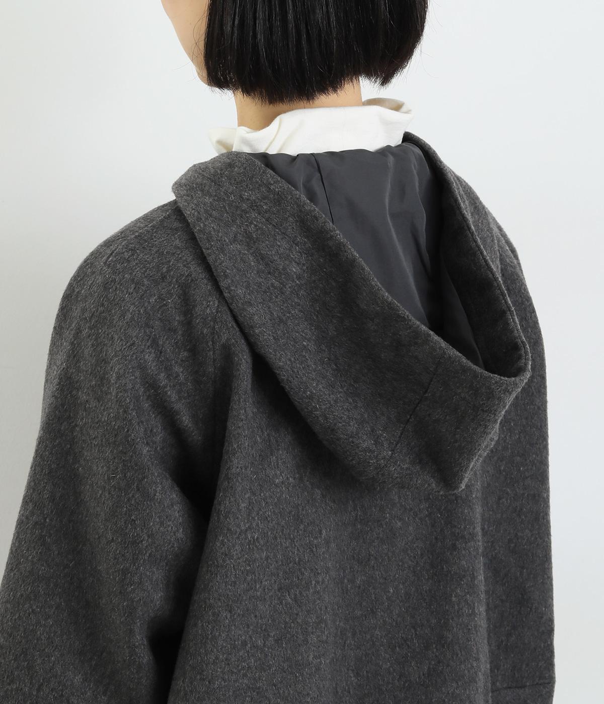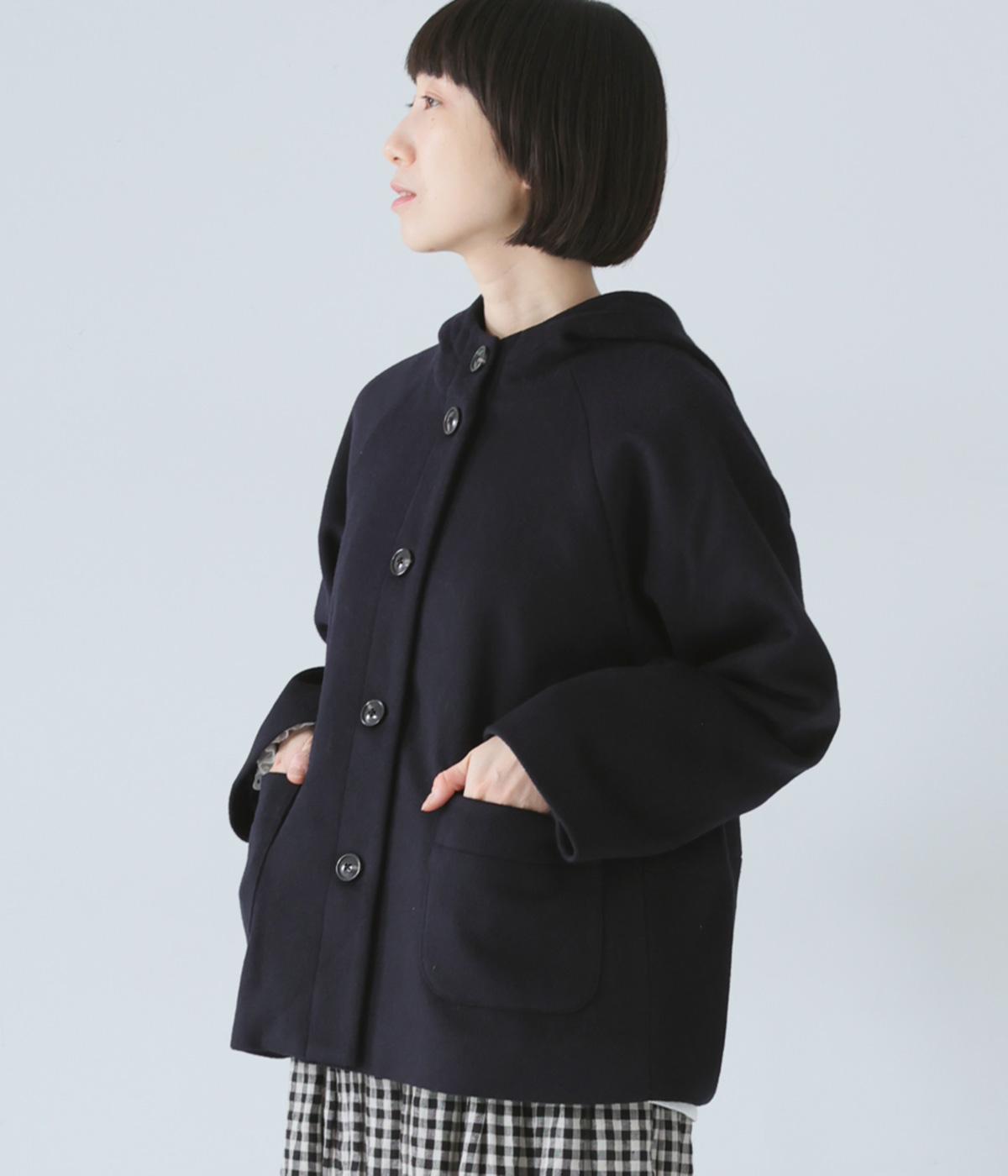 やや丸みのあるシルエットが女性らしいコクーンコート。大きめのボタンとフード、フロントのポケットで大人カジュアルスタイルにマッチする一着に仕上げました。さまざまなボトムスにバランスよく合わせやすい絶妙な着丈設定にもこだわっています。