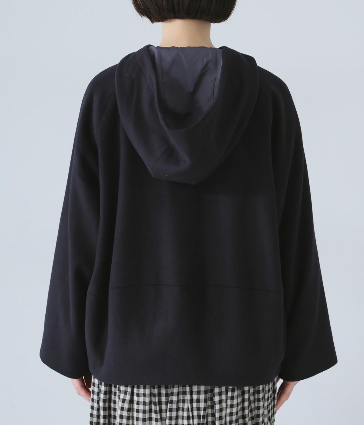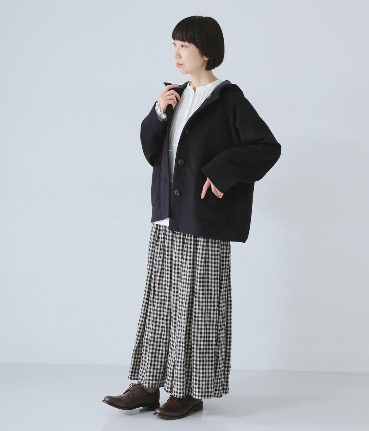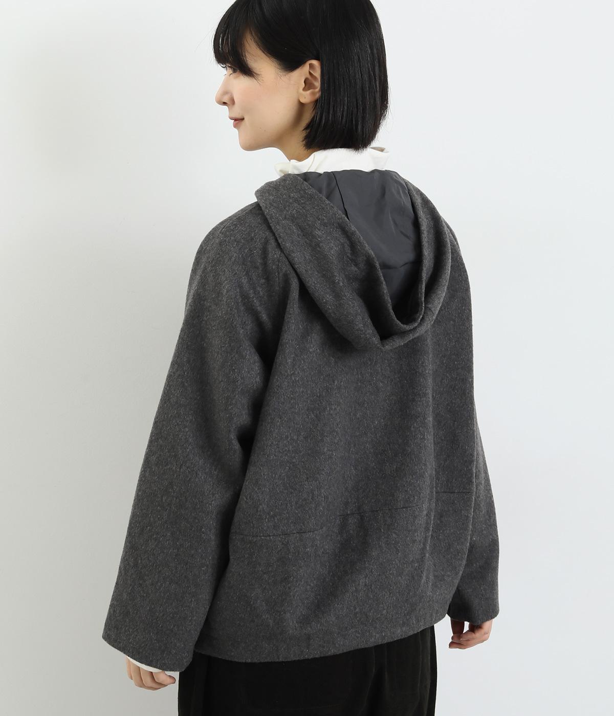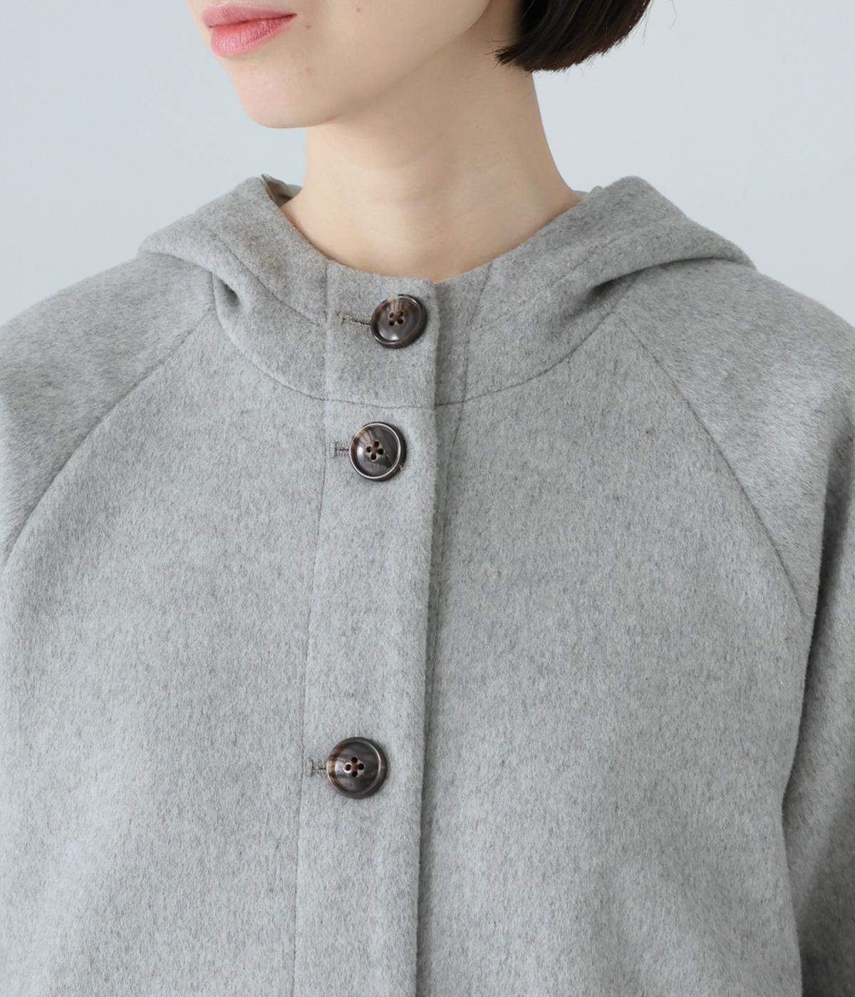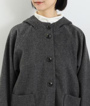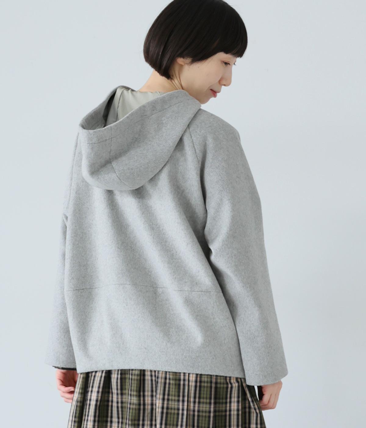 やや丸みのあるシルエットが女性らしいコクーンコート。大きめのボタンとフード、フロントのポケットで大人カジュアルスタイルにマッチする一着に仕上げました。さまざまなボトムスにバランスよく合わせやすい絶妙な着丈設定にもこだわっています。