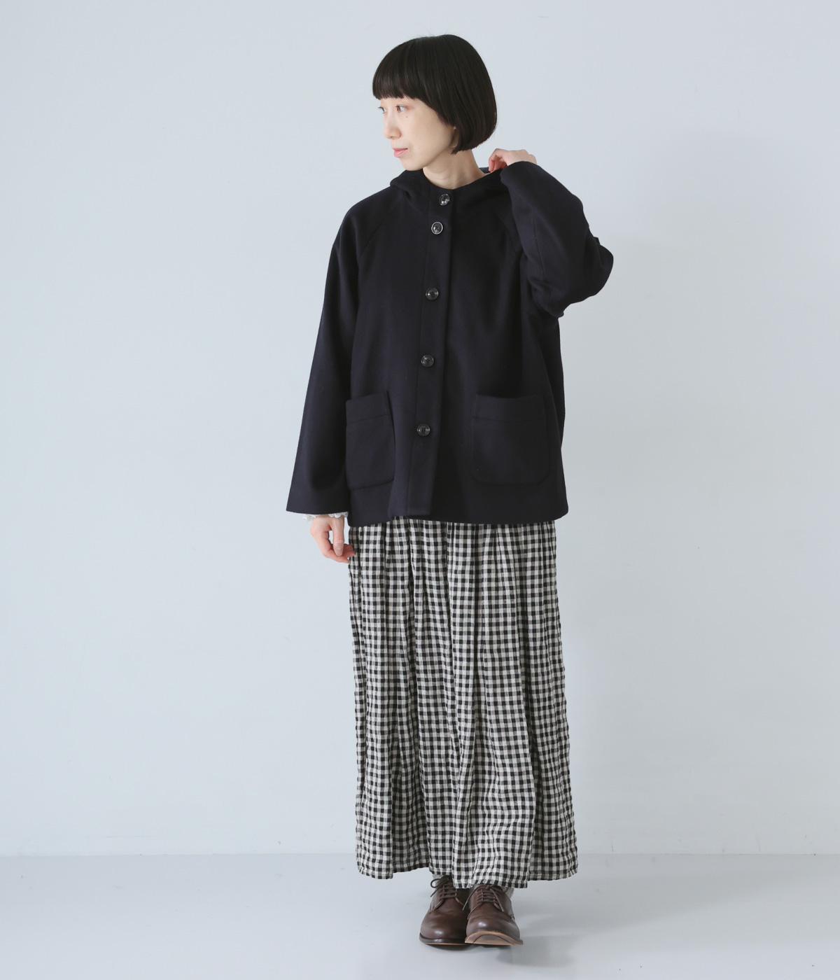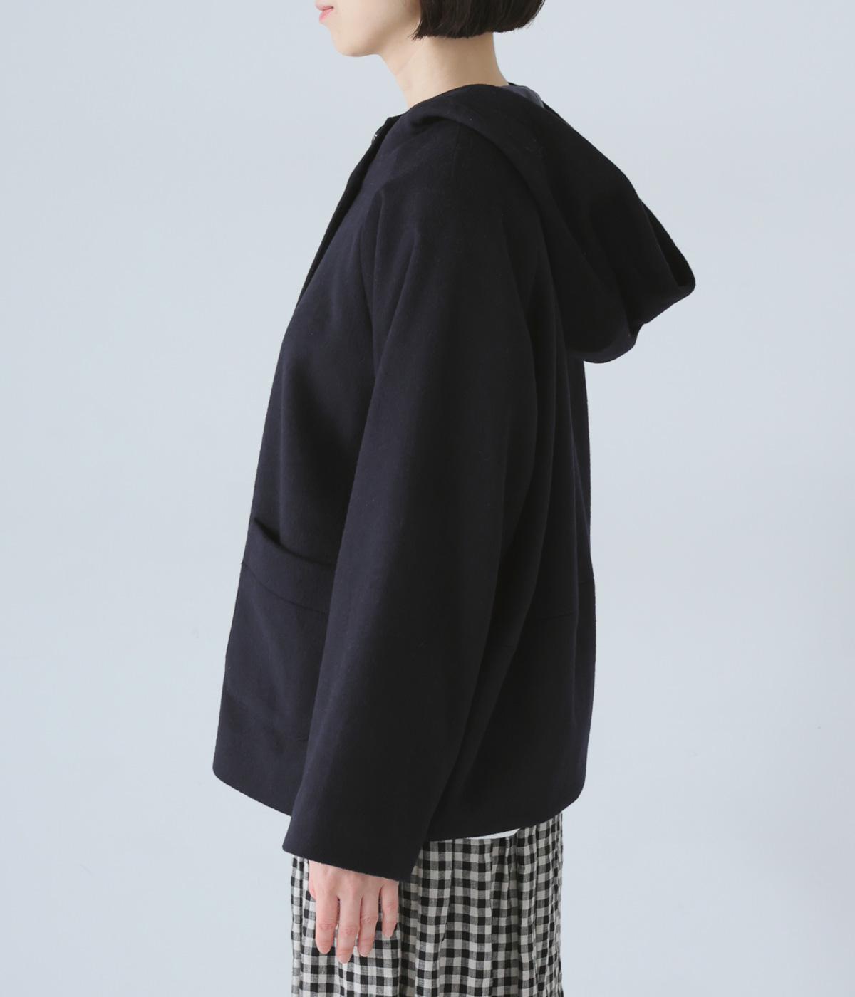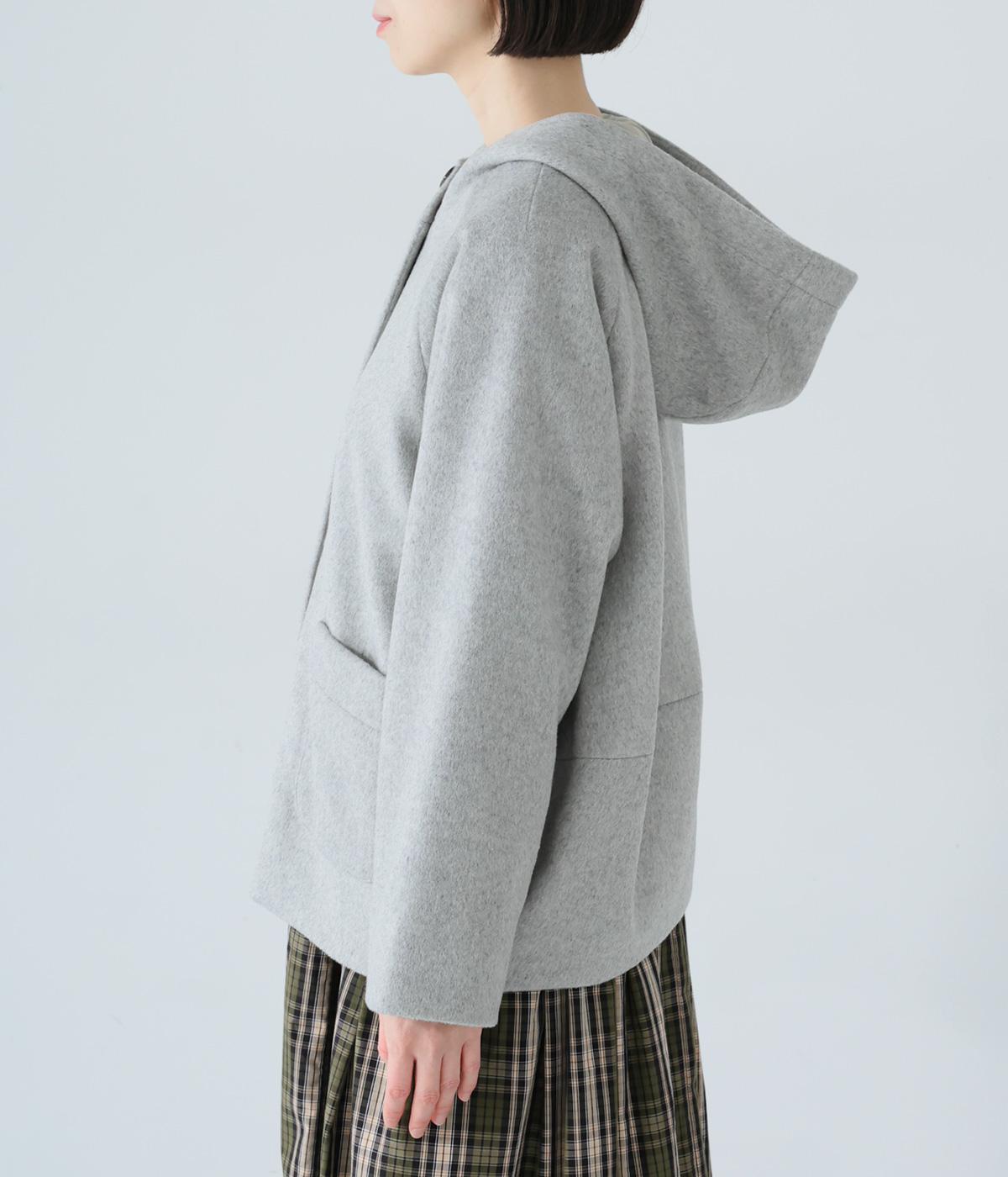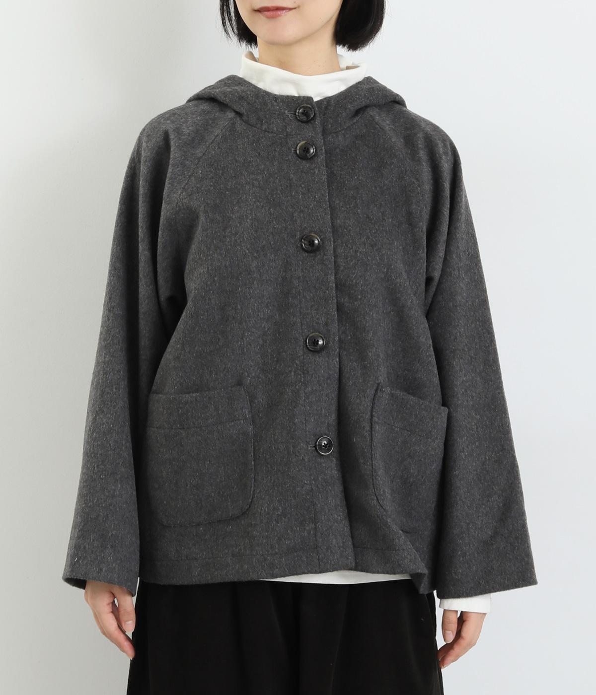 やや丸みのあるシルエットが女性らしいコクーンコート。大きめのボタンとフード、フロントのポケットで大人カジュアルスタイルにマッチする一着に仕上げました。さまざまなボトムスにバランスよく合わせやすい絶妙な着丈設定にもこだわっています。