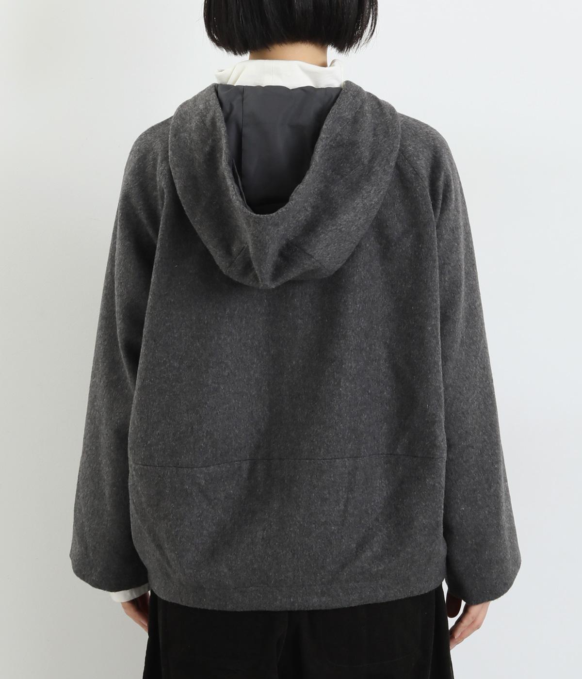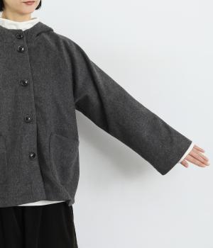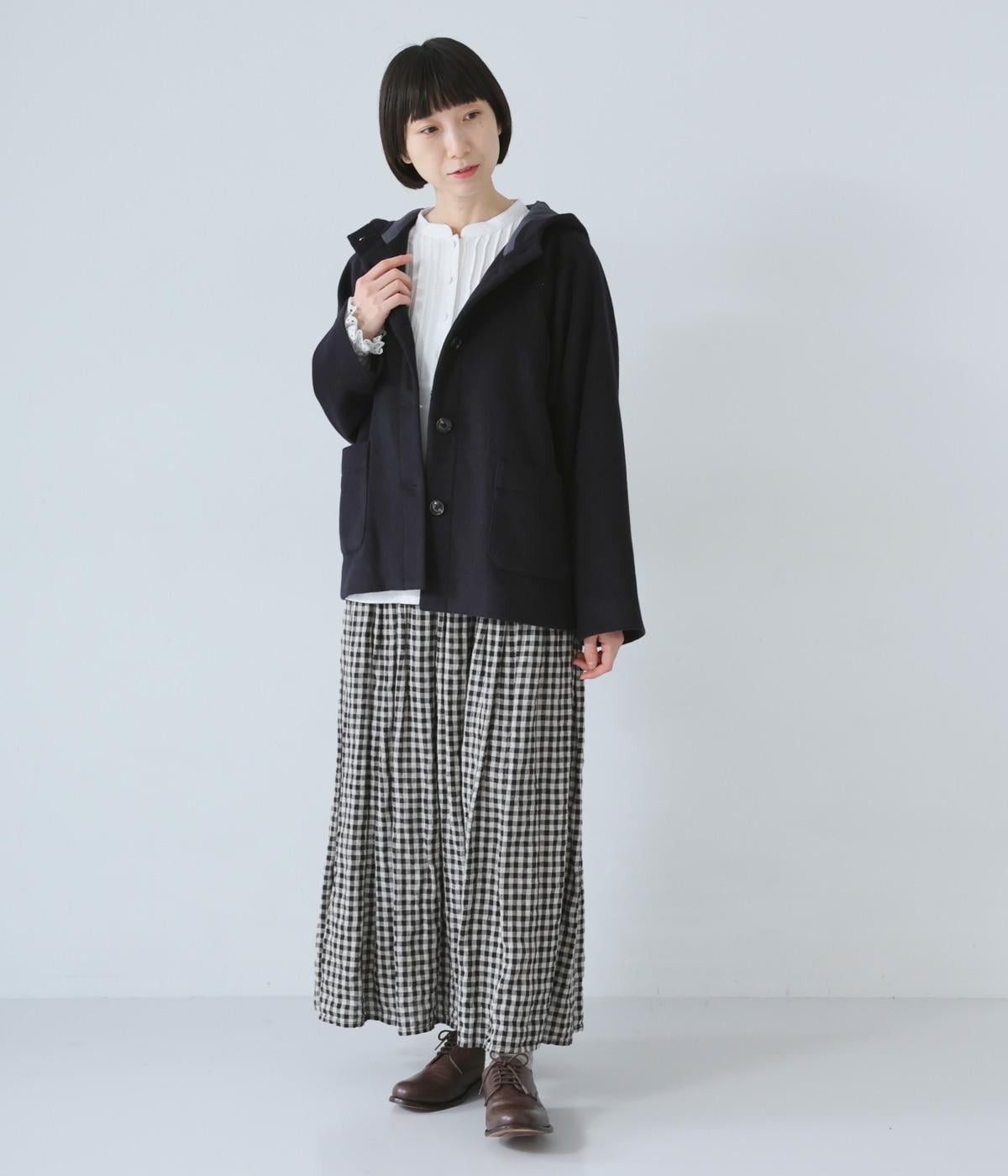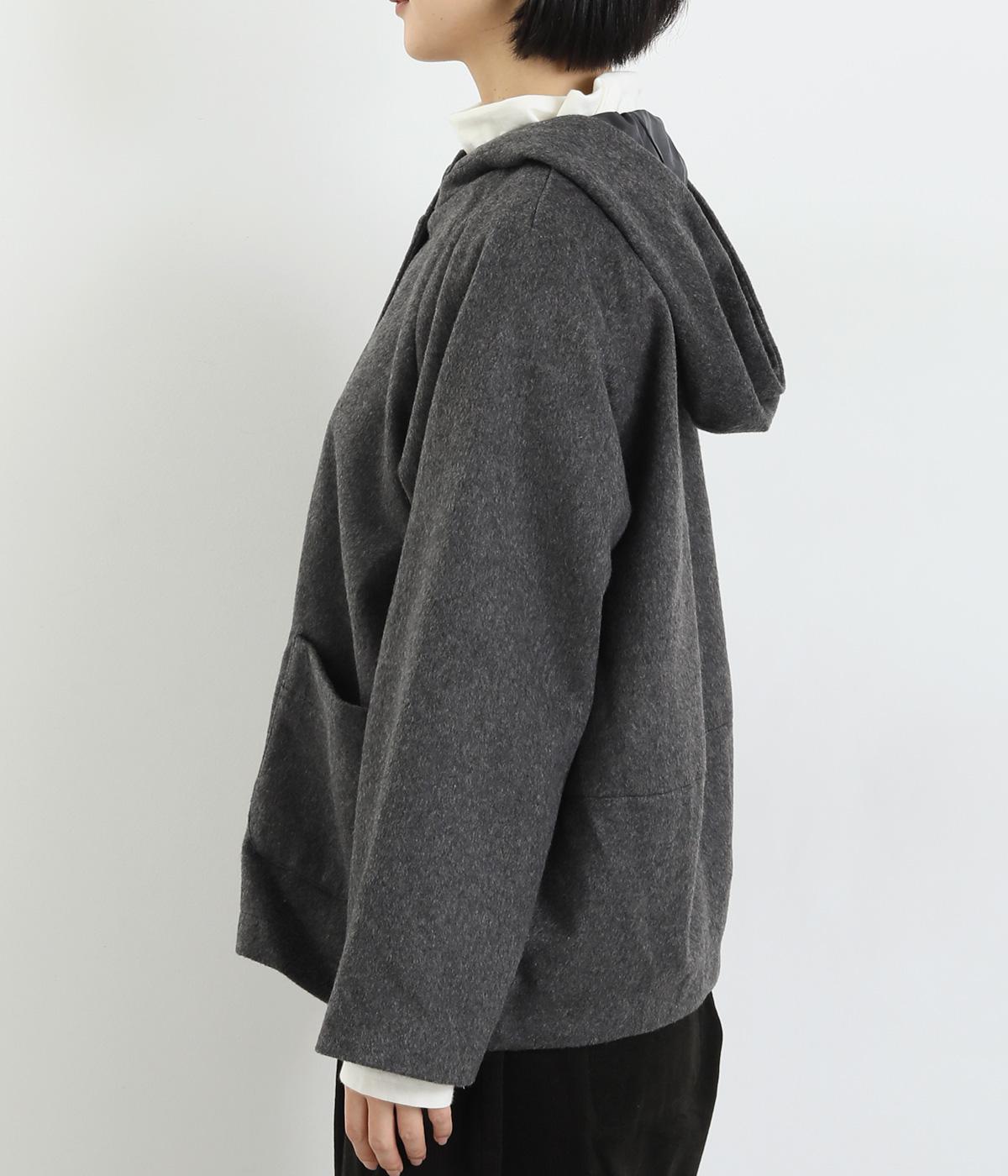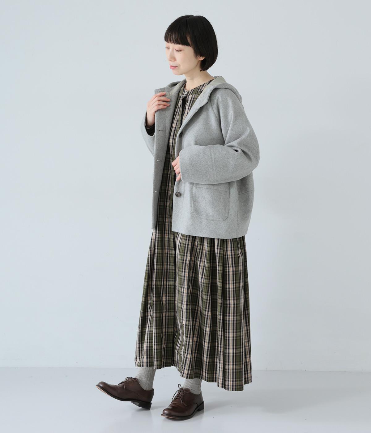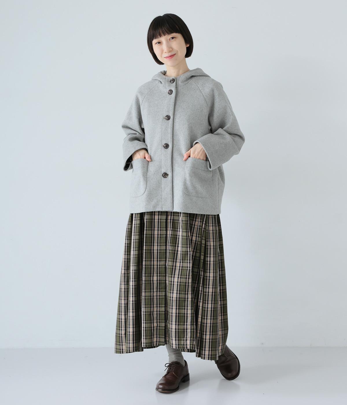 やや丸みのあるシルエットが女性らしいコクーンコート。大きめのボタンとフード、フロントのポケットで大人カジュアルスタイルにマッチする一着に仕上げました。さまざまなボトムスにバランスよく合わせやすい絶妙な着丈設定にもこだわっています。