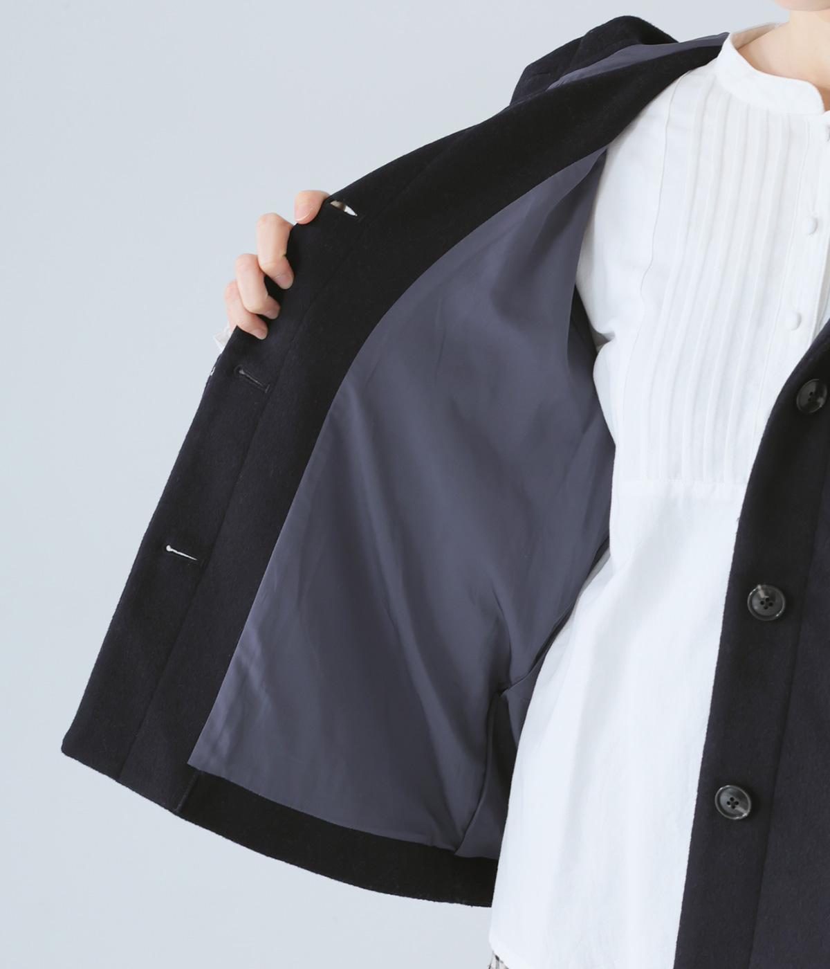 あたたかみを感じる起毛感のあるウール混のビーバークロス。やわらかく滑らかな肌触りと、高級感のある上品な見た目を叶えてくれます。滑りの良い裏地つきです。