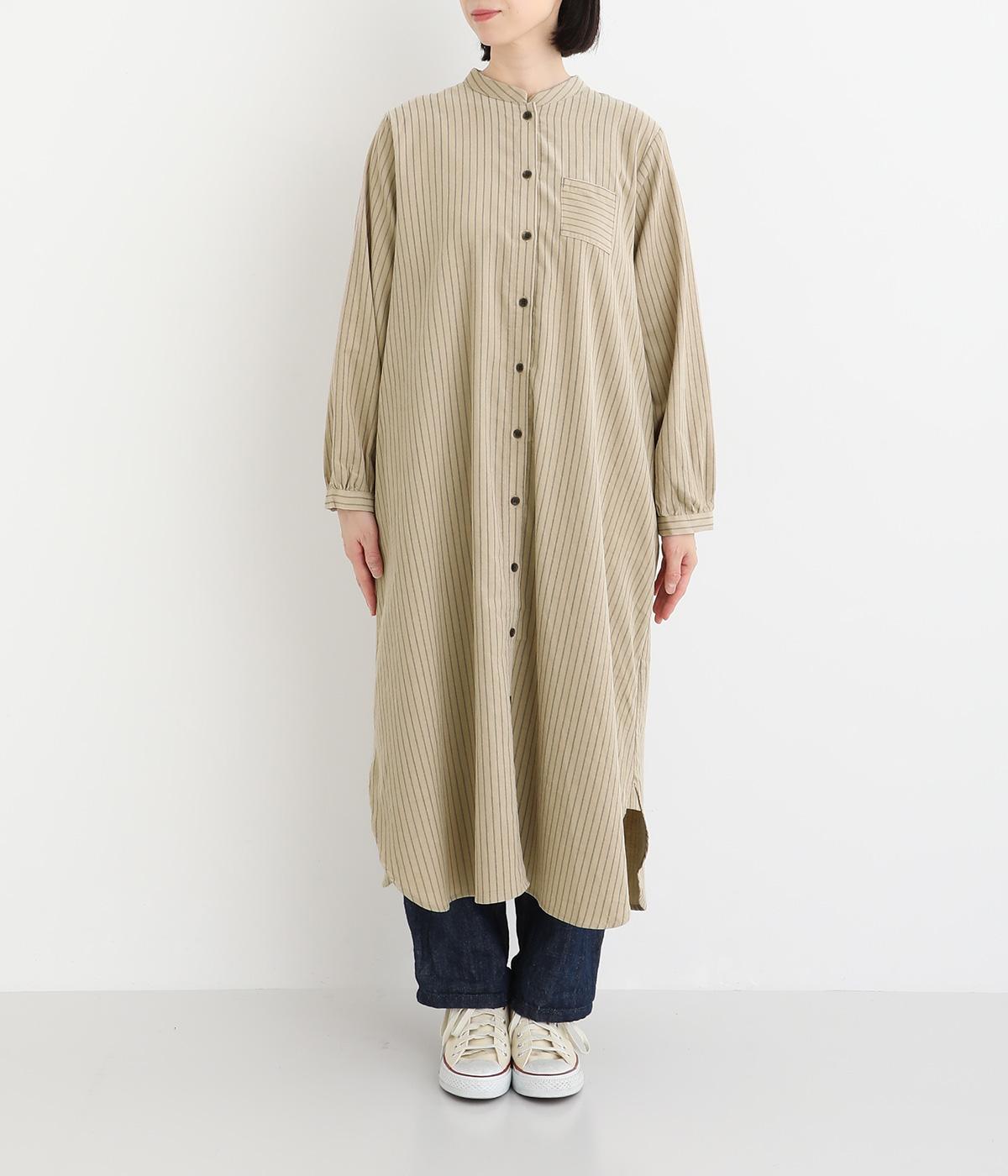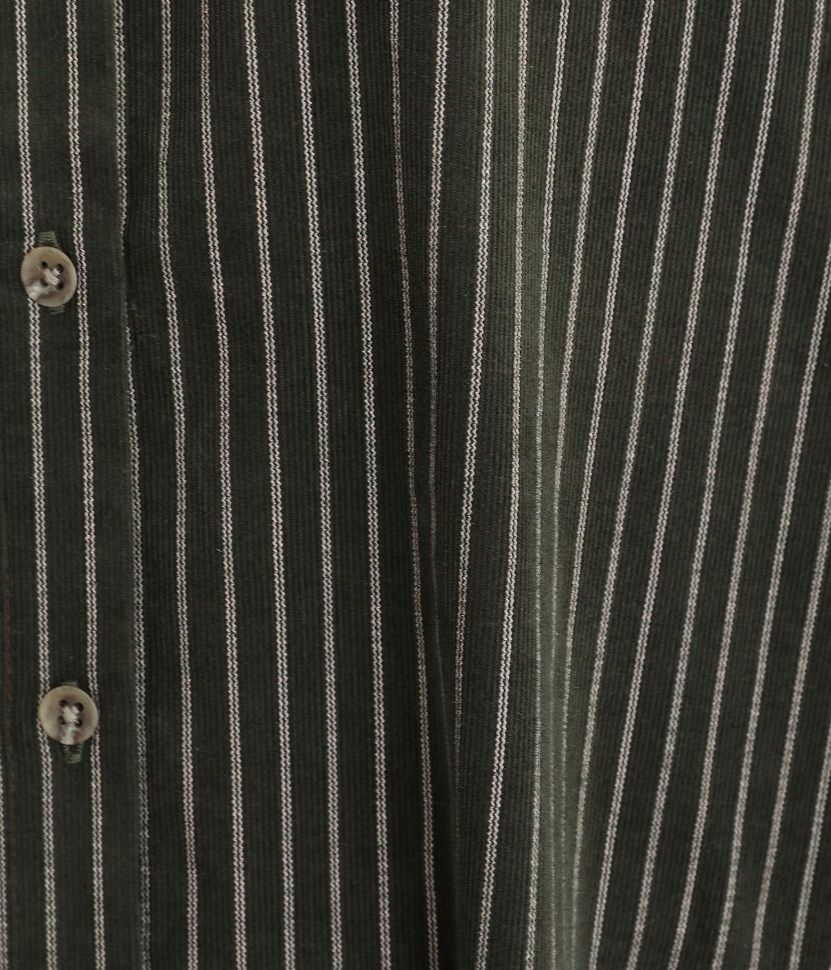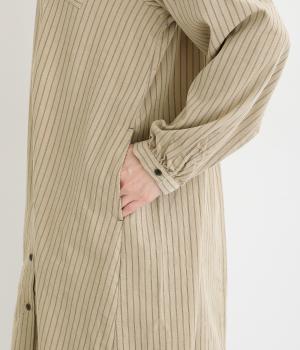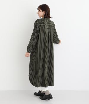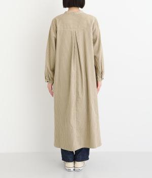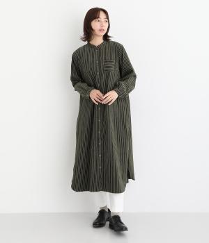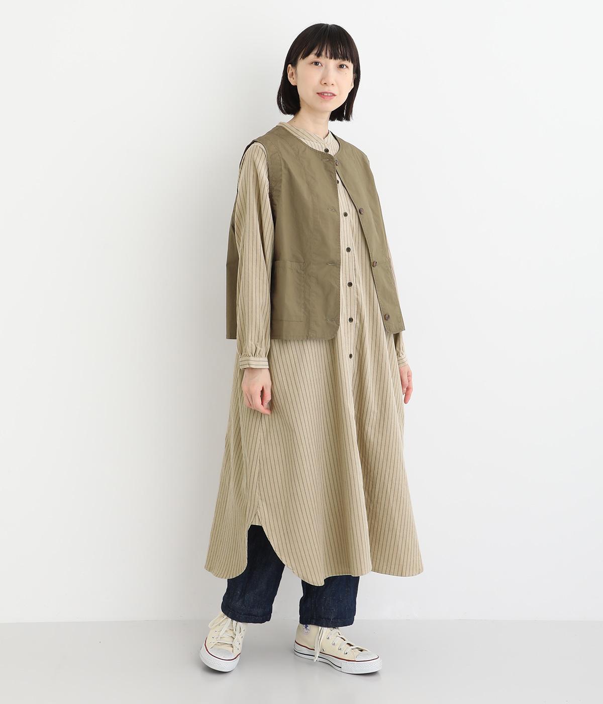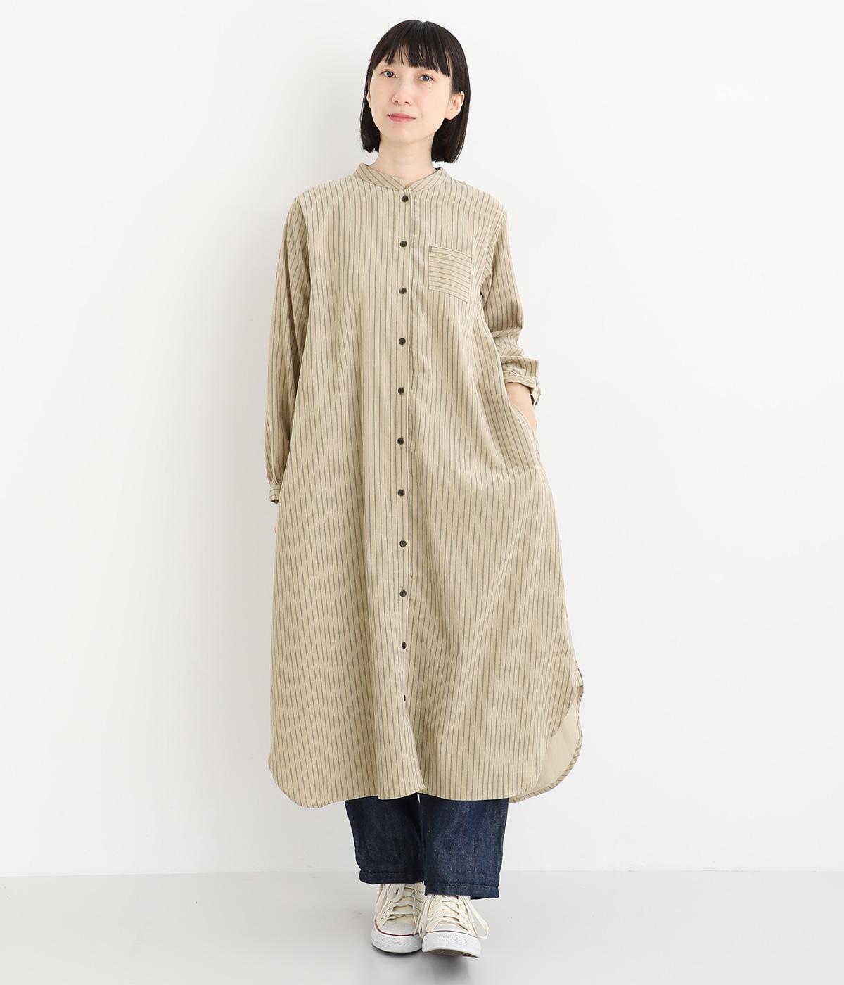 コーデュロイ生地にストライプ柄をのせた大人カジュアルなワンピース。身幅にゆとりを持たせつつも、落ち感のある生地がボリュームをおさえてすっきり見えを叶えます。柄の向きを変えた胸ポケットがアクセントに。丸みを帯びた裾ラインが両サイドに抜け感を与え、パンツとのレイヤードもサマ見えします。