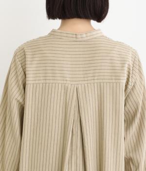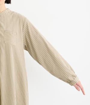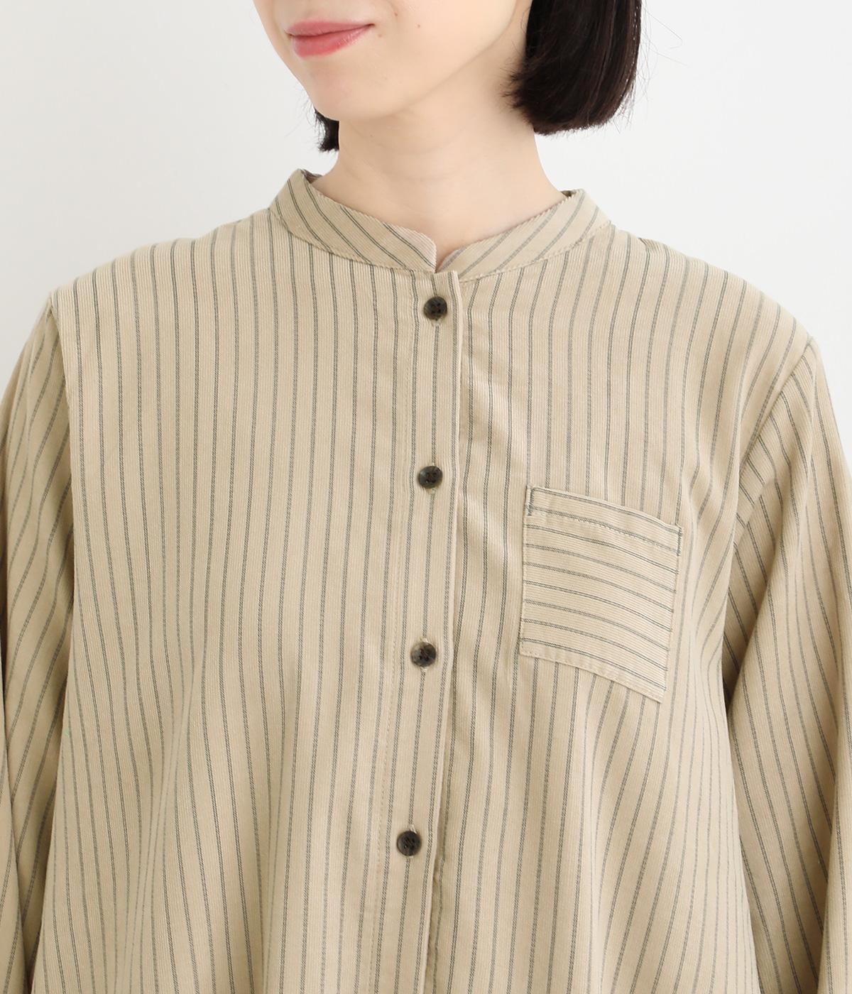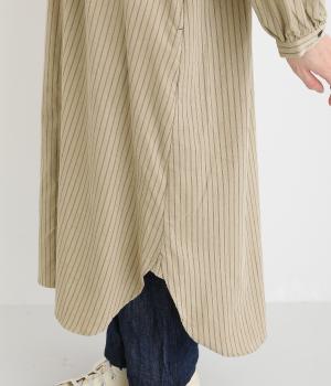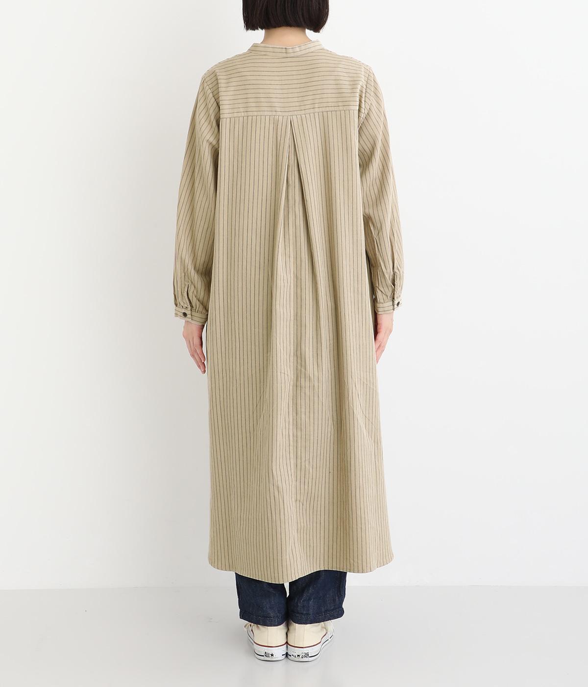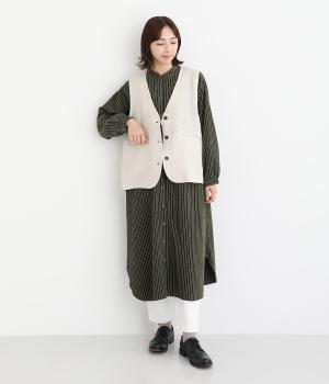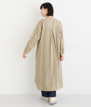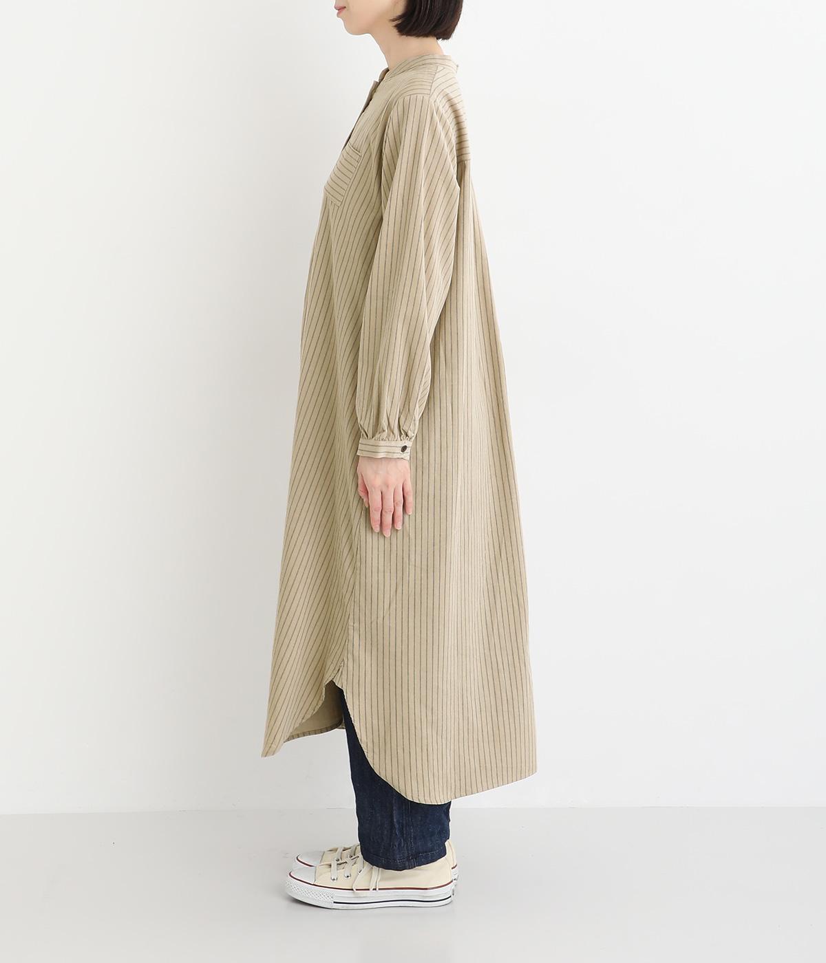 コーデュロイ生地にストライプ柄をのせた大人カジュアルなワンピース。身幅にゆとりを持たせつつも、落ち感のある生地がボリュームをおさえてすっきり見えを叶えます。柄の向きを変えた胸ポケットがアクセントに。丸みを帯びた裾ラインが両サイドに抜け感を与え、パンツとのレイヤードもサマ見えします。