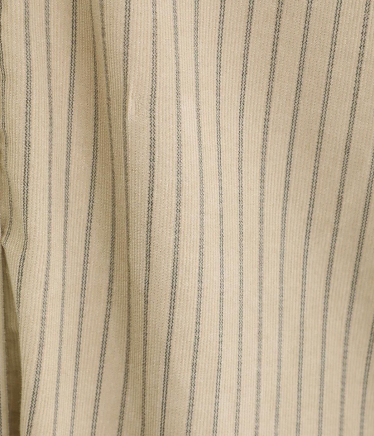 なめらかな表面感が特徴のカジュアルさをおさえた細いコーデュロイ生地。厚手すぎずとても軽くやわらかな風合いで、冬に限らずロングシーズン着やすい素材感です。
