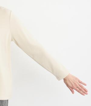 つい袖を通したくなるようなソフトで心地よい肌触りのコットン混カットソー。表裏に起毛感があるのであたたかく、伸縮性があるため動きやすいのもポイントです。