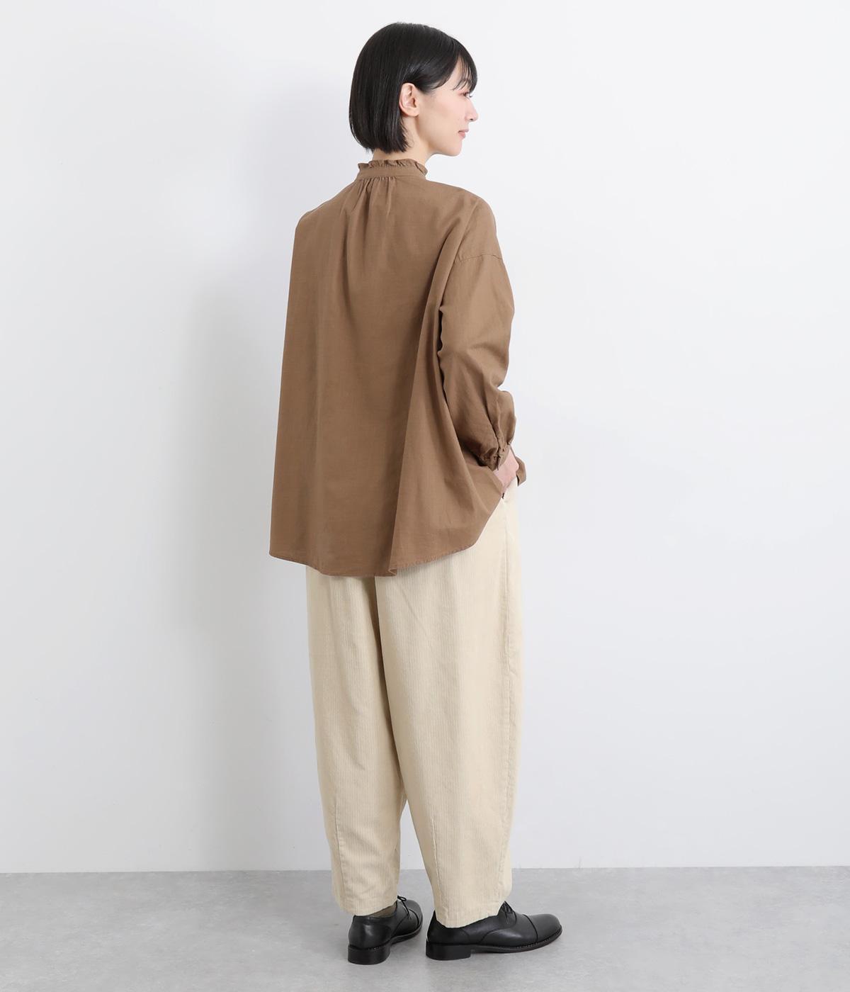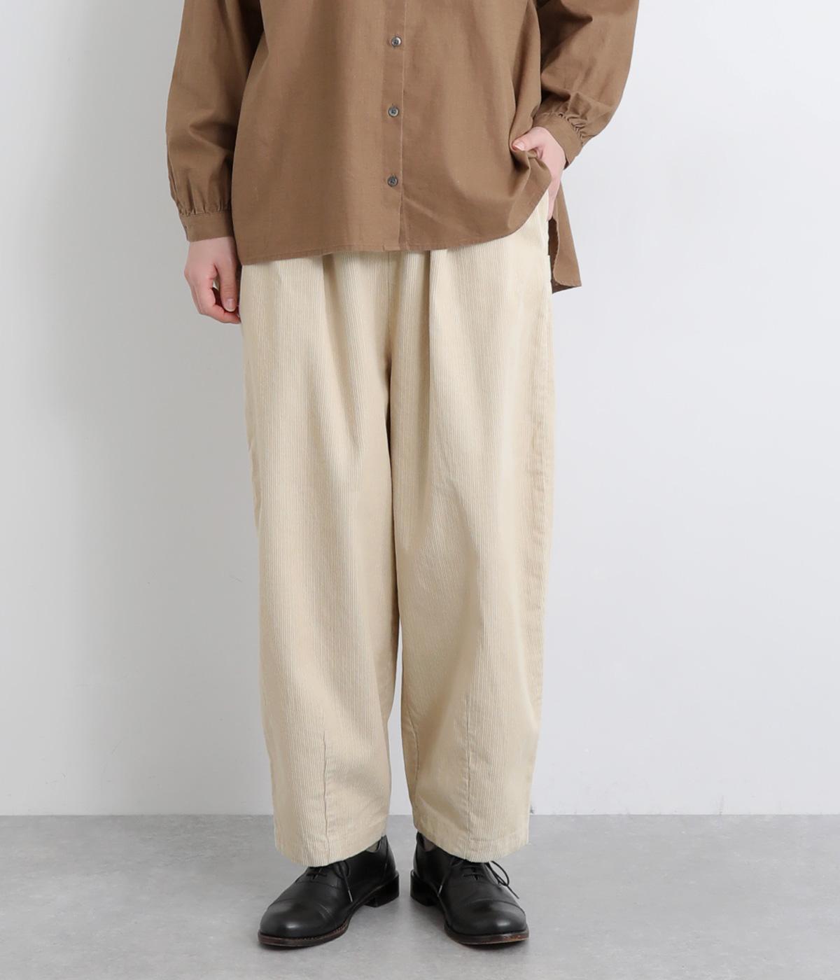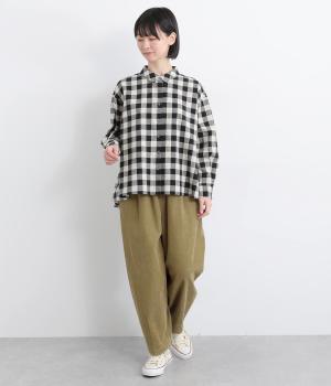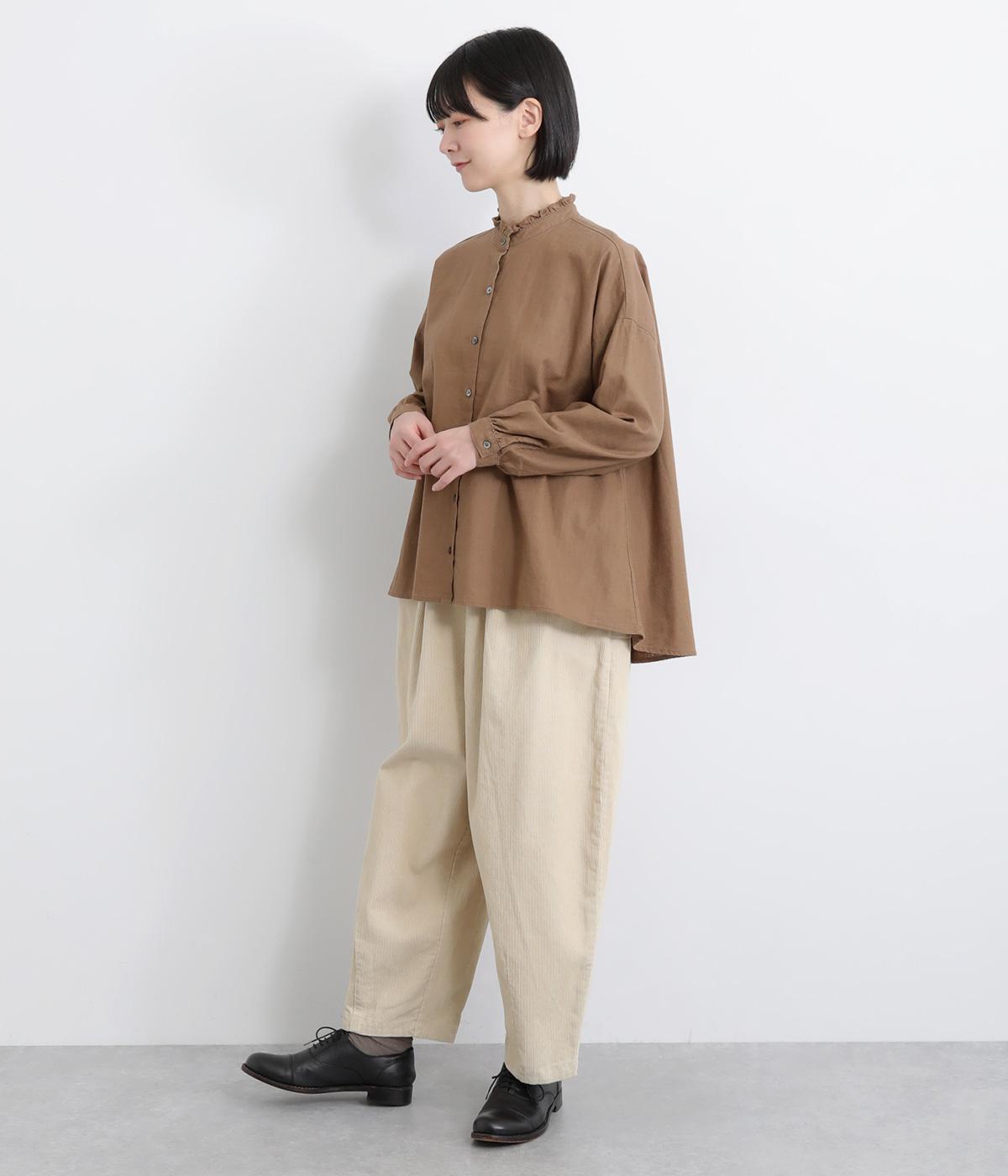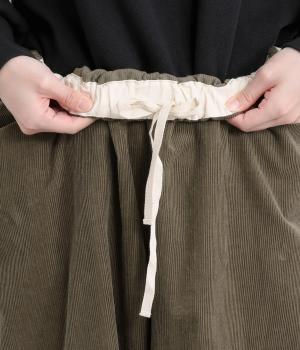 やわらかな肌ざわりのコーデュロイ生地を使用しました。見た目にもあたたかみがあり、ほどよい厚みで、日常になじむナチュラルな風合いが特徴です。