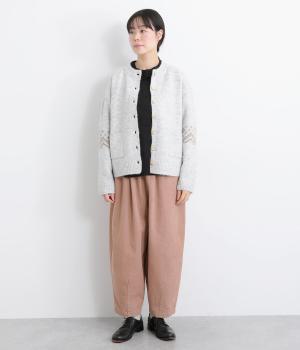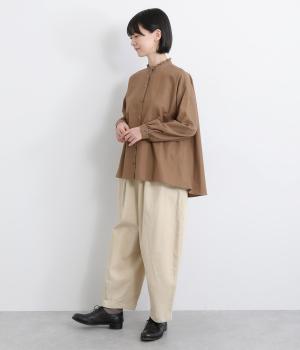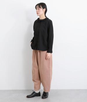 丸みとボリュームのある、ふんわりシルエットのパンツです。裾にきゅっとダーツをくわえ、立体感を出しました。トップスを着ても見えやすい位置にデザインした、うしろポケットもこだわりポイント。うしろ姿もぬかりなく、こなれた印象をあたえます。