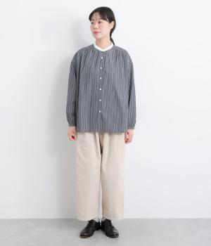 オーガニックコットンを使用したストライプ生地に、ワッシャー加工を施しました。ナチュラルなシワ感がほどよい抜け感を生み、やわらかく軽やかな風合いに。さらりとした肌ざわりで、一日中快適に過ごせます。