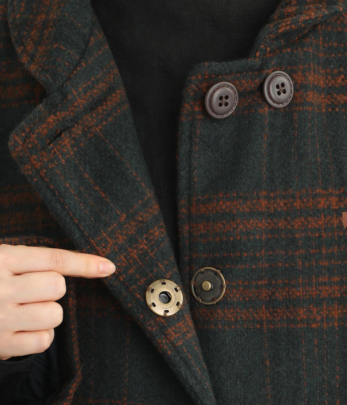 チェック柄にはやわらかな起毛感のある素材を使用し、刺しゅう部分にはビスコースを混ぜた品のあるなめらかな生地を採用。しっかりとした温かみのある素材感に仕上がりました。