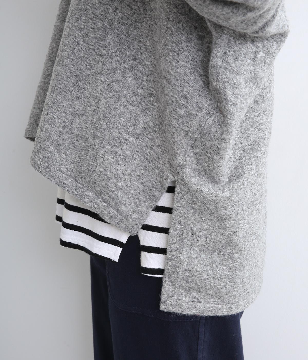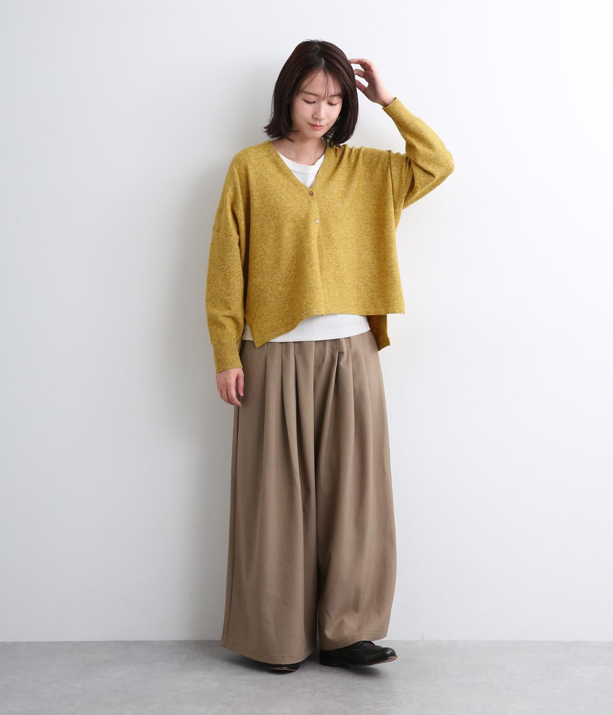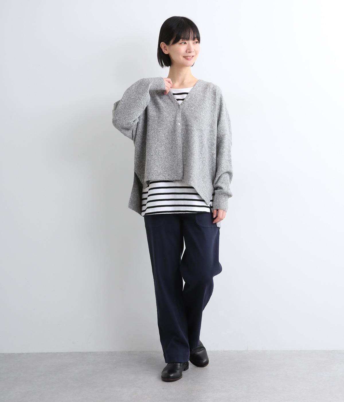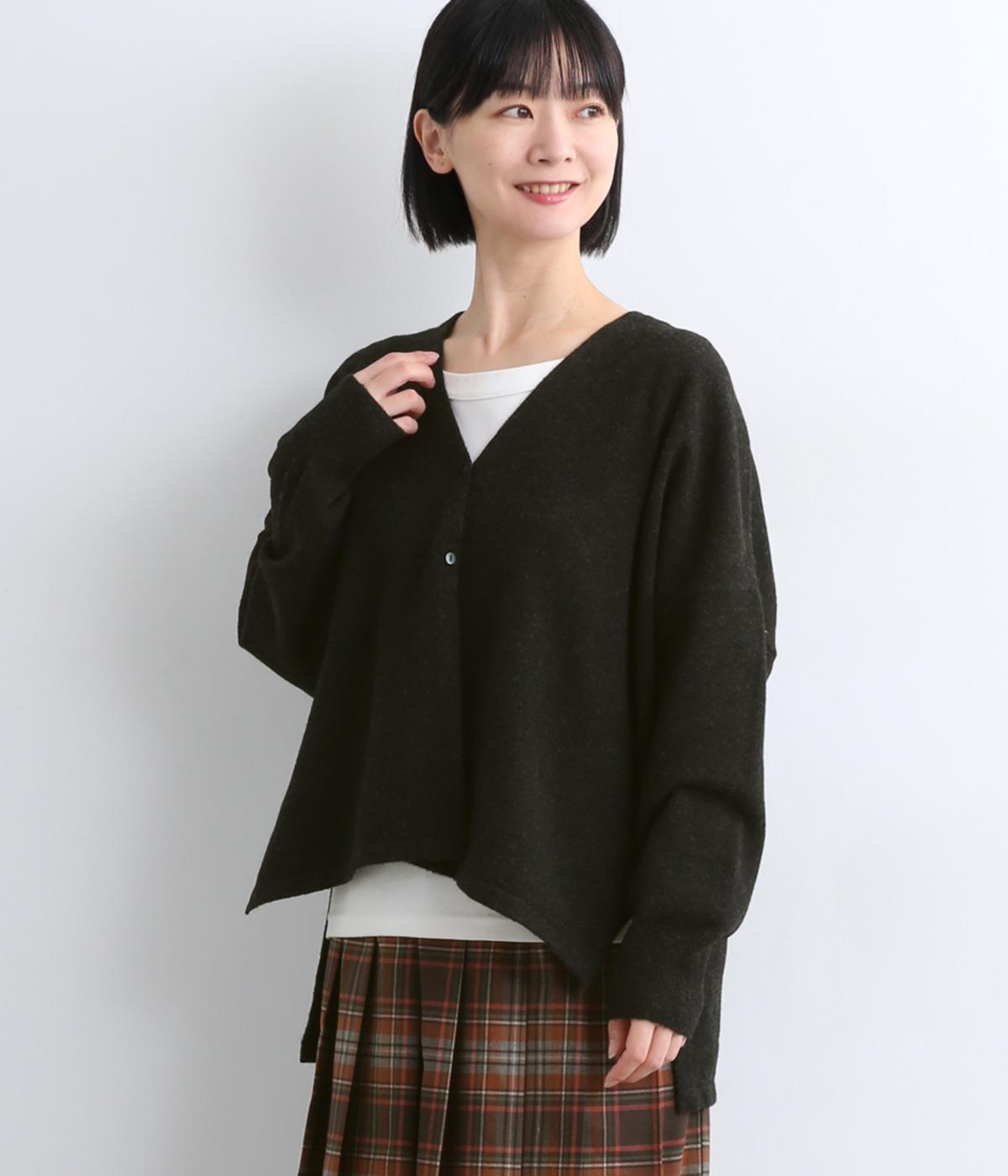 異なる種類の繊維を混ぜ合わせて仕上げたミックス糸が、独特の風合いを醸し出すVネックカーディガン。サイドと後ろ見頃に入れたスリットが、レイヤードスタイルを盛り上げるデザインです。シンプルなホワイトのカットソーやボーダー柄とも好相性。