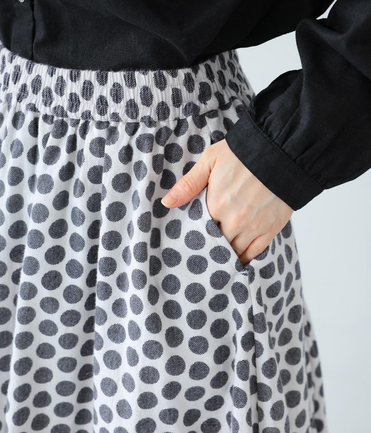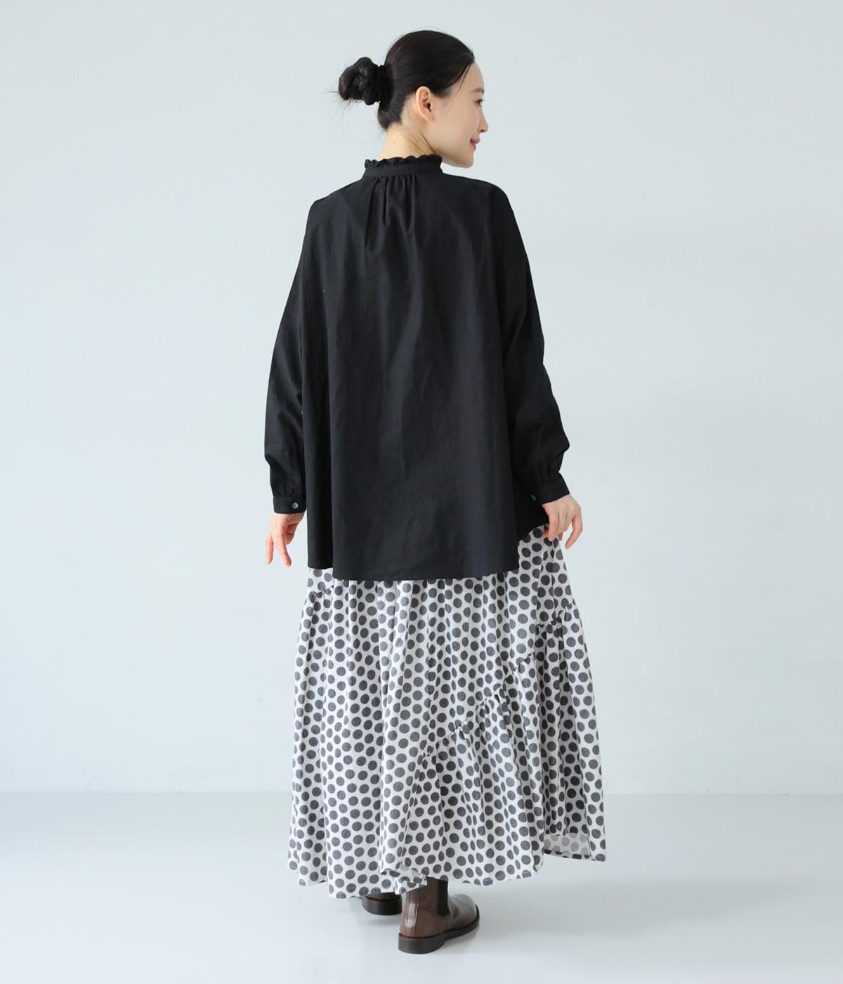 ランダムな切り替えにたっぷりとギャザーを施したティアードスカート。ボリュームがかわいらしく、シンプルなシャツやニットと合わせるだけでスタイリングが完成します。ウエストは総ゴム仕様で、リラックスしたはき心地。内側のヒモでフィット感の調節も可能です。