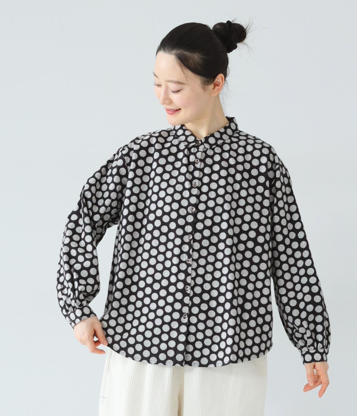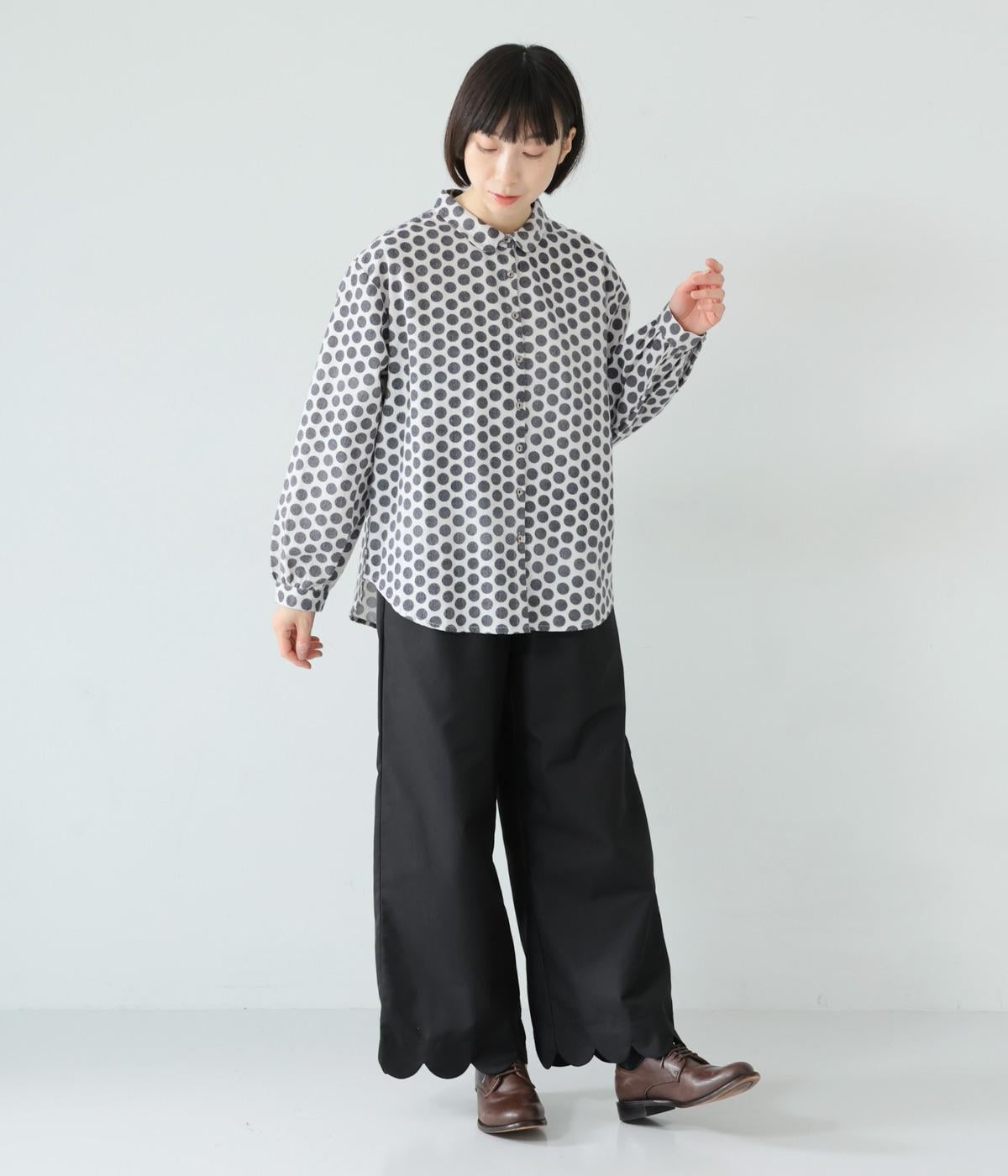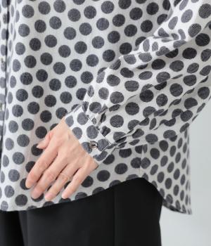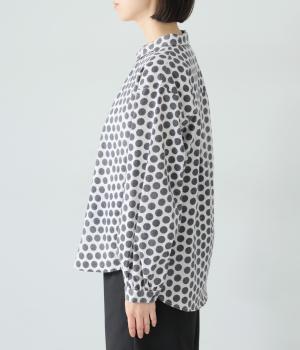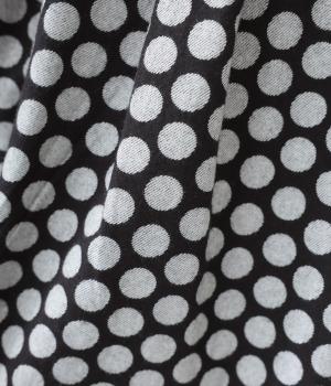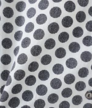 コットンの起毛素材を使用した、あたたかみのあるドット柄生地。線画のようなモノトーンのプリントが大人らしい佇まいに。やわらかさの中にも適度なハリがあり、シルエットがきれいに出るのも魅力です。