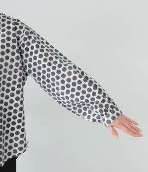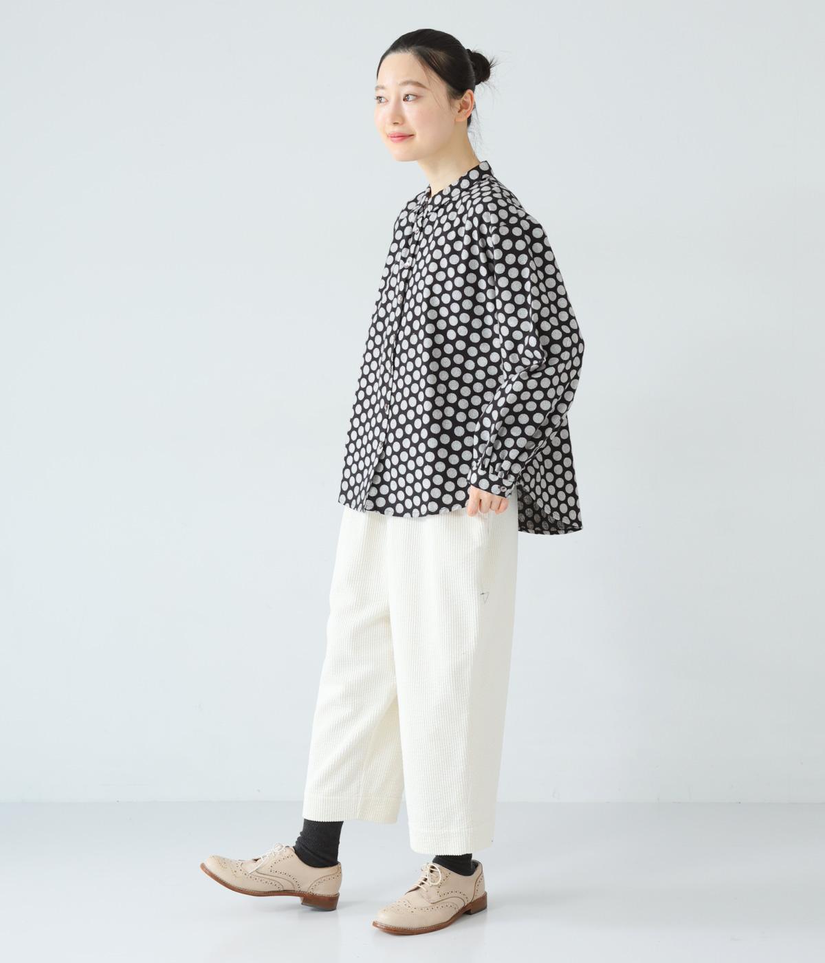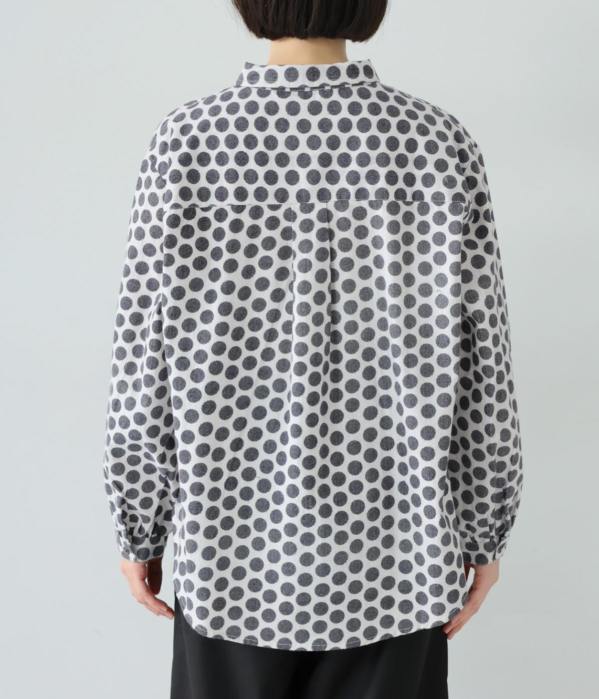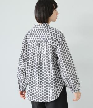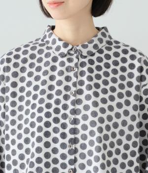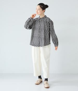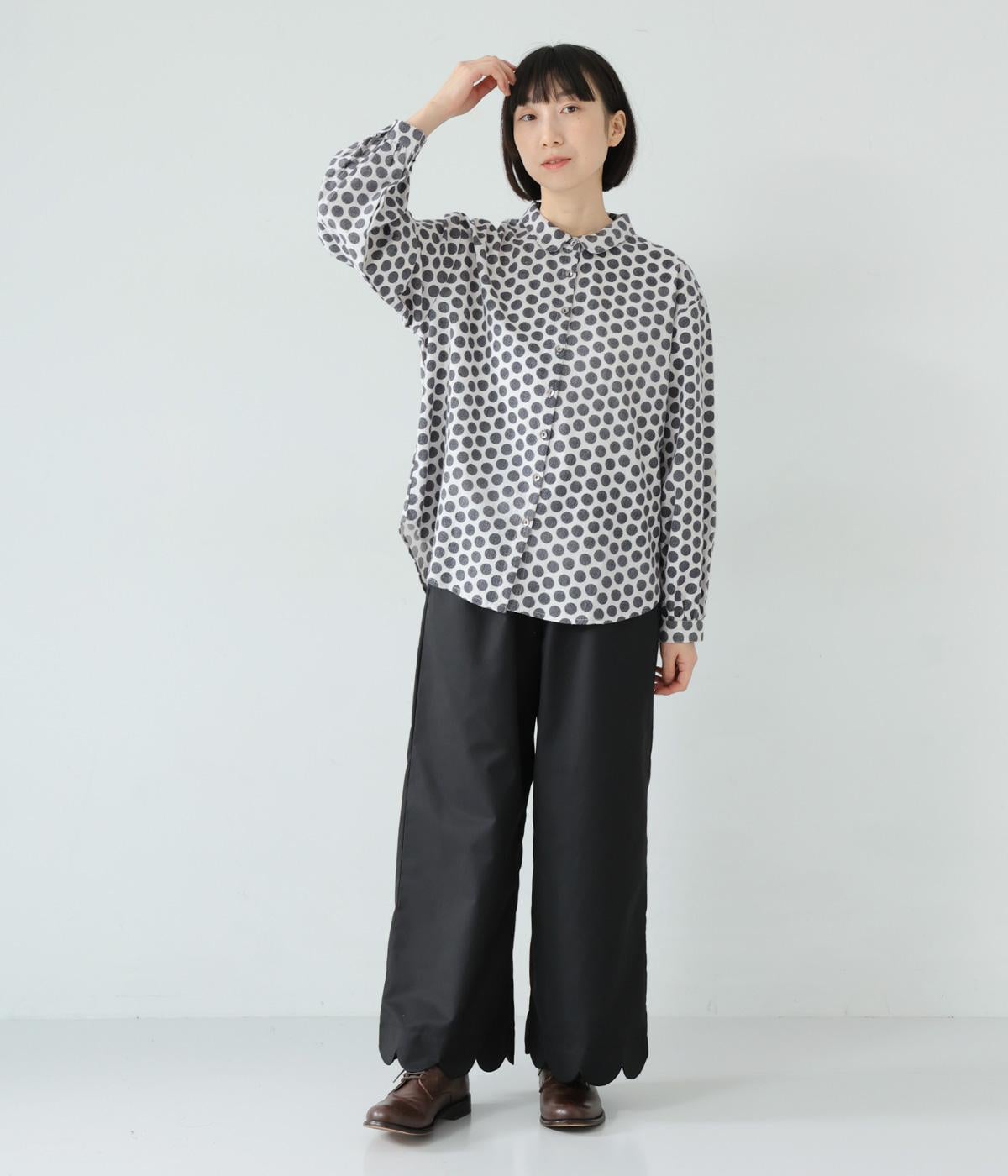 コットンの起毛素材を使用した、あたたかみのあるドット柄生地。線画のようなモノトーンのプリントが大人らしい佇まいに。やわらかさの中にも適度なハリがあり、シルエットがきれいに出るのも魅力です。