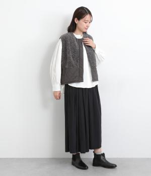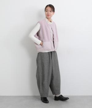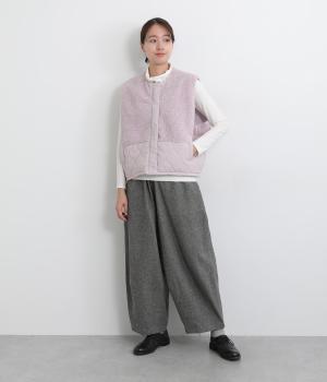 ニットなどを着込みやすくも腰まわりはすっきりとして見るよう、自然な立体感をつけたエッグシルエットの中綿ベスト。ほどよい丈感でボトム合わせしやすく、可愛らしさのあるデザインでワンピース合わせもおすすめ。
