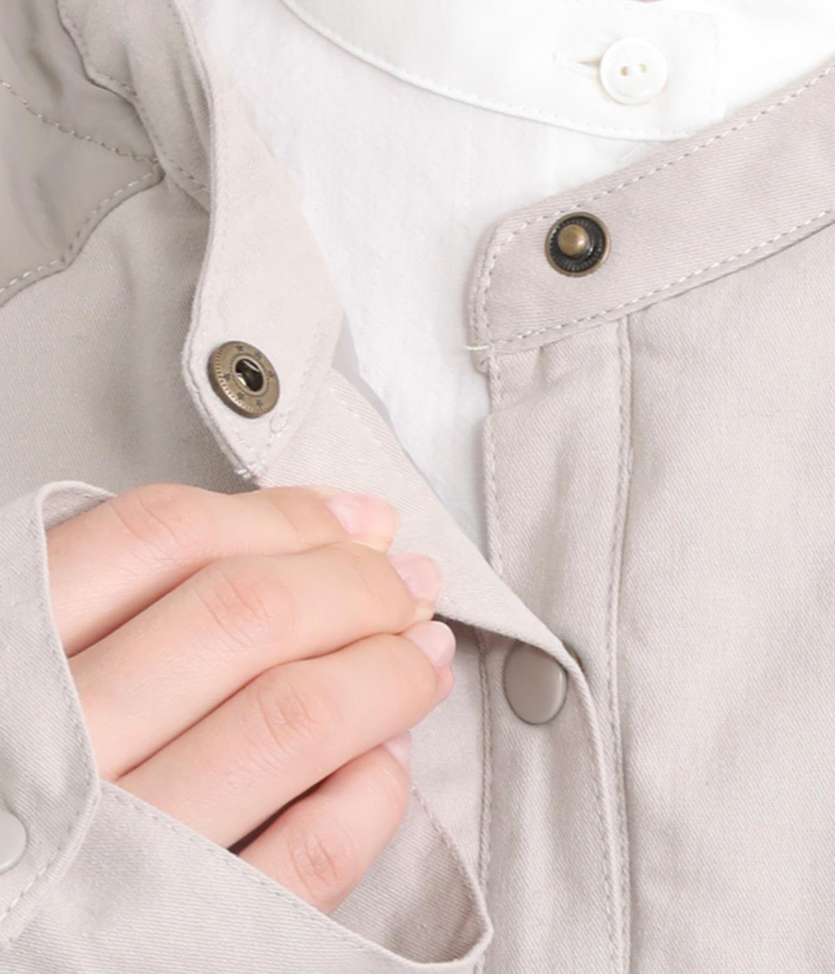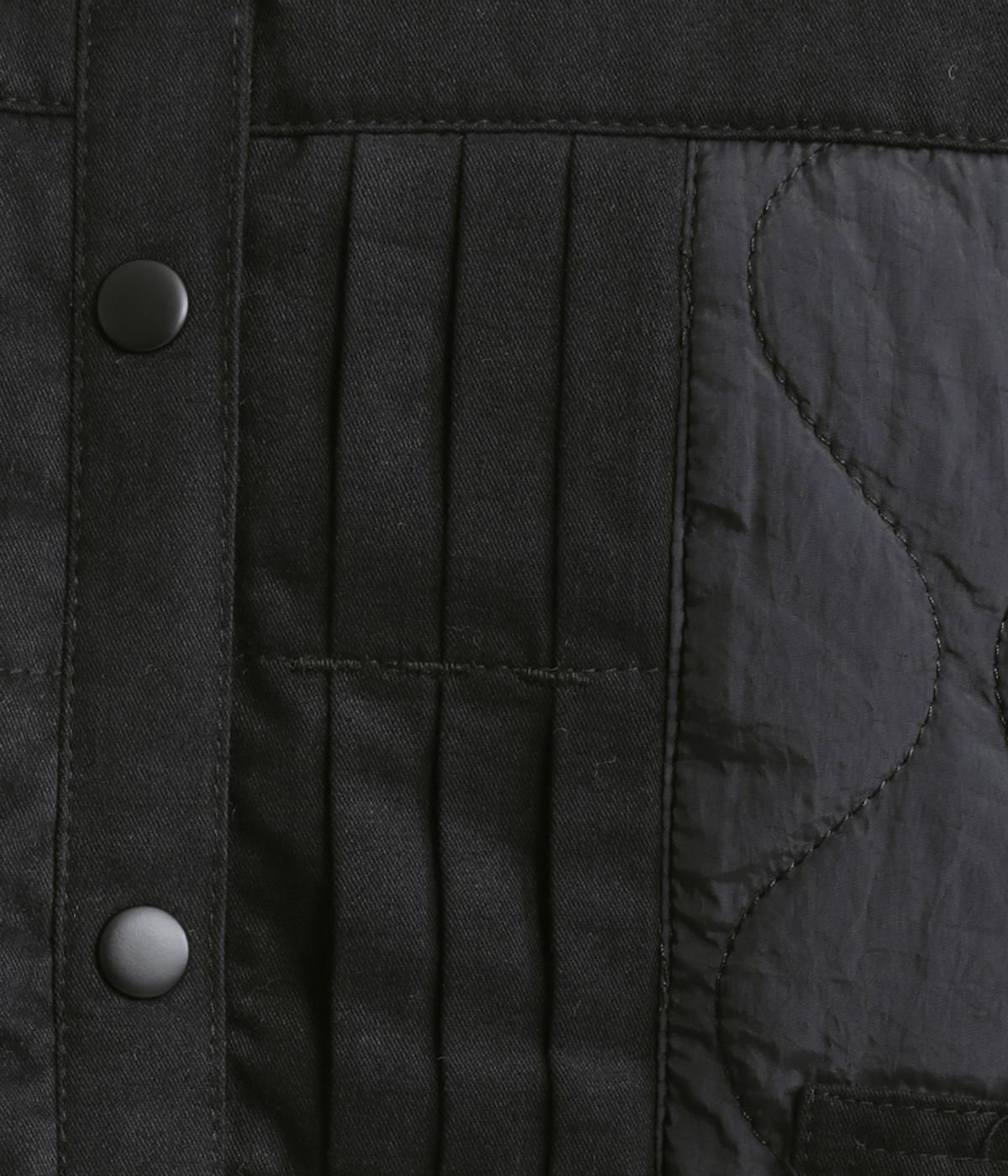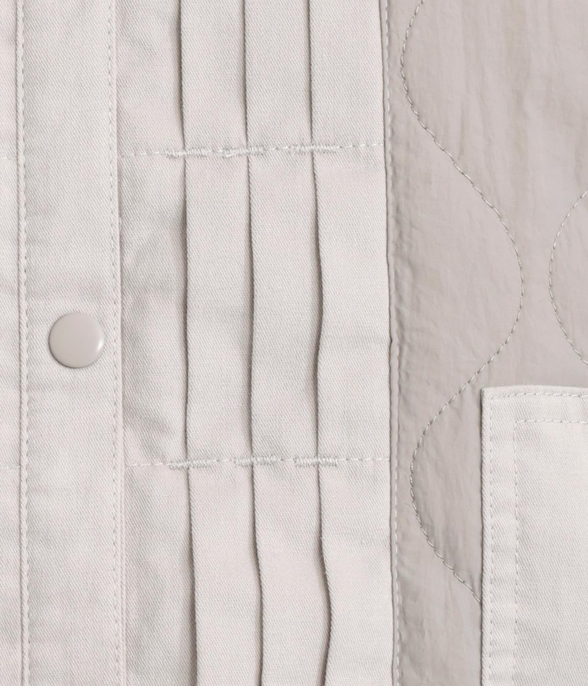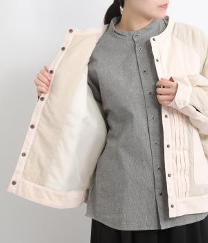 ドライな質感のナイロンにさらりとした布帛をドッキングしました。ポリエステルの裏地付きで着脱のしやすさを確保。あたたかな中綿入りを560gと軽量に仕立てました。