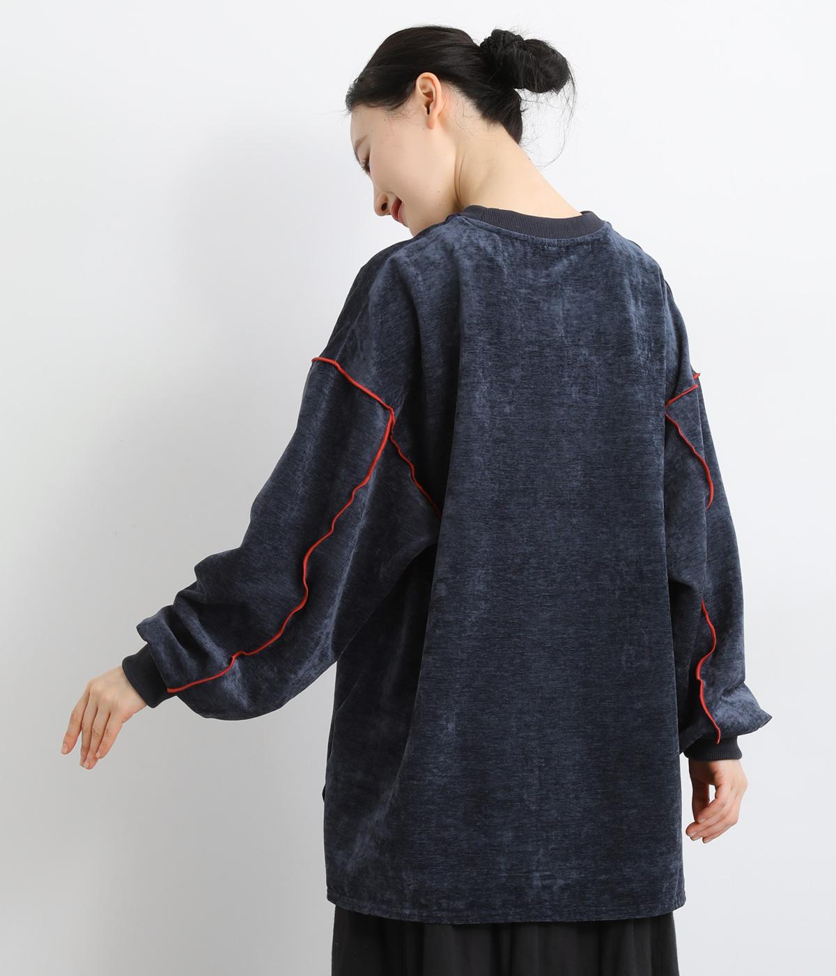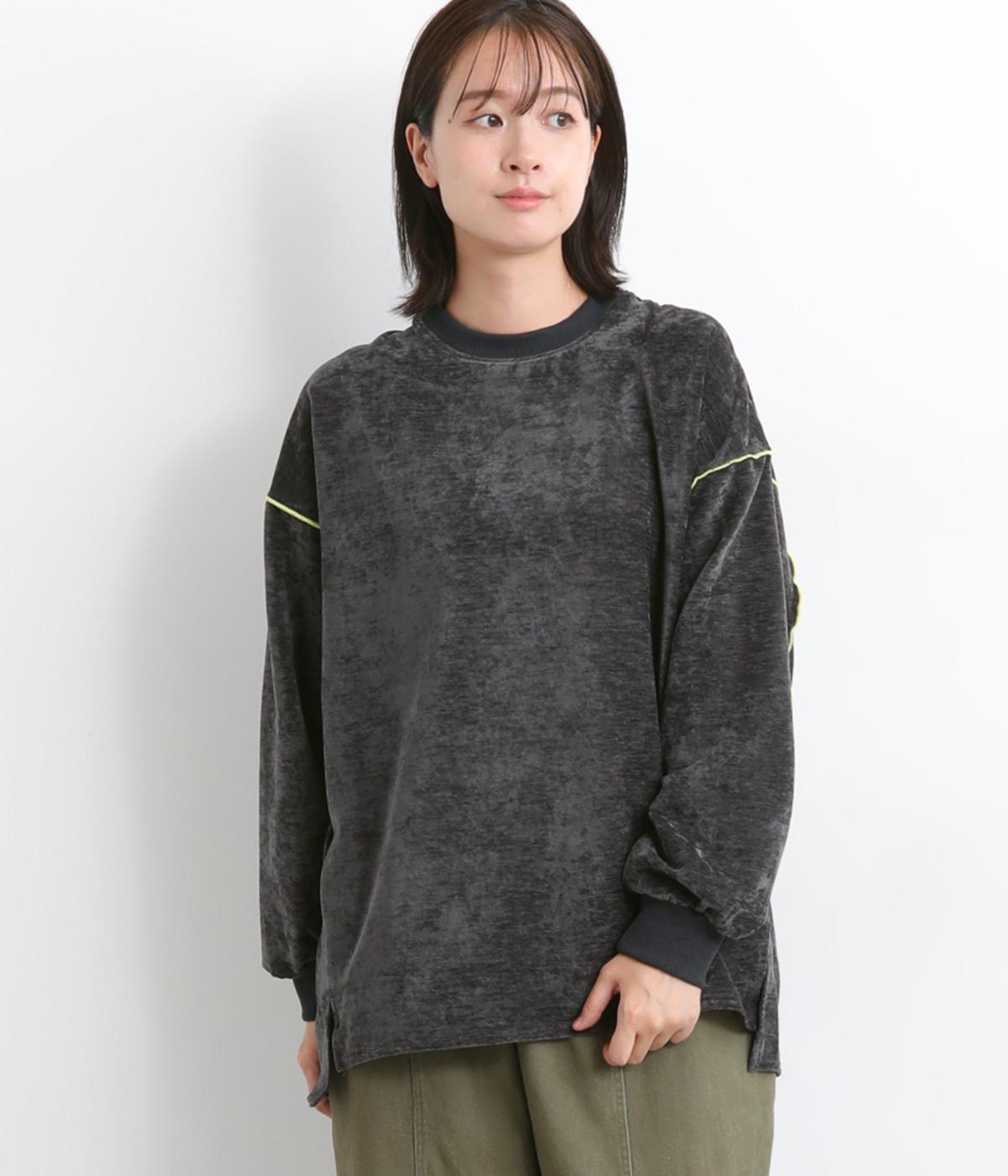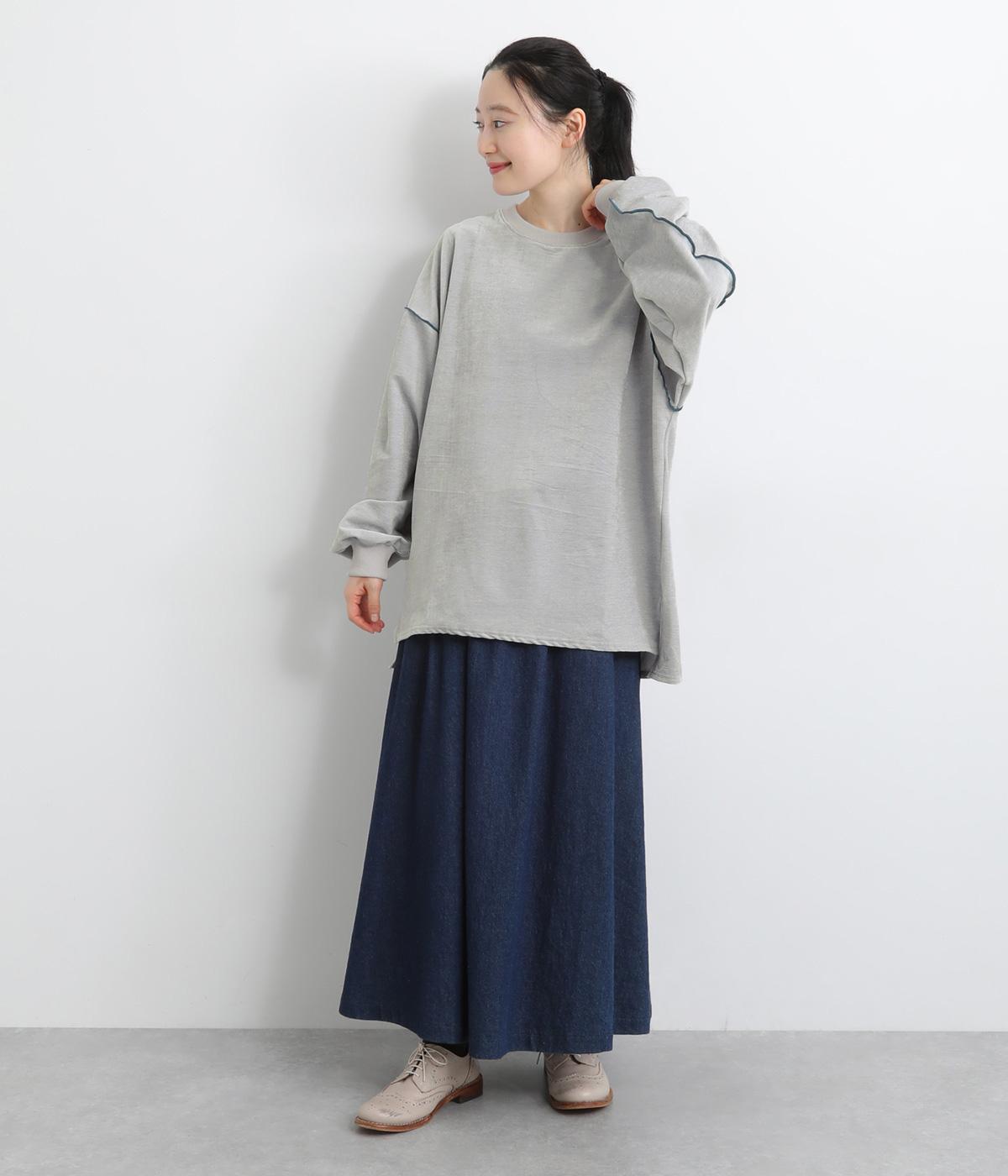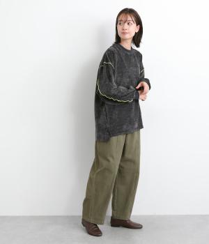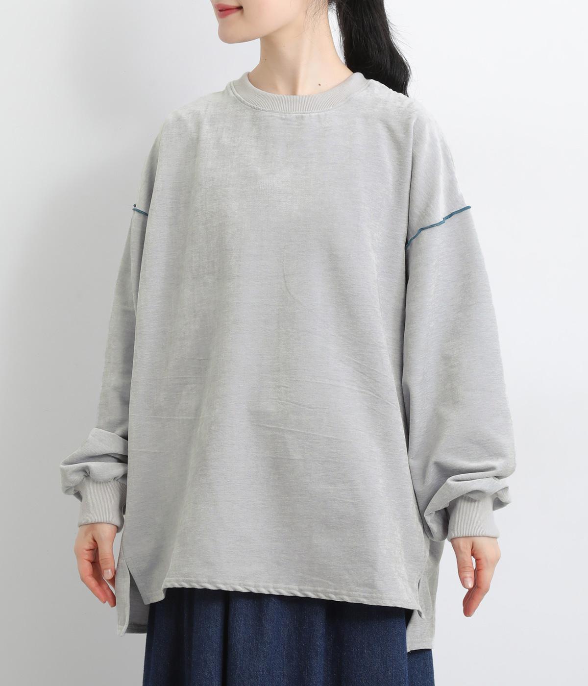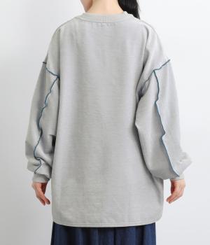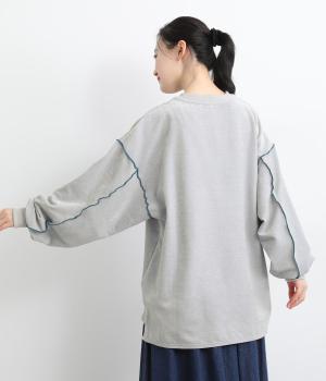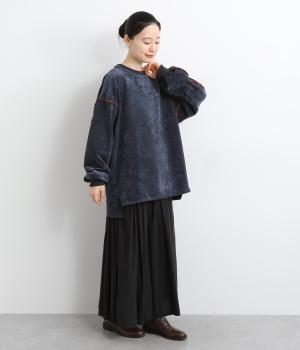 生地の端を波打つように縫い合わせたメロウ加工が目をひくプルオーバーです。ゆったりしたシルエットでカジュアルな印象に、ぽってりした袖がかわいらしさを添えています。長めの丈は前後差をつけて個性を添えつつ体型カバーも叶えます。
