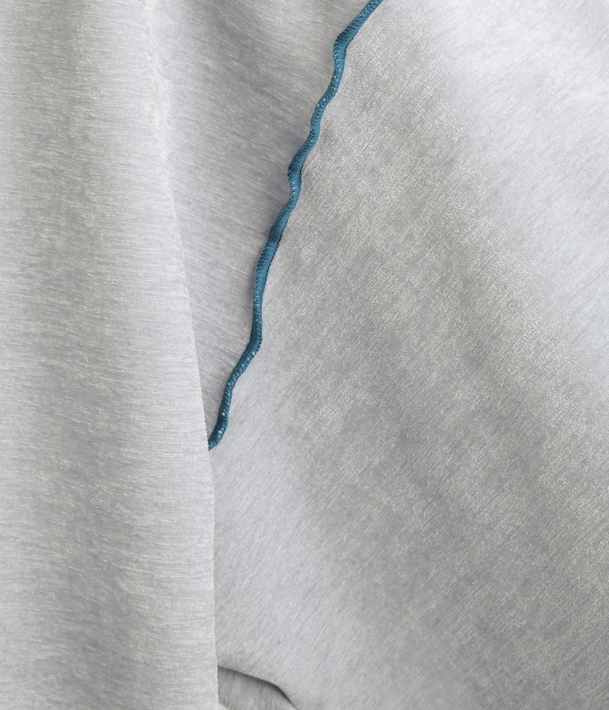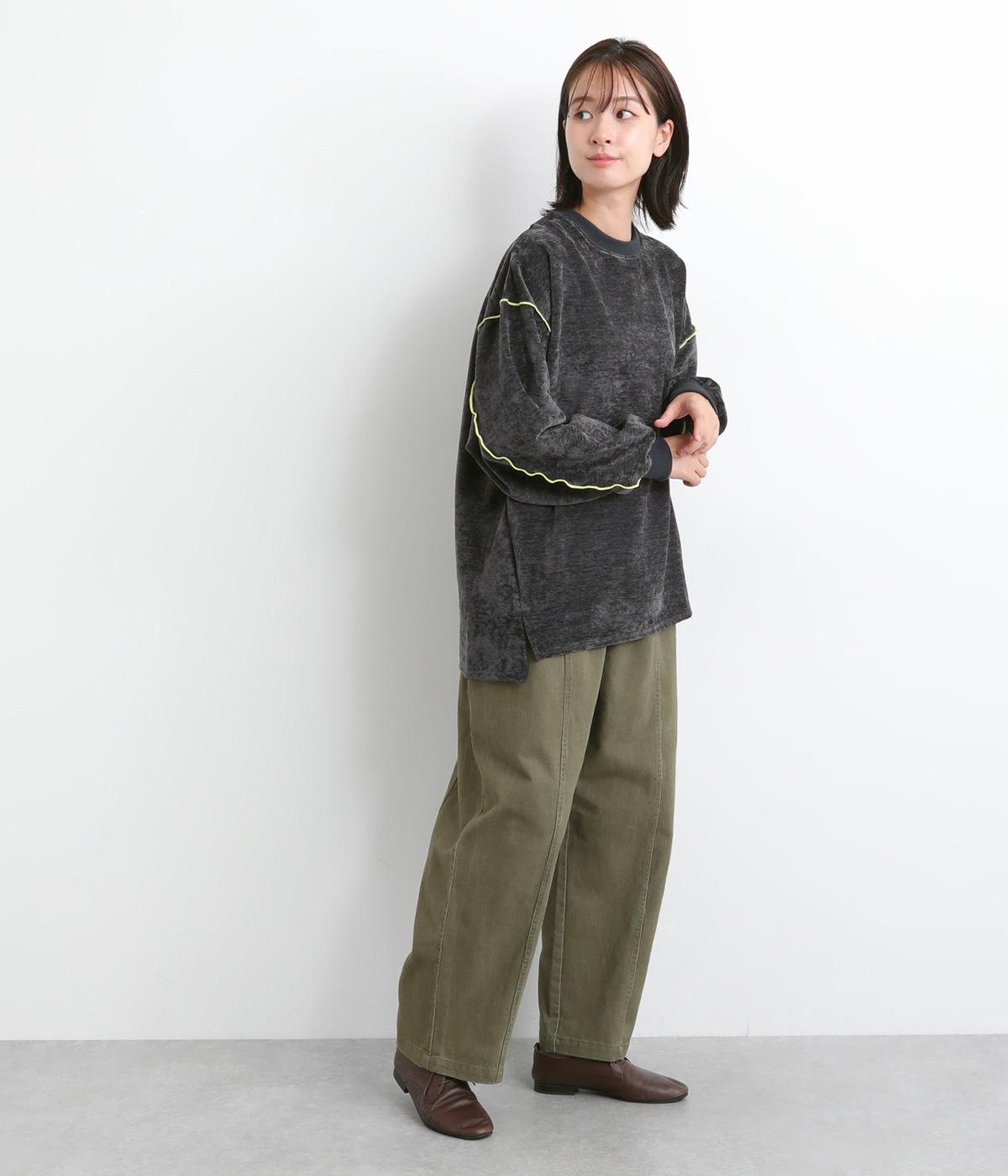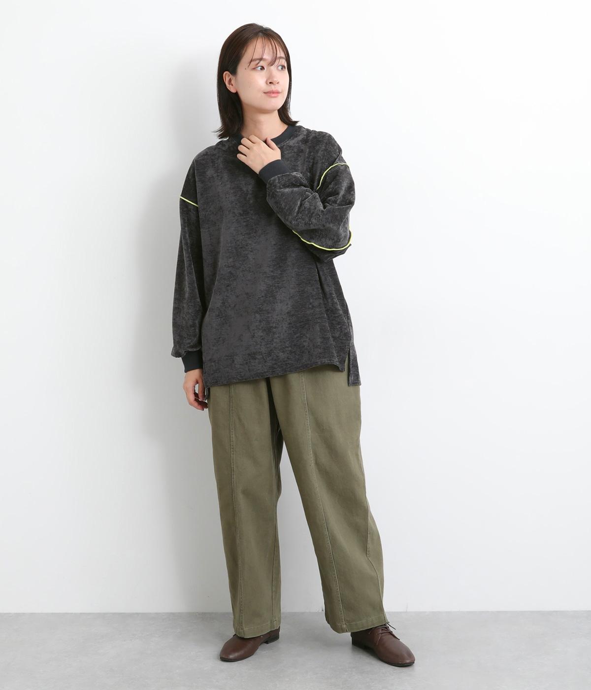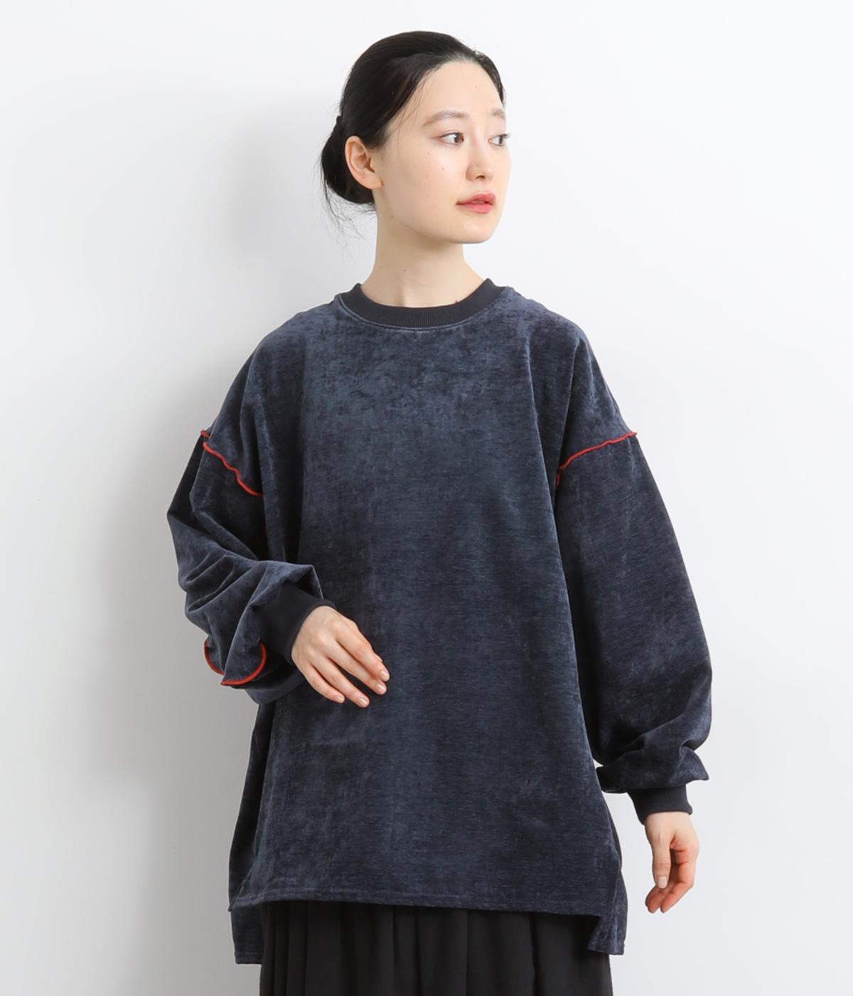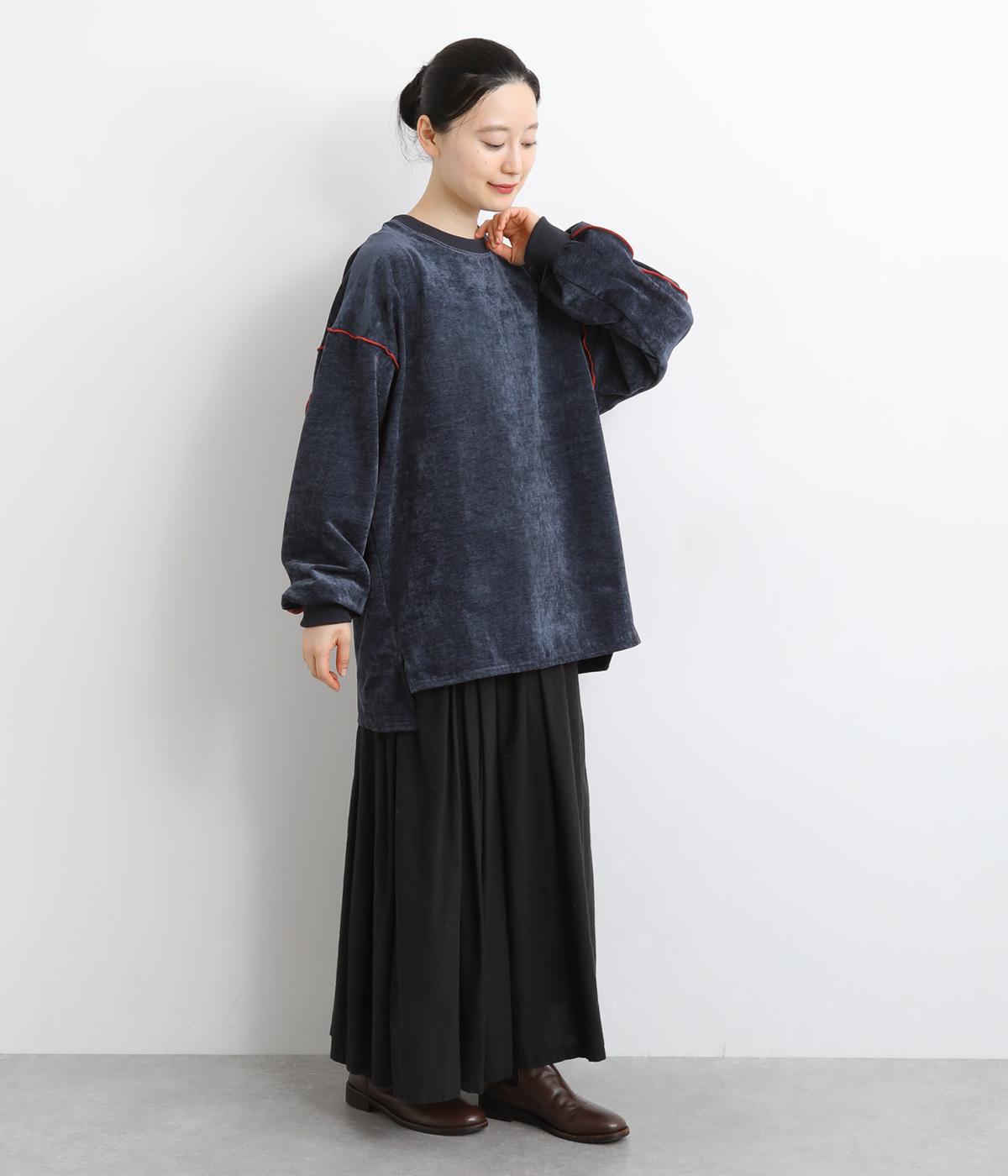 光沢のある肌ざわりのよいスラブベロア生地を使用しました。奥行きのある風合いが魅力で、ほどよい落ち感が大人らしい雰囲気の素材感です。