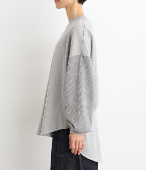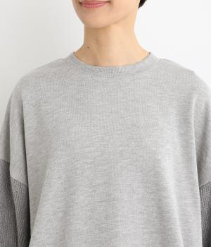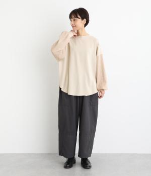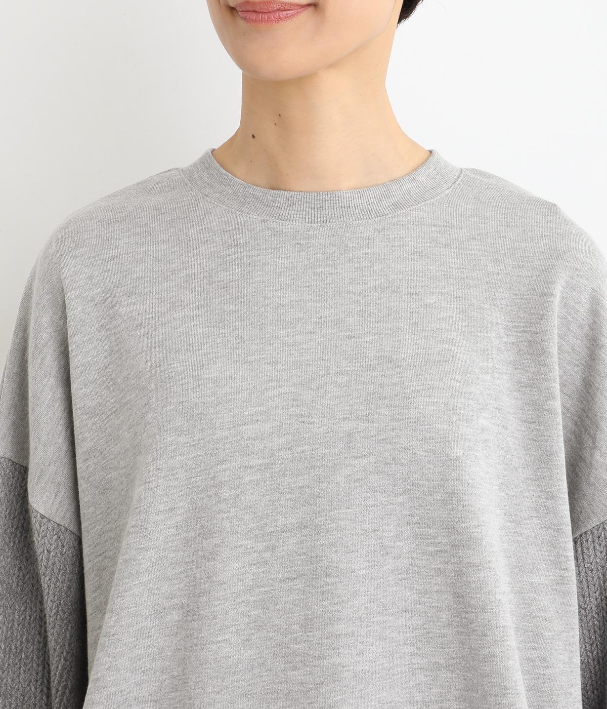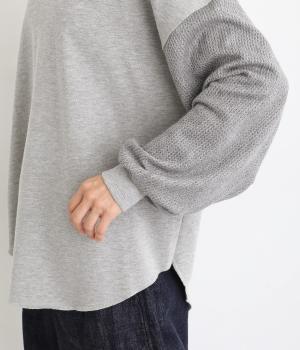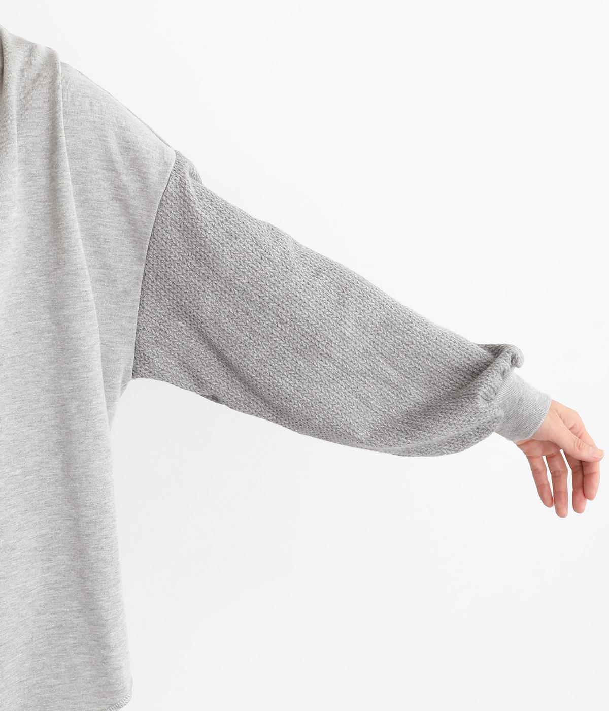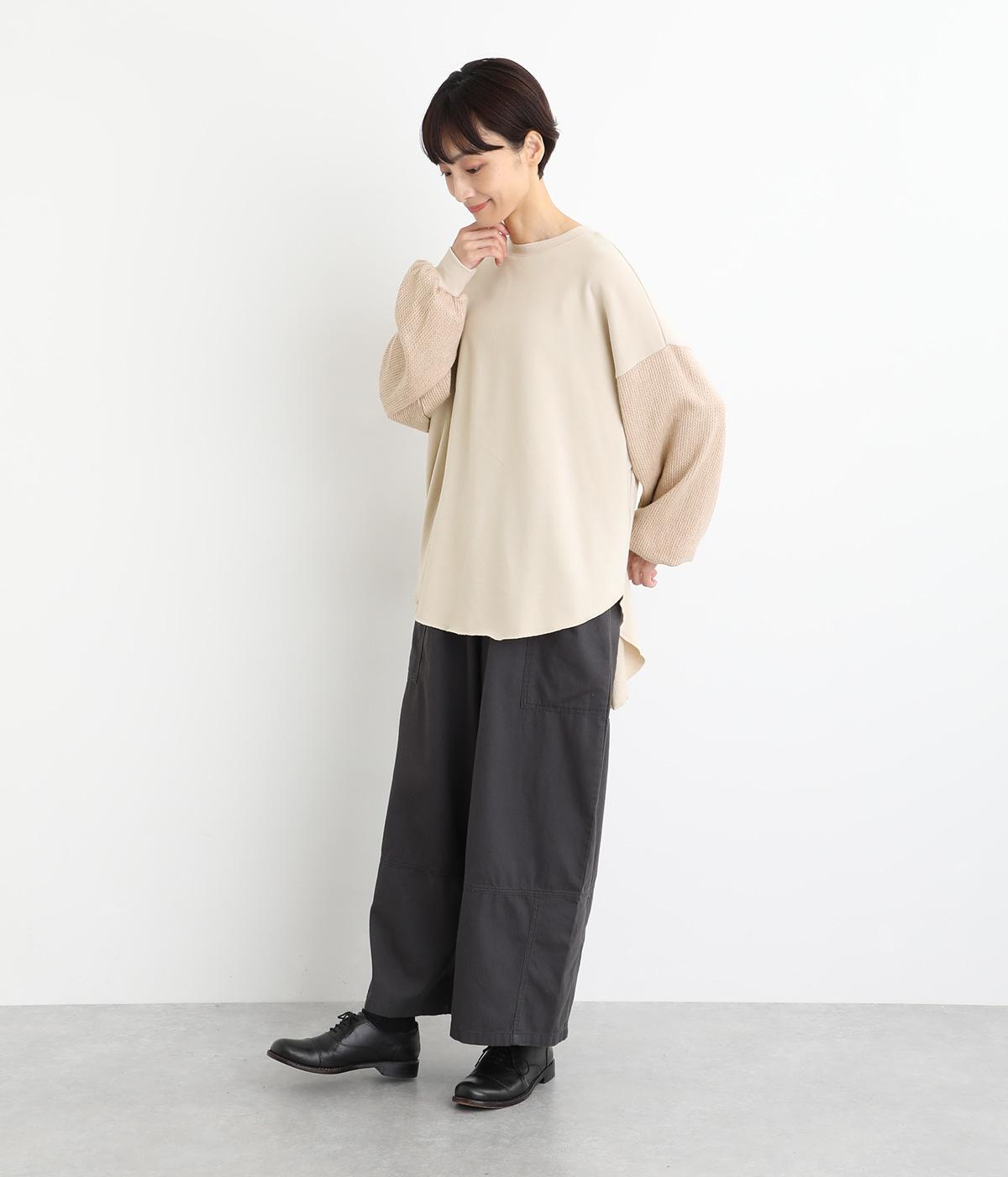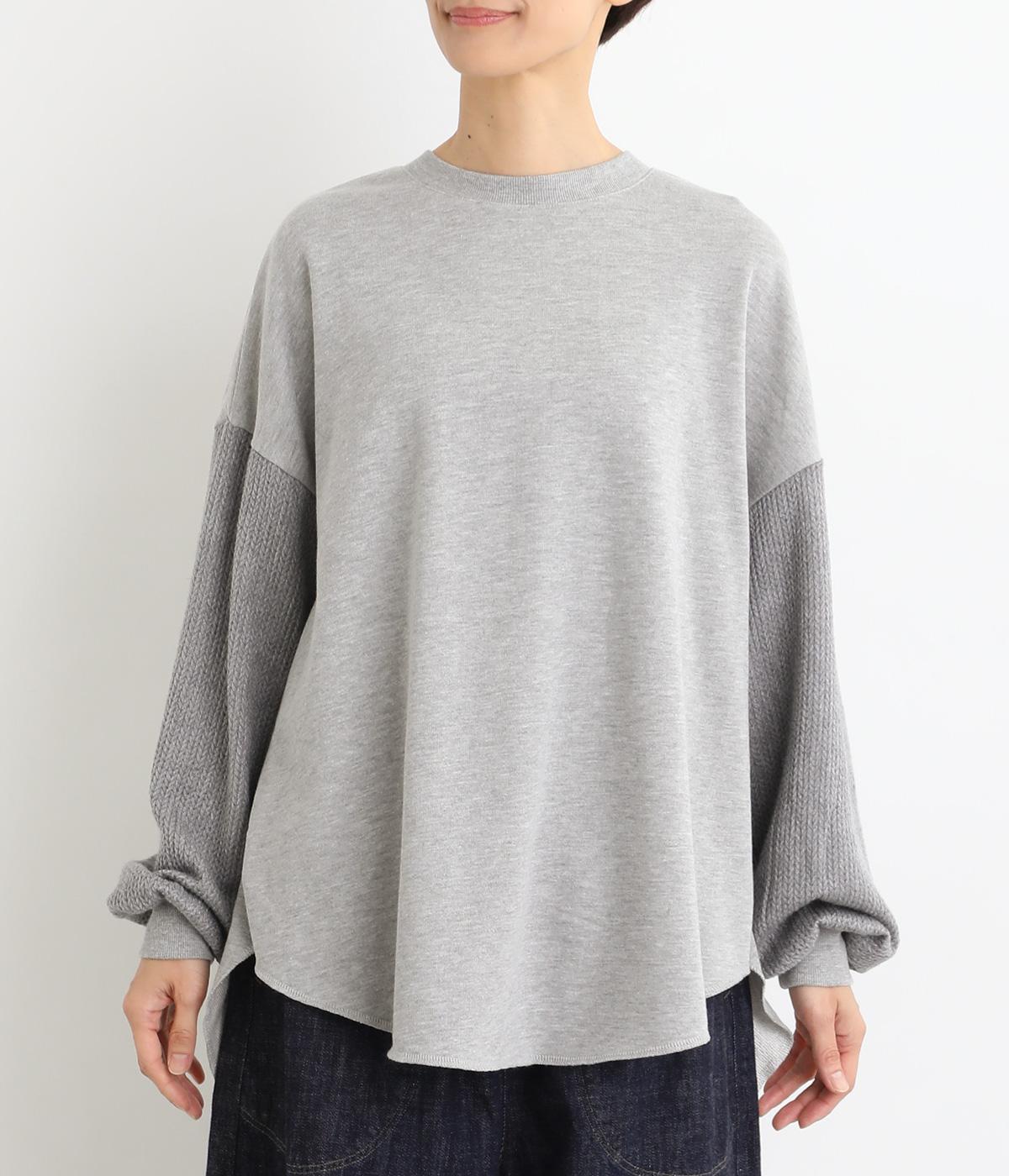 本体はコットン、ポリエステル、ニット部分はレーヨン、ナイロン、ポリエステル、リブ部分はポリエステル、コットン、ポリウレタンを使用。軽くてラフに着用できます。腕部分がニット素材になっていて、全体的にふんわりとした印象。