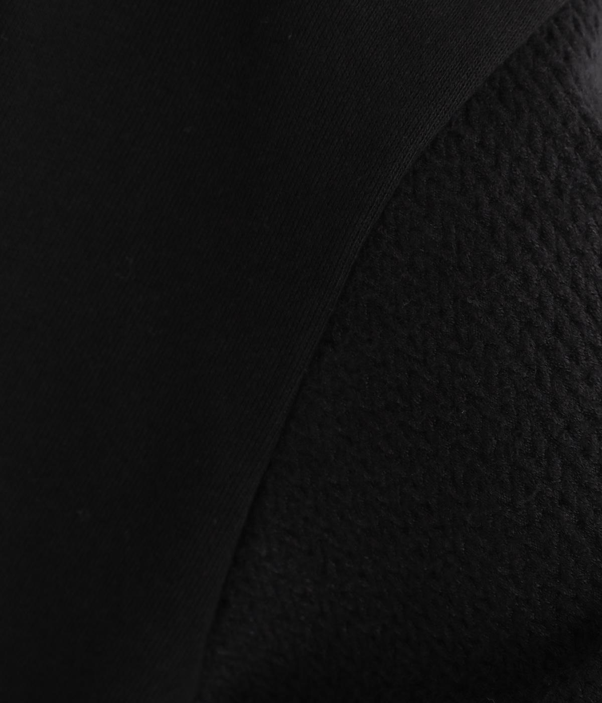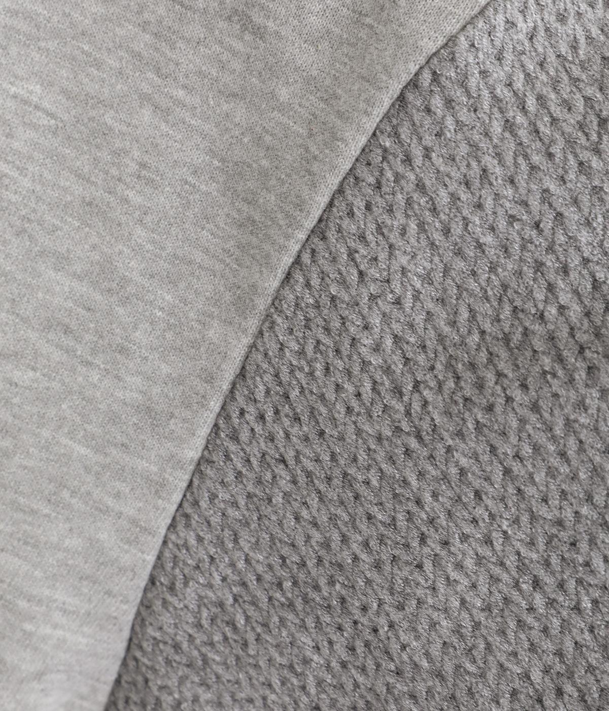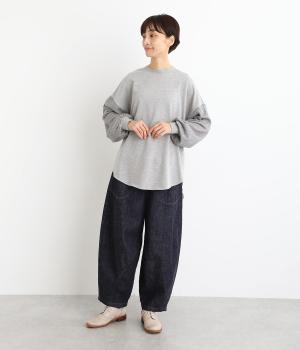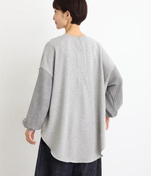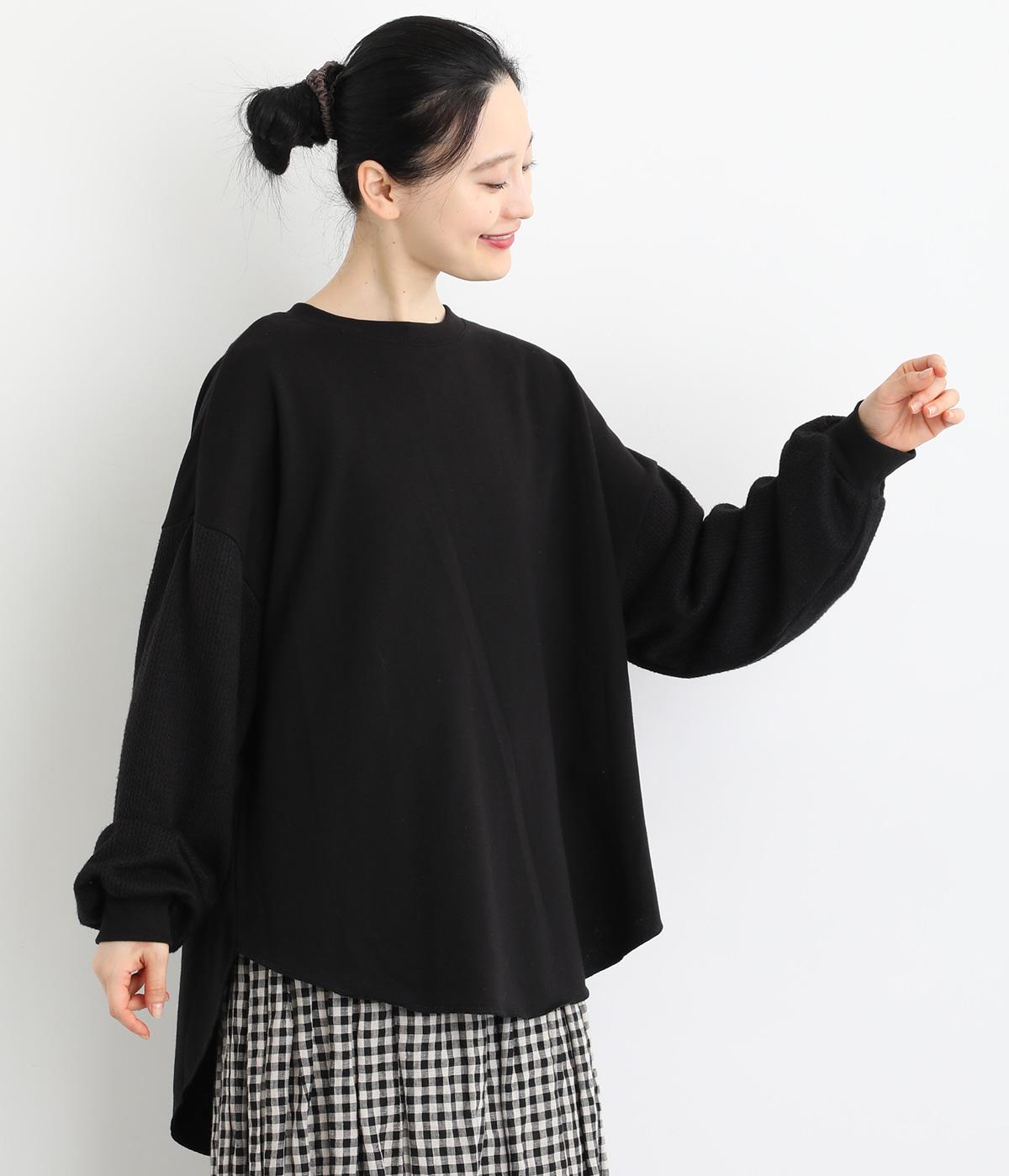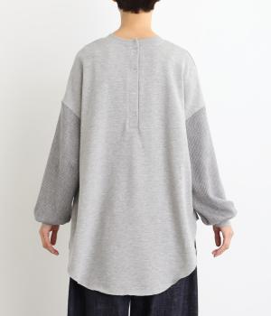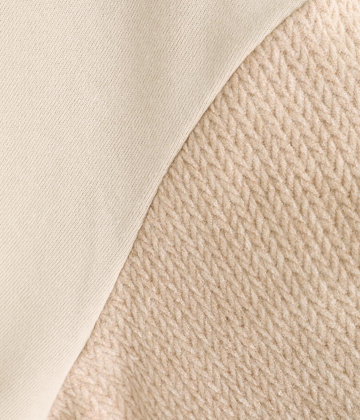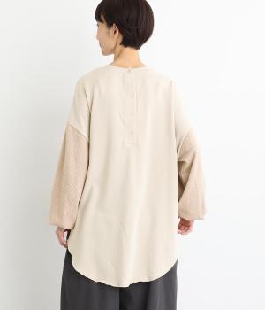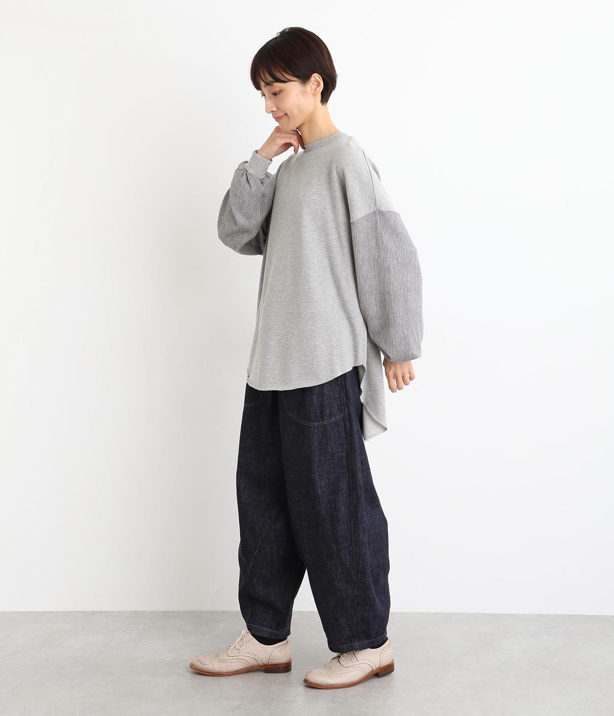 本体はコットン、ポリエステル、ニット部分はレーヨン、ナイロン、ポリエステル、リブ部分はポリエステル、コットン、ポリウレタンを使用。軽くてラフに着用できます。腕部分がニット素材になっていて、全体的にふんわりとした印象。