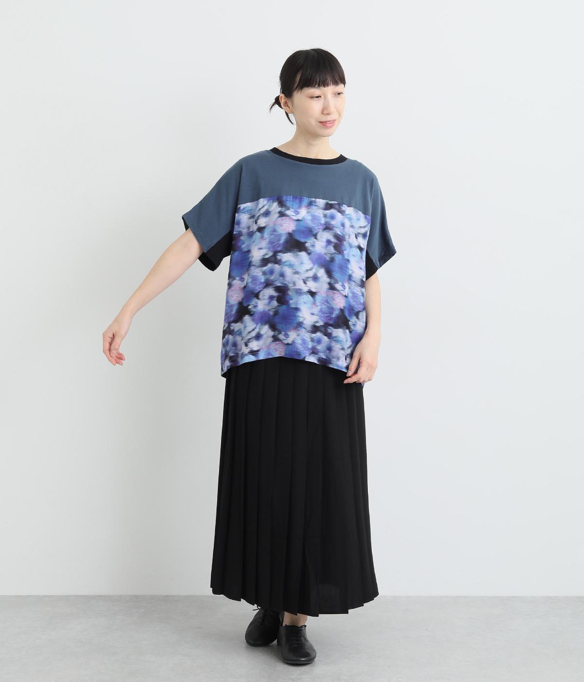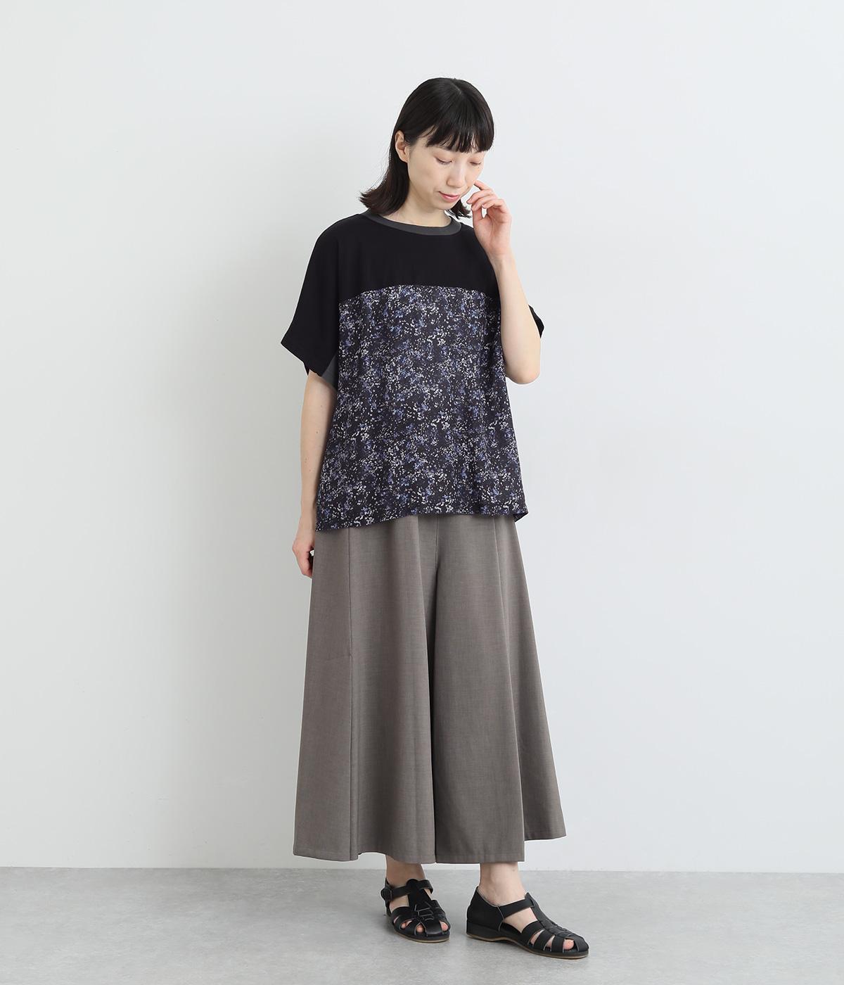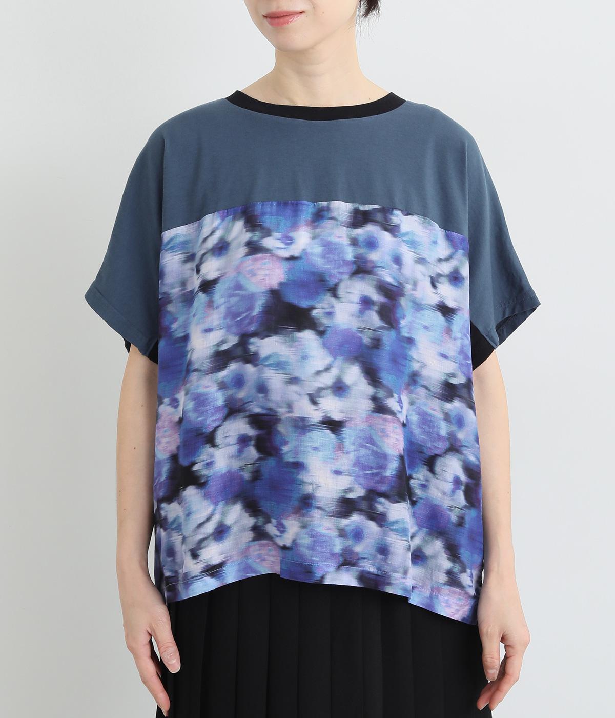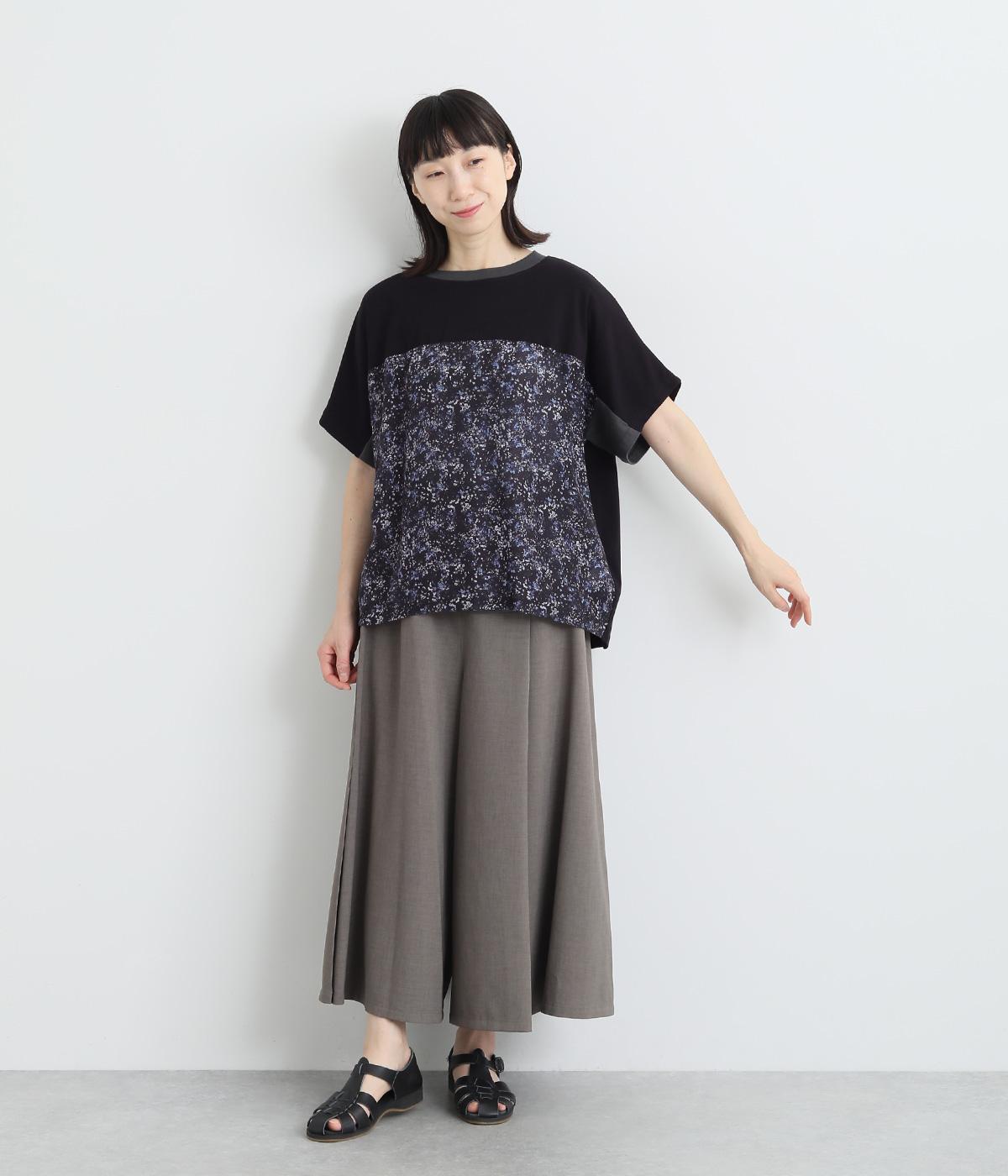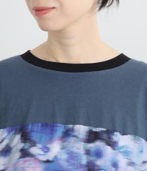 上品な光沢とやわらかな肌ざわりが特徴のコットンリヨセル。前身頃にはぼかし花柄のリバティプリントを使用し、柄物ながら大人顔の1枚です。