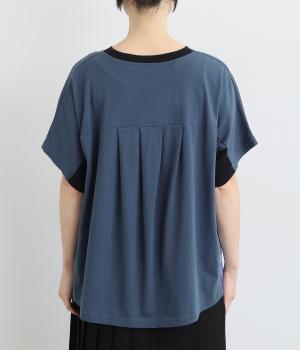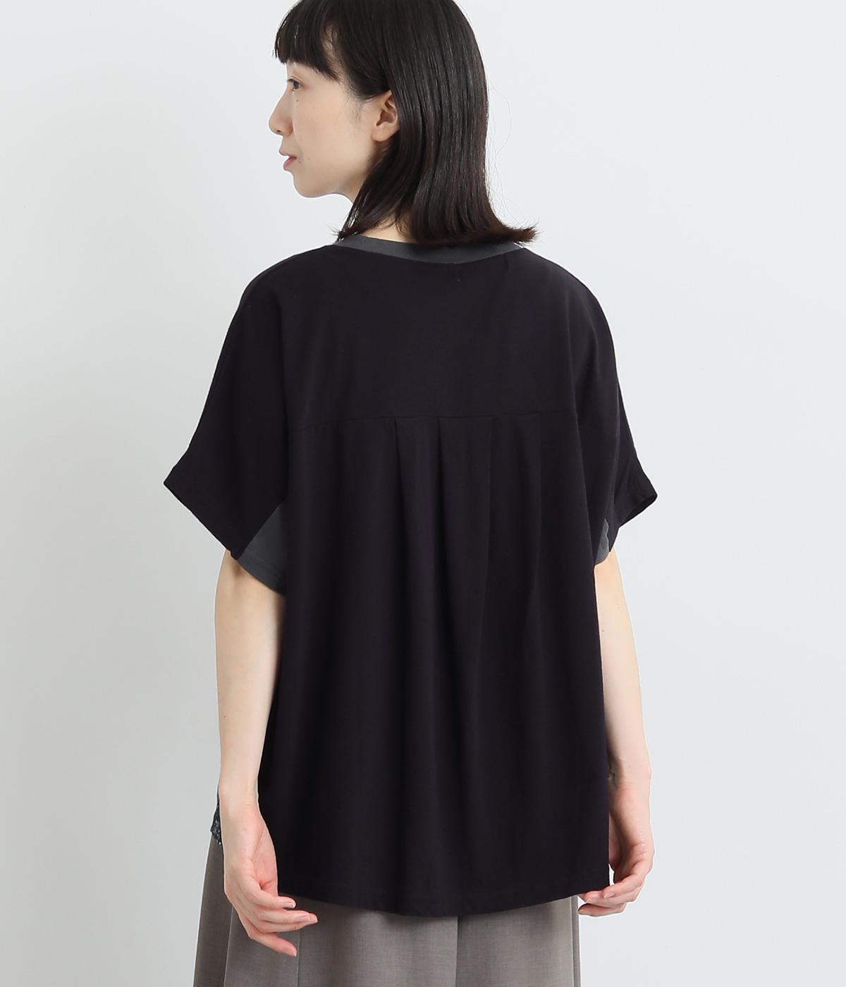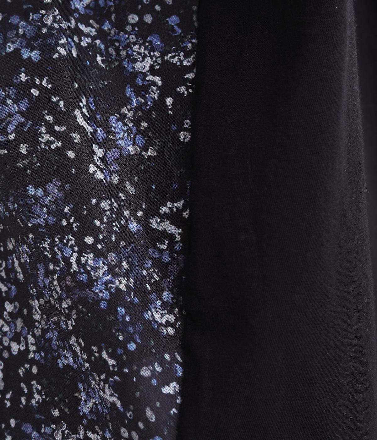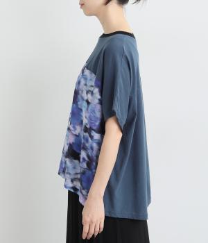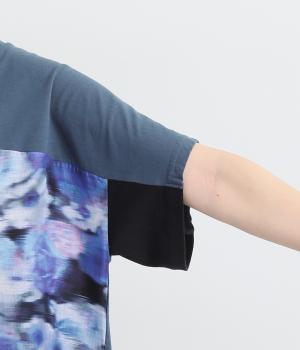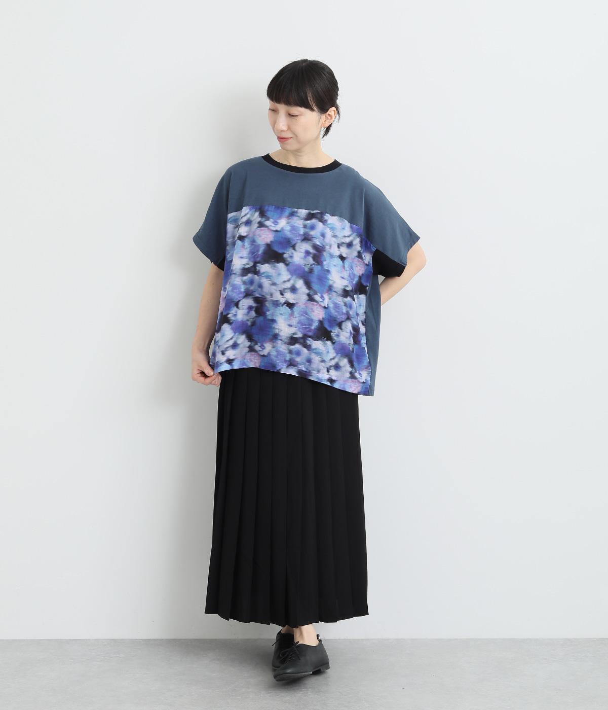 上品な光沢とやわらかな肌ざわりが特徴のコットンリヨセル。前身頃にはぼかし花柄のリバティプリントを使用し、柄物ながら大人顔の1枚です。
