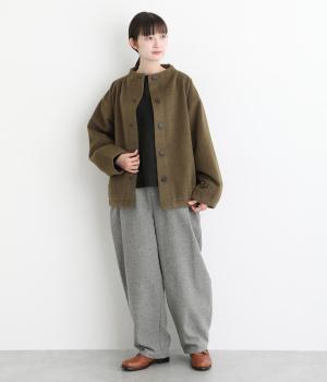 秋冬の羽織にぴったりなウォーム感のあるジャケット。軽量で羽織りやすいのも◎。ゆとりのあるスタンドカラーでタートルやマフラーとも好相性。きれいにもカジュアルにも合わせやすいアウターです。