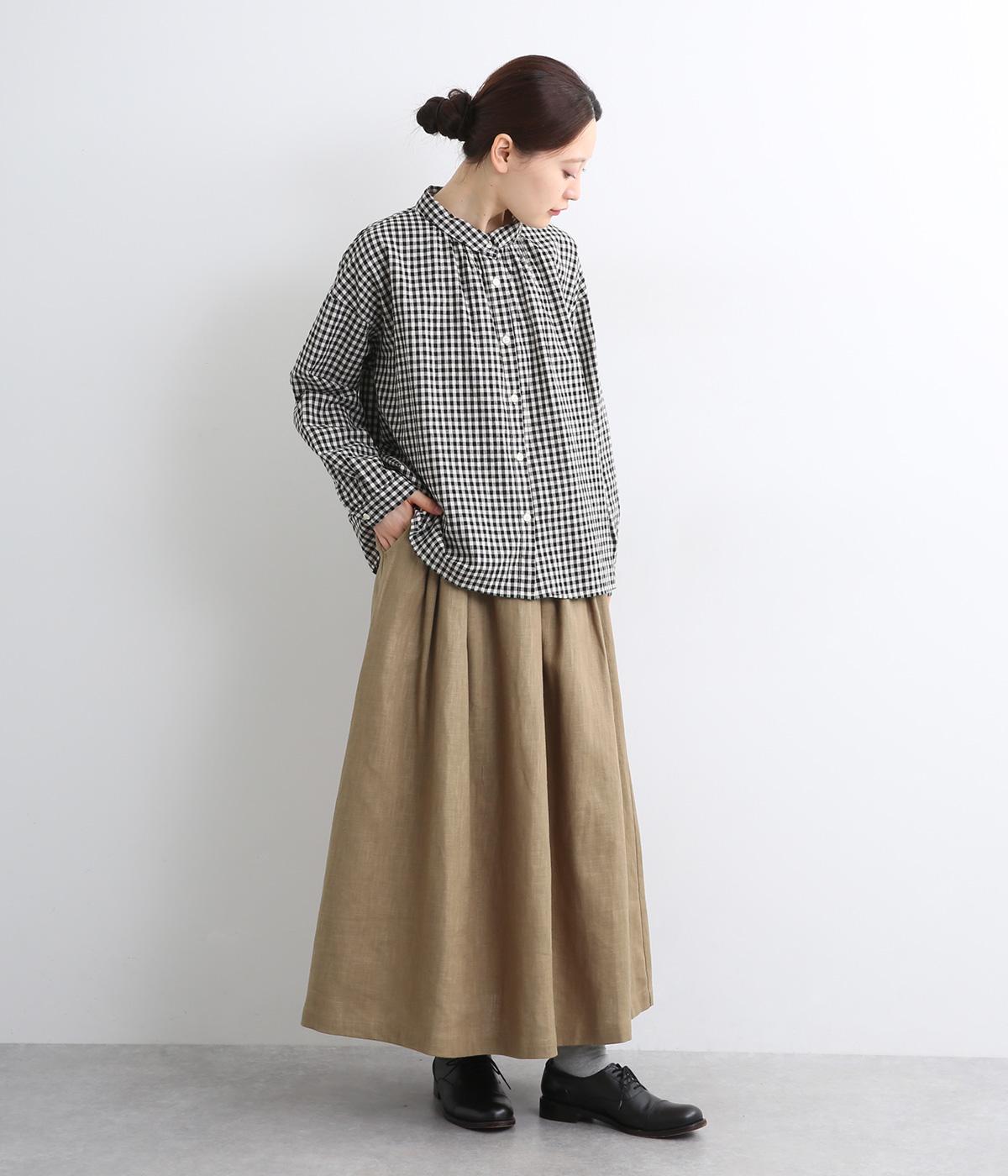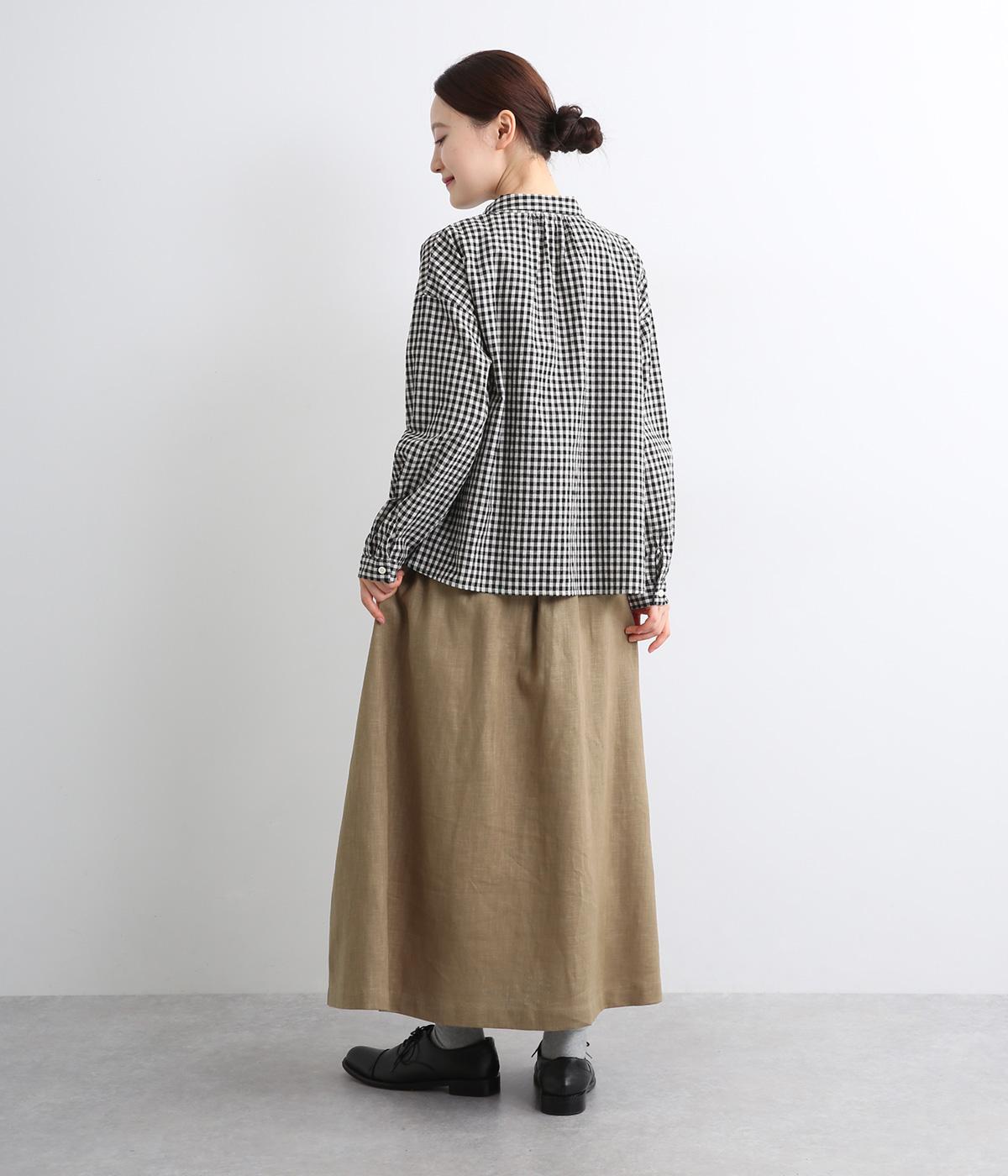 ほどよいハリとコシを持ちつつ、やわらかな肌ざわりのコットンリネンツイル生地を使用しました。ナチュラルで上品な風合いが魅力で、軽やかな着心地が特徴です。