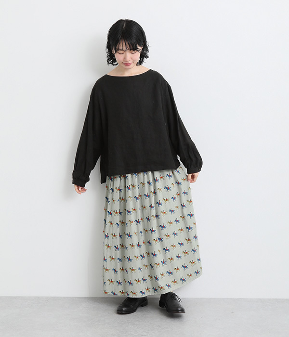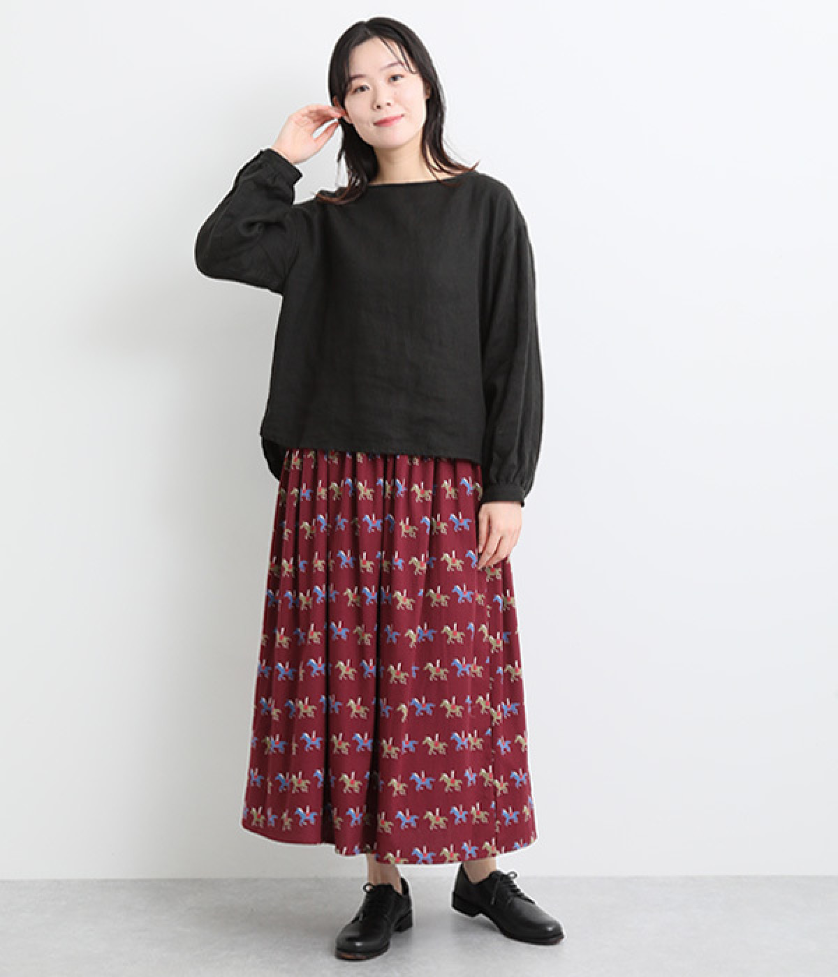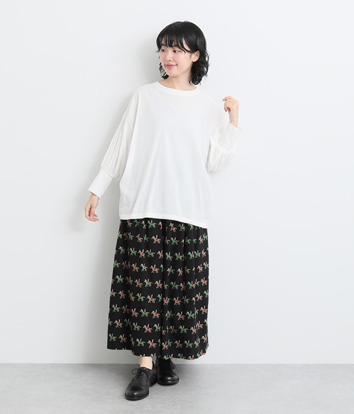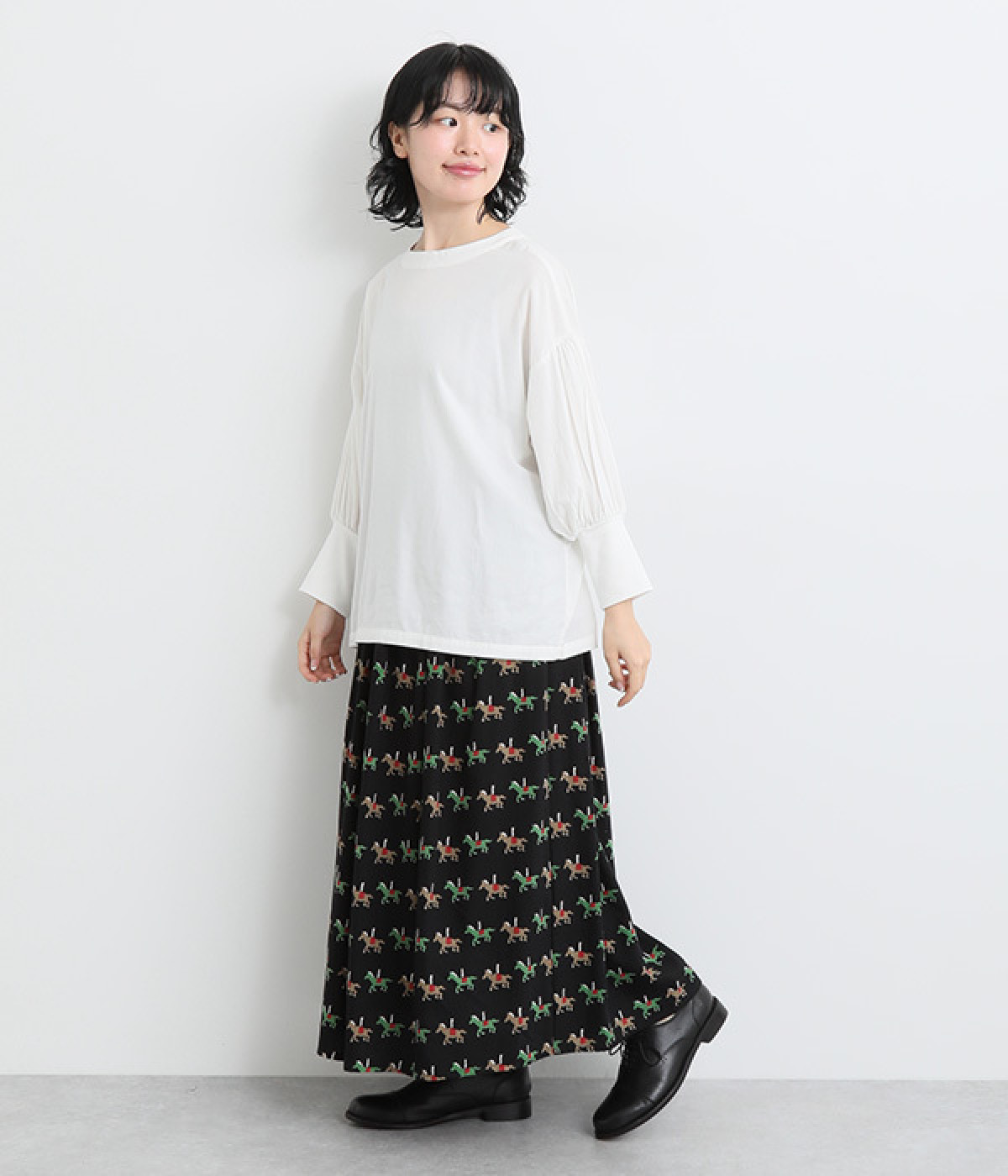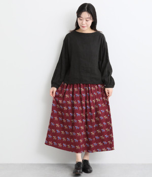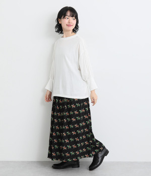 たっぷりとギャザーを入れて女性らしいボリュームシルエットに