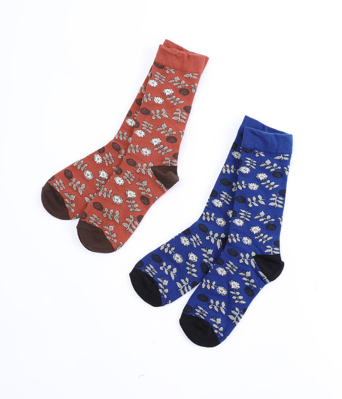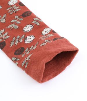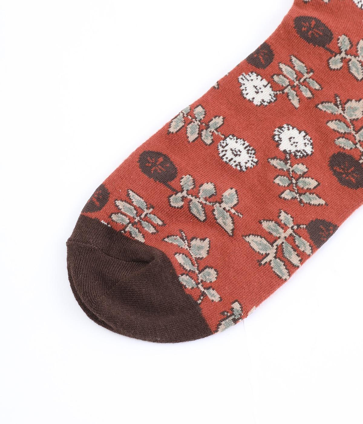 お花のイラストを規則的に回転させてできた、ブランドのオリジナル柄をあしらったソックスです。丸みのある愛らしいお花と大人っぽいカラーリングが好バランス。コーディネートの差し色にぴったりです。