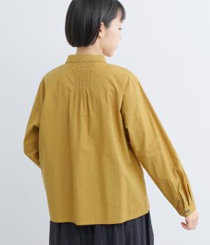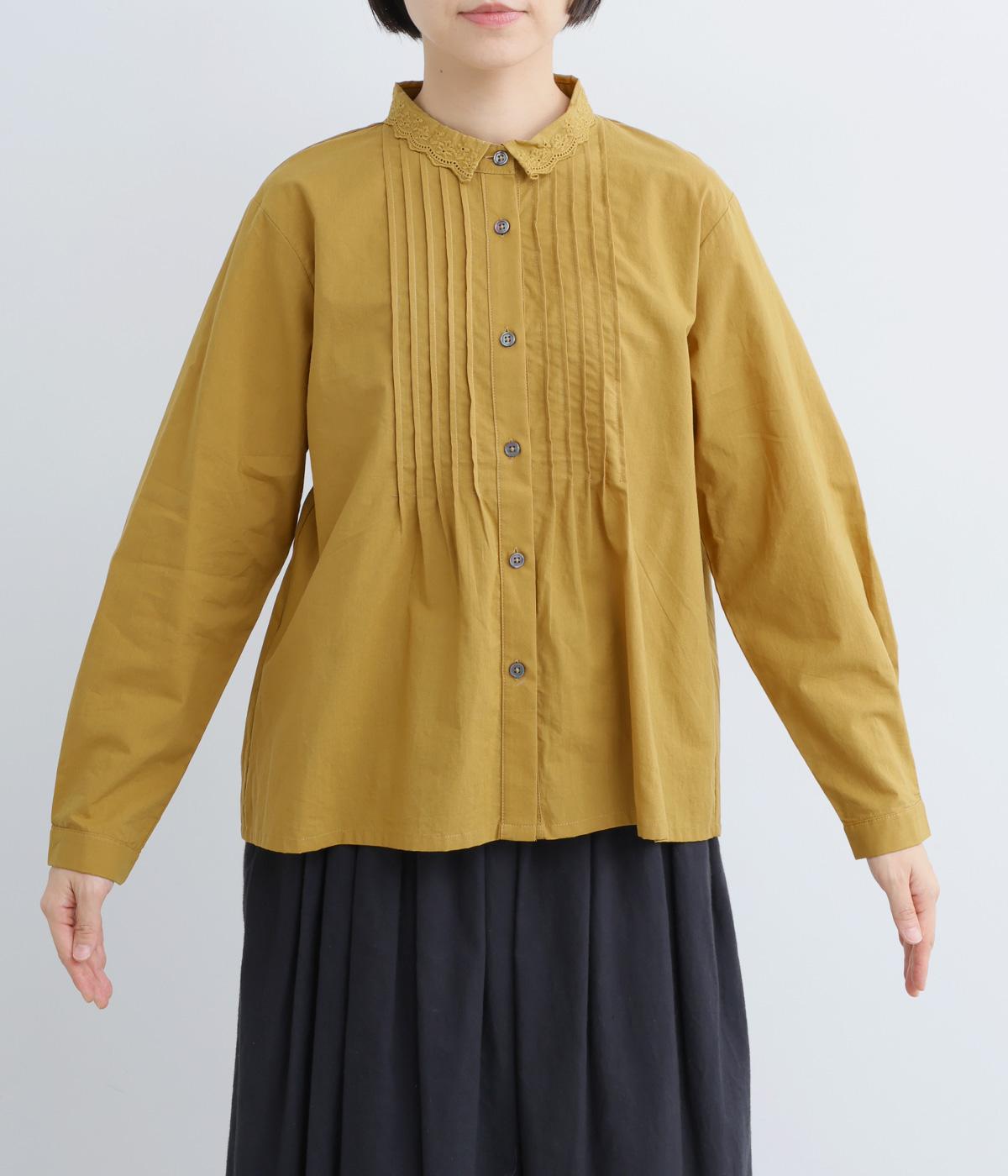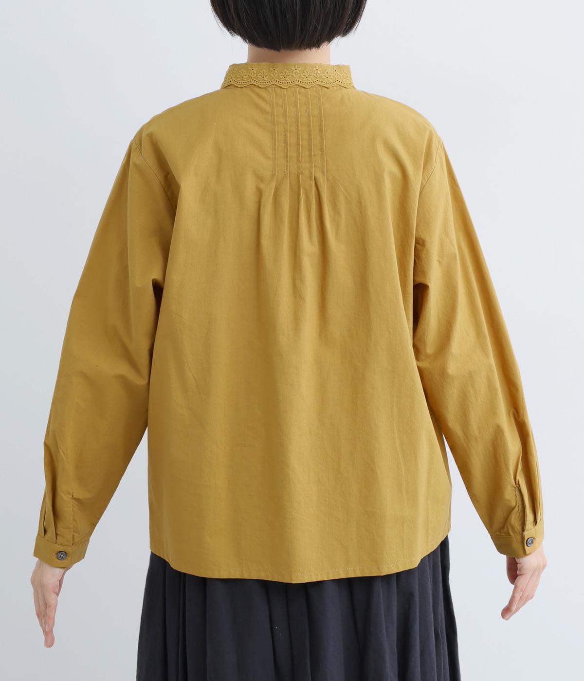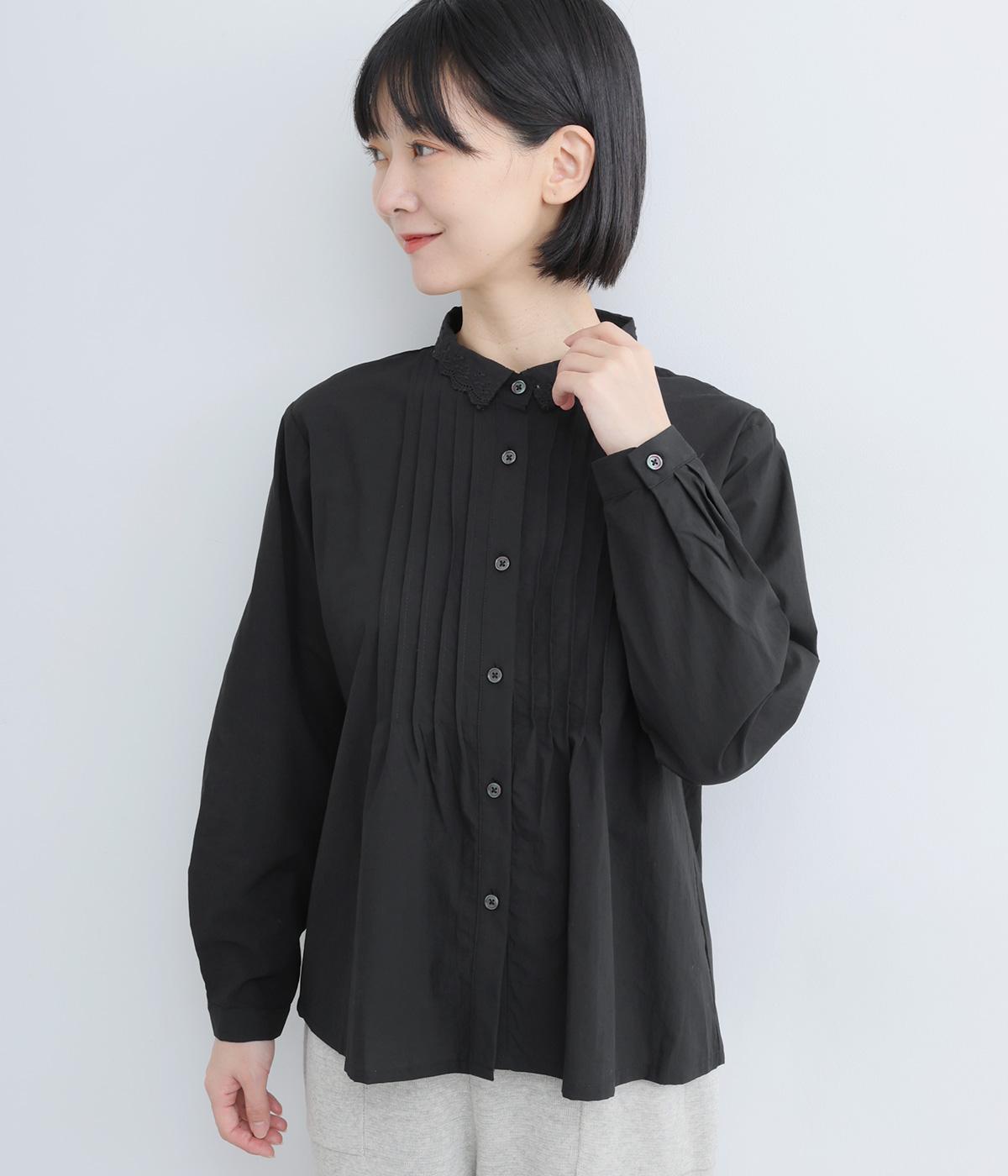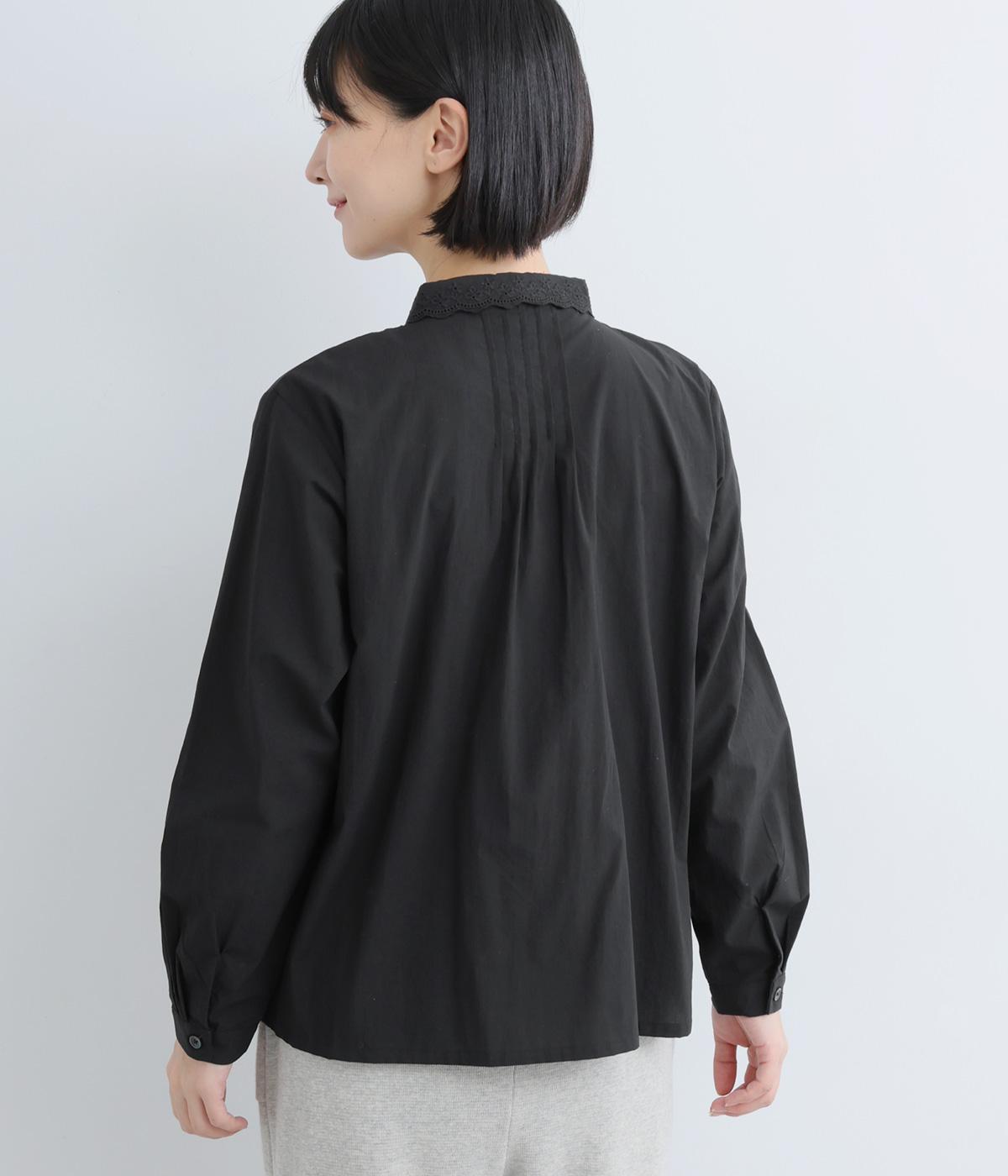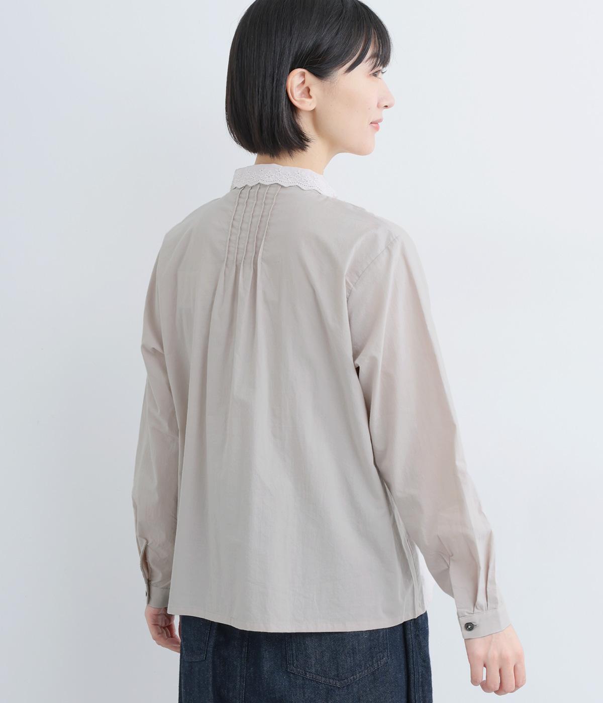 柔らかくやさしい雰囲気が魅力の、着まわしやすい軽量コットンです。同色のレース素材の襟も綿素材で仕立ててあります。オールシーズン楽しめる心地よさが◎です。