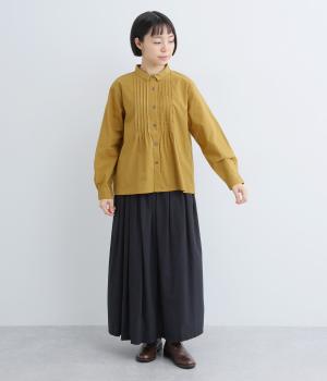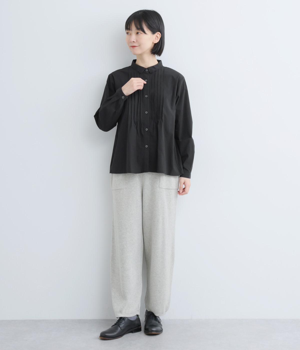 シンプルなシルエットに洗練されたディテールが美しいブラウスです。ピンタック仕立てとレース素材のコンパクトな襟元は繊細さを演出しています。デニムと合わせてきれいめカジュアルにも、クラシカルなボトムと合わせてエレガントにも、シーンを選ばず女性らしさを表現できる素敵な一枚です。
