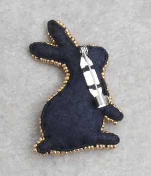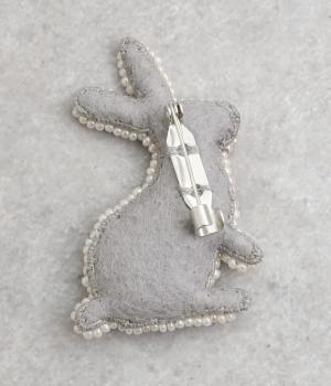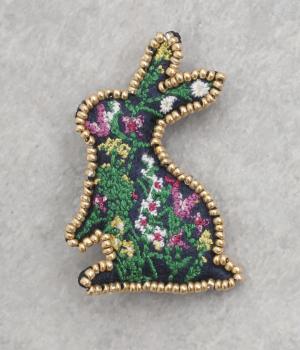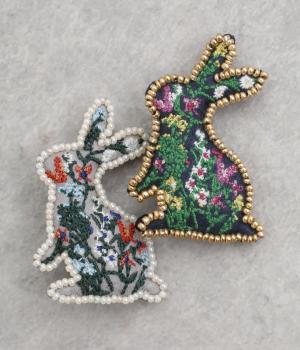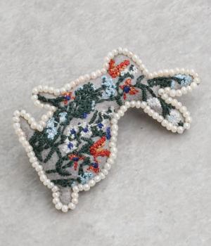 ウサギのシルエットに細やかな草花の刺しゅうをほどこしました。ガラスビーズのパイピングが、大人の上品さを醸し出します。
